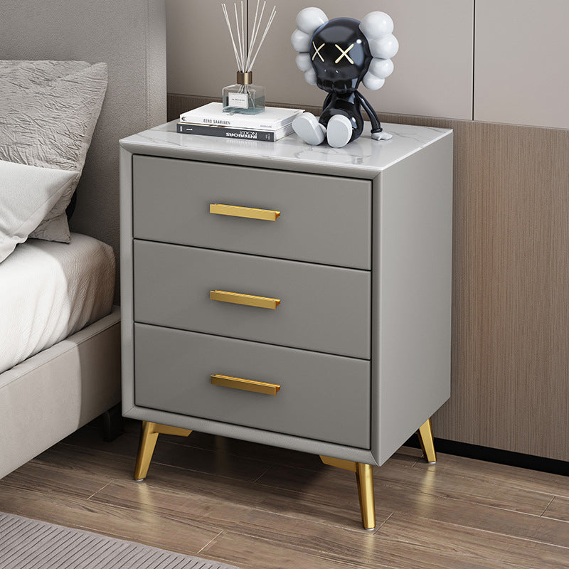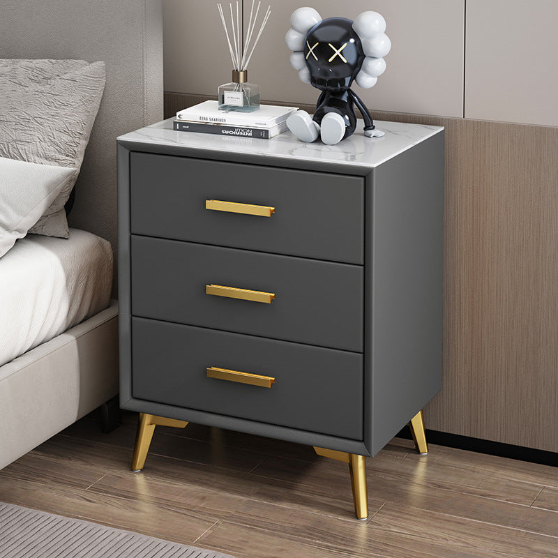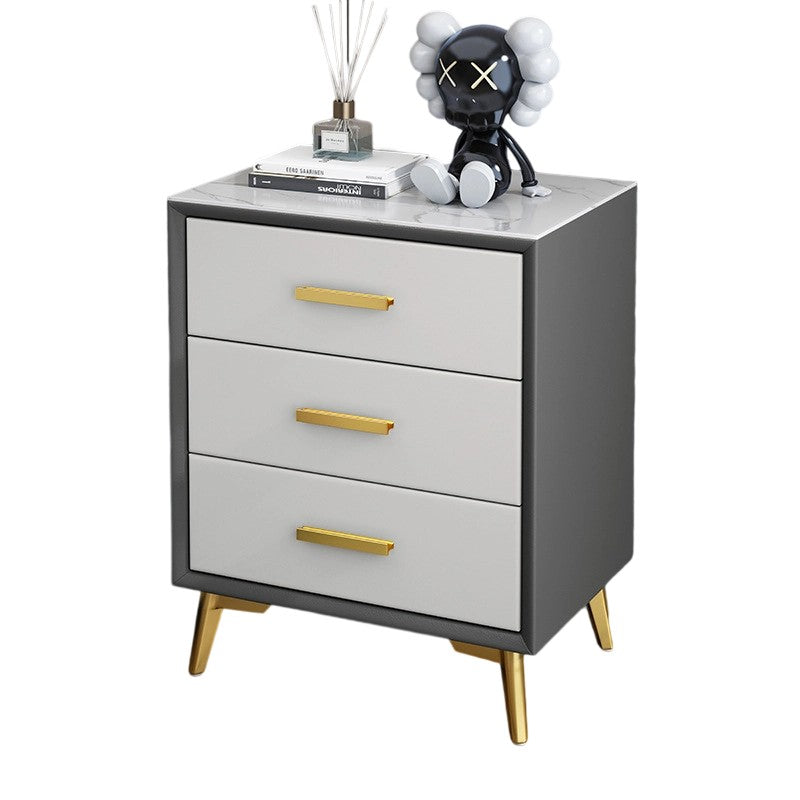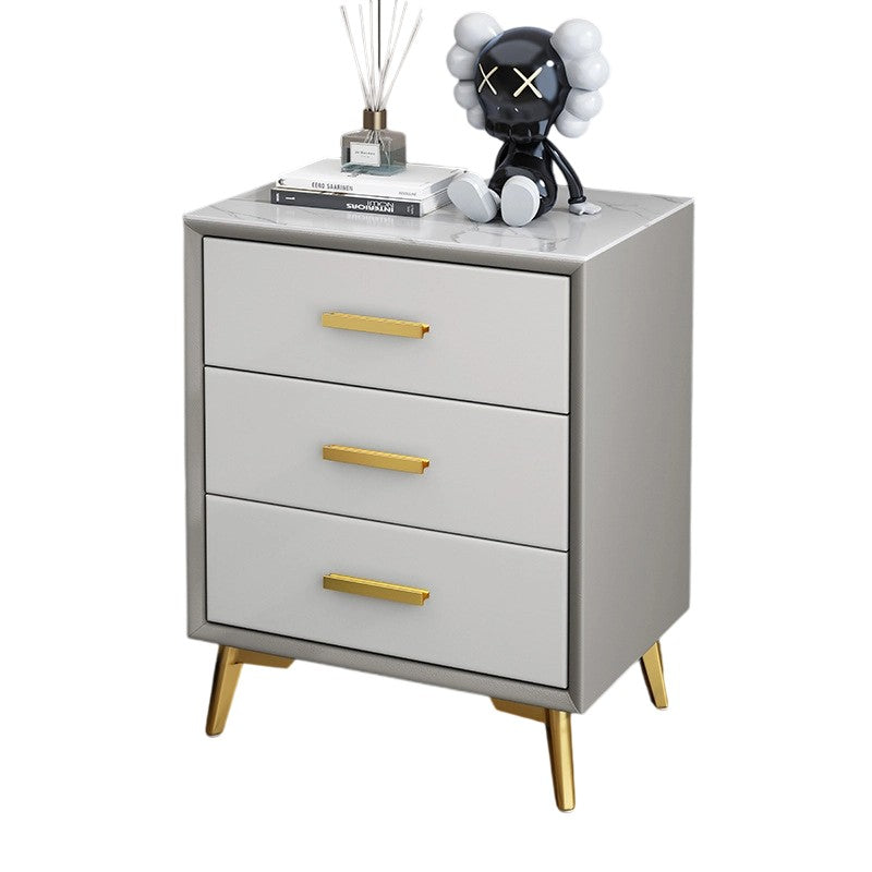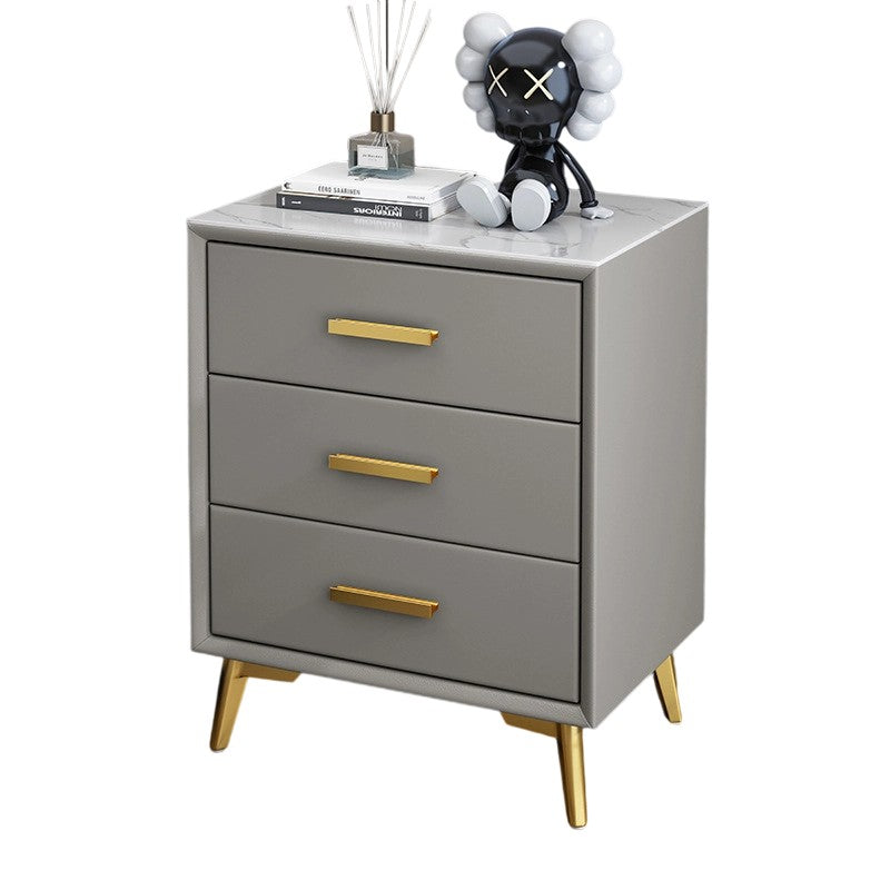 Modern Luxury Microfiber Leather Solid Wood Sintered Stone Carbon Steel Rectangular Nightstand 3-Drawer For Bedroom