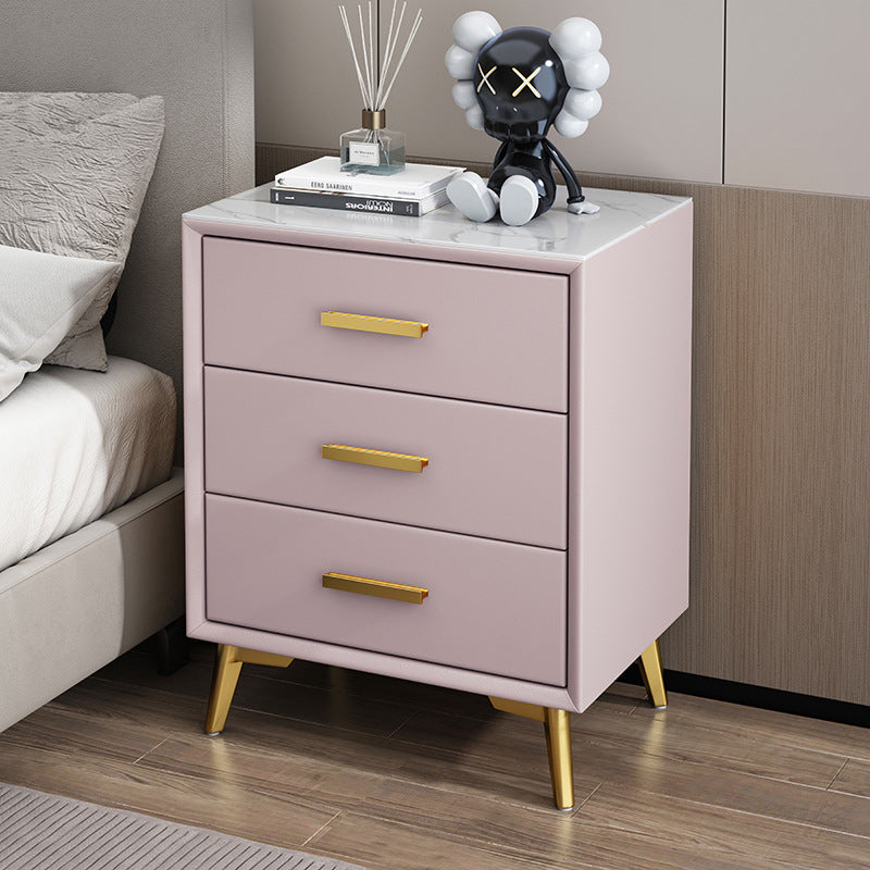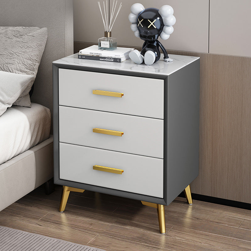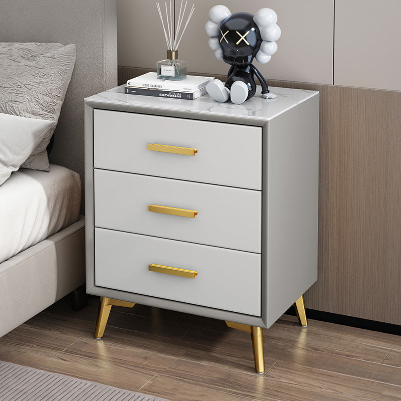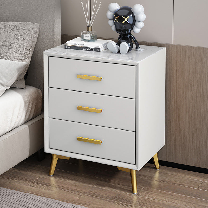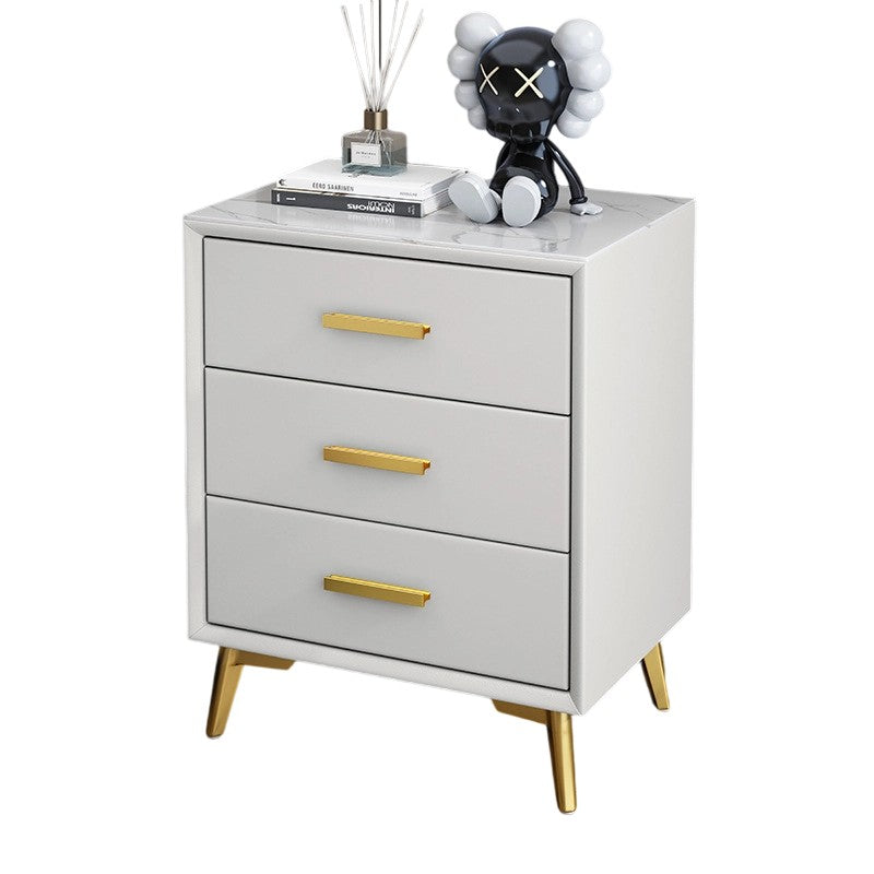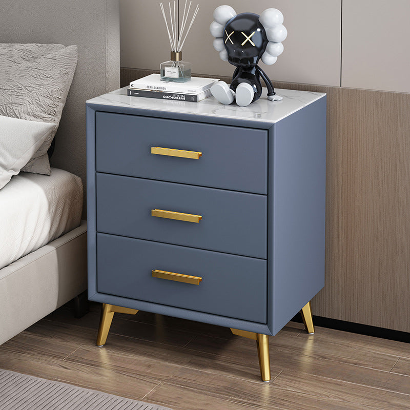Modern Luxury Microfiber Leather Solid Wood Sintered Stone Carbon Steel Rectangular Nightstand 3-Drawer For Bedroom