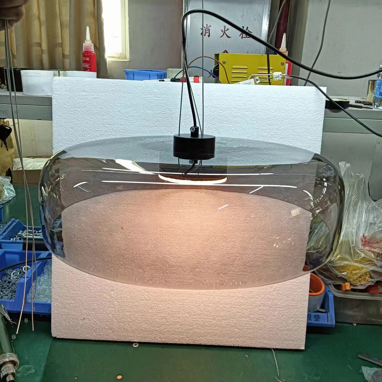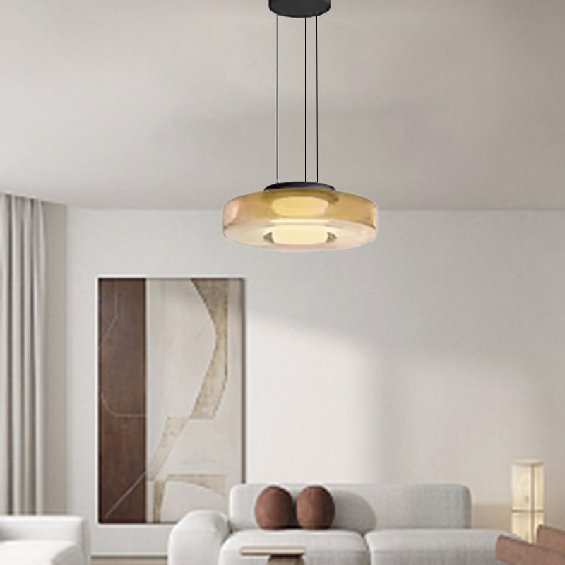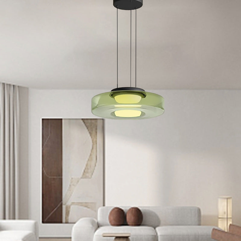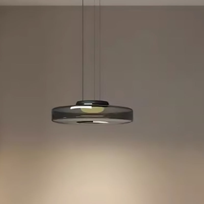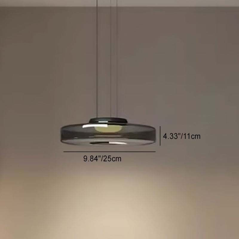 Modern Luxury Disc Glass Metal LED Pendant Light For Bedroom