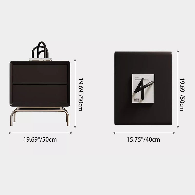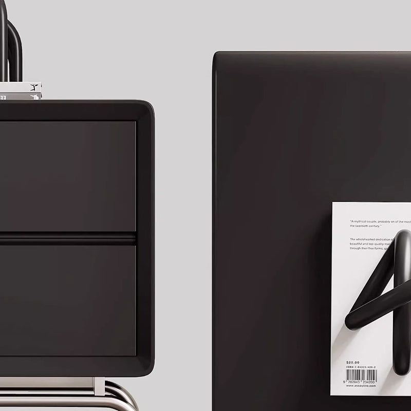 Elevate your bedroom with this modern luxury nightstand crafted from pine, stainless steel, and engineered wood. Featuring a sleek black finish, eco-conscious materials, and 2 spacious drawers, it's the perfect blend of high-end design and smart storage.