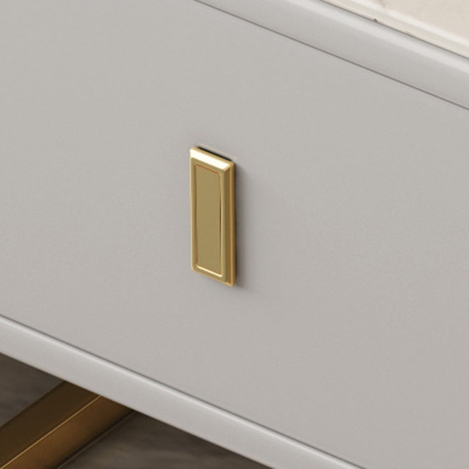 Modern Luxury Porcelain Slab Microfiber Leather Carbon Steel Rectangular Side Table With 2 Tiers And 1 Drawer For Living Room And Bedroom