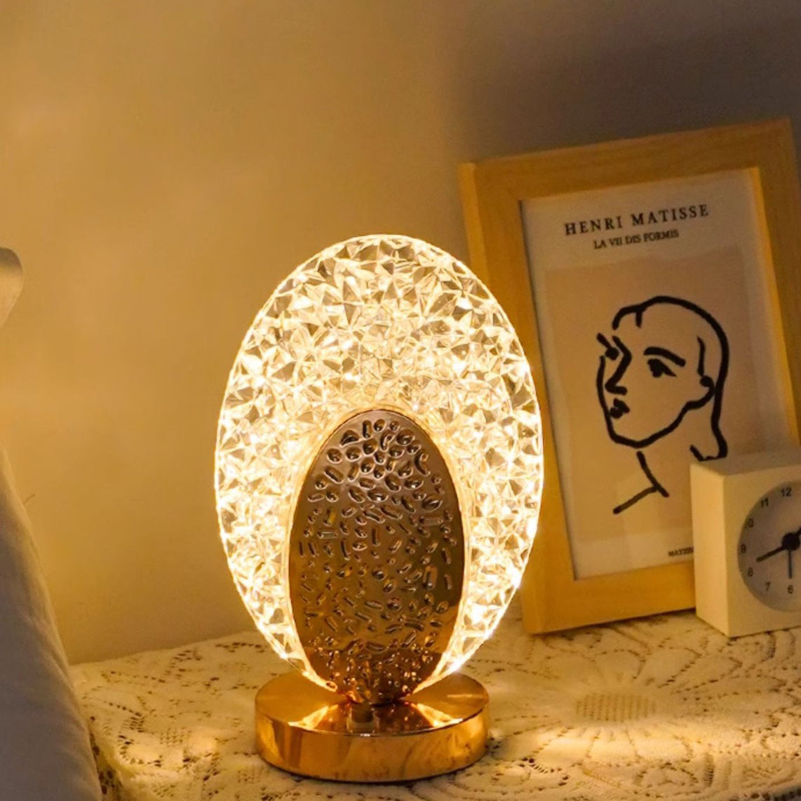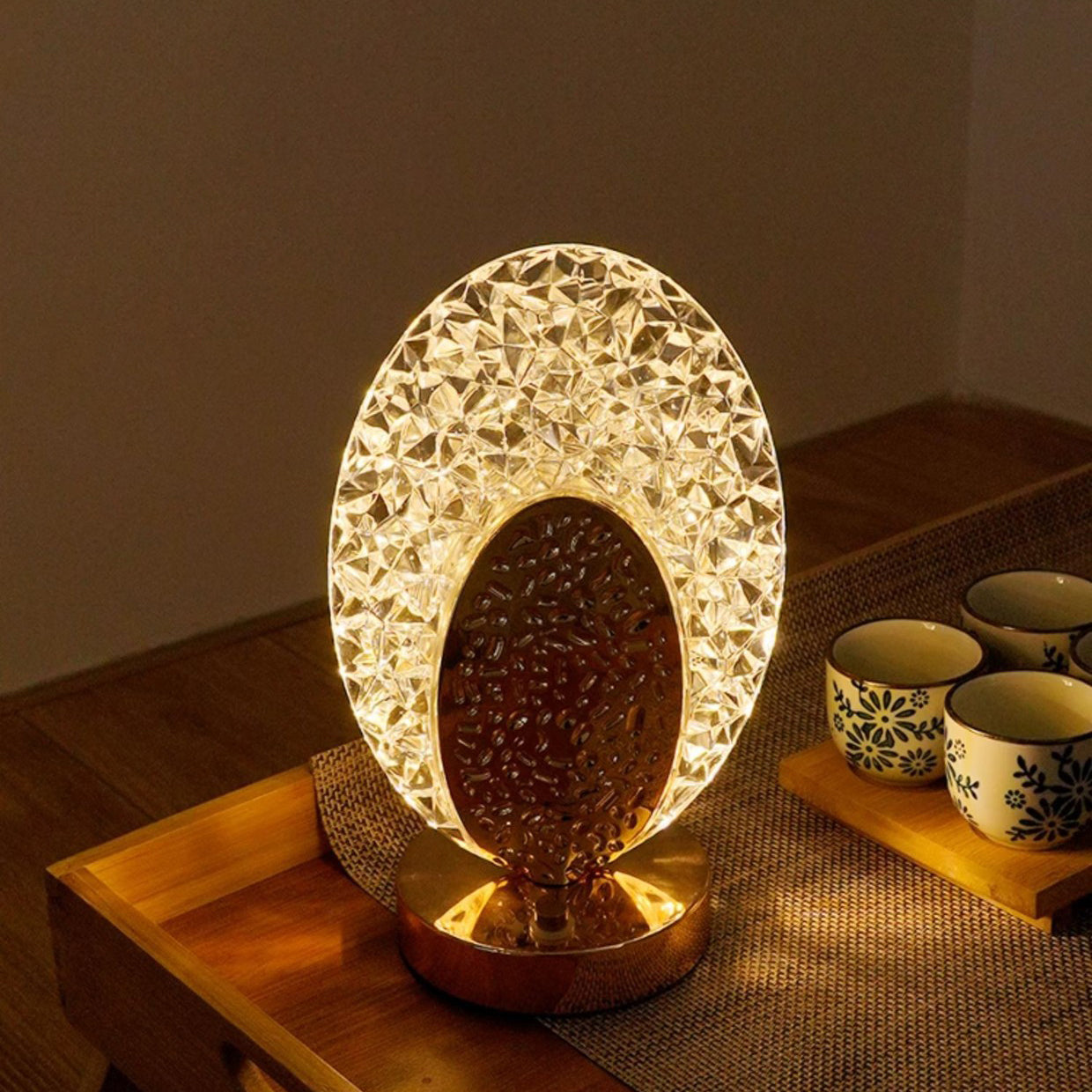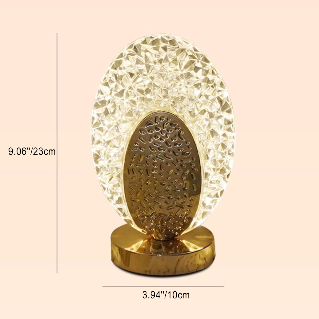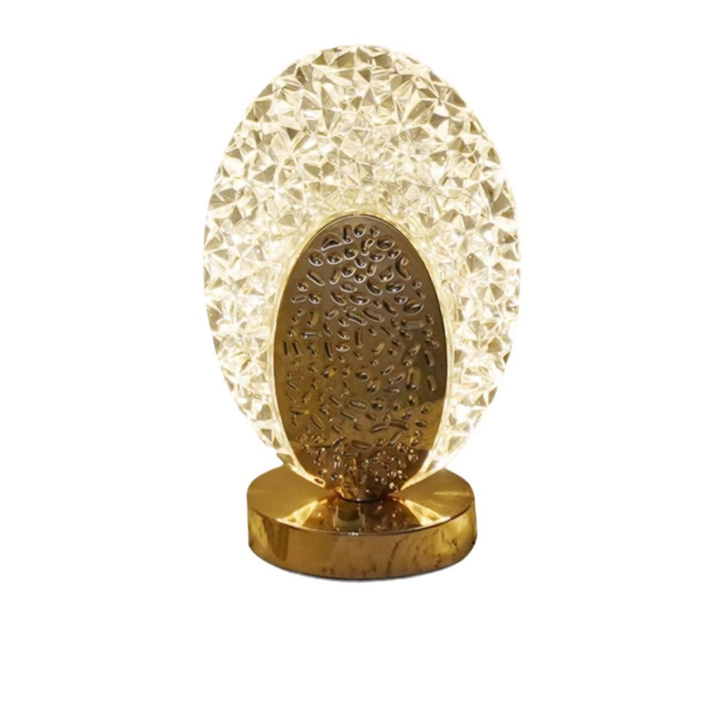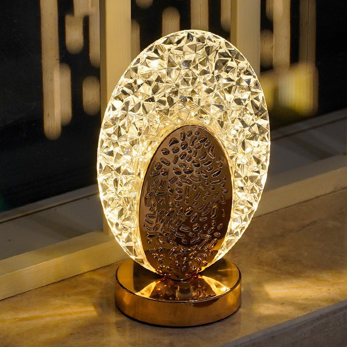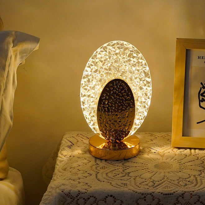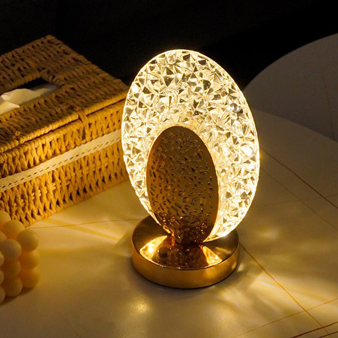 Modern Luxury Rechargeable Acrylic Metal Shell Crackle Elliptical LED Table Lamp Night Light For Bedside