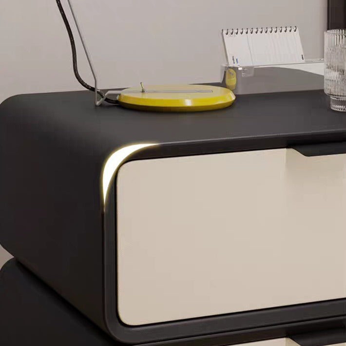 Modern Luxury Rectangle Faux Leather Pine Wood Fiberboard Nightstand 2-Drawer For Bedroom