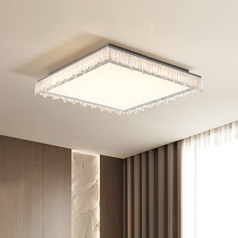 Modern Luxury Rectangle Square Icicle Shape Iron Acrylic LED Flush Mount Ceiling Light For Living Room
