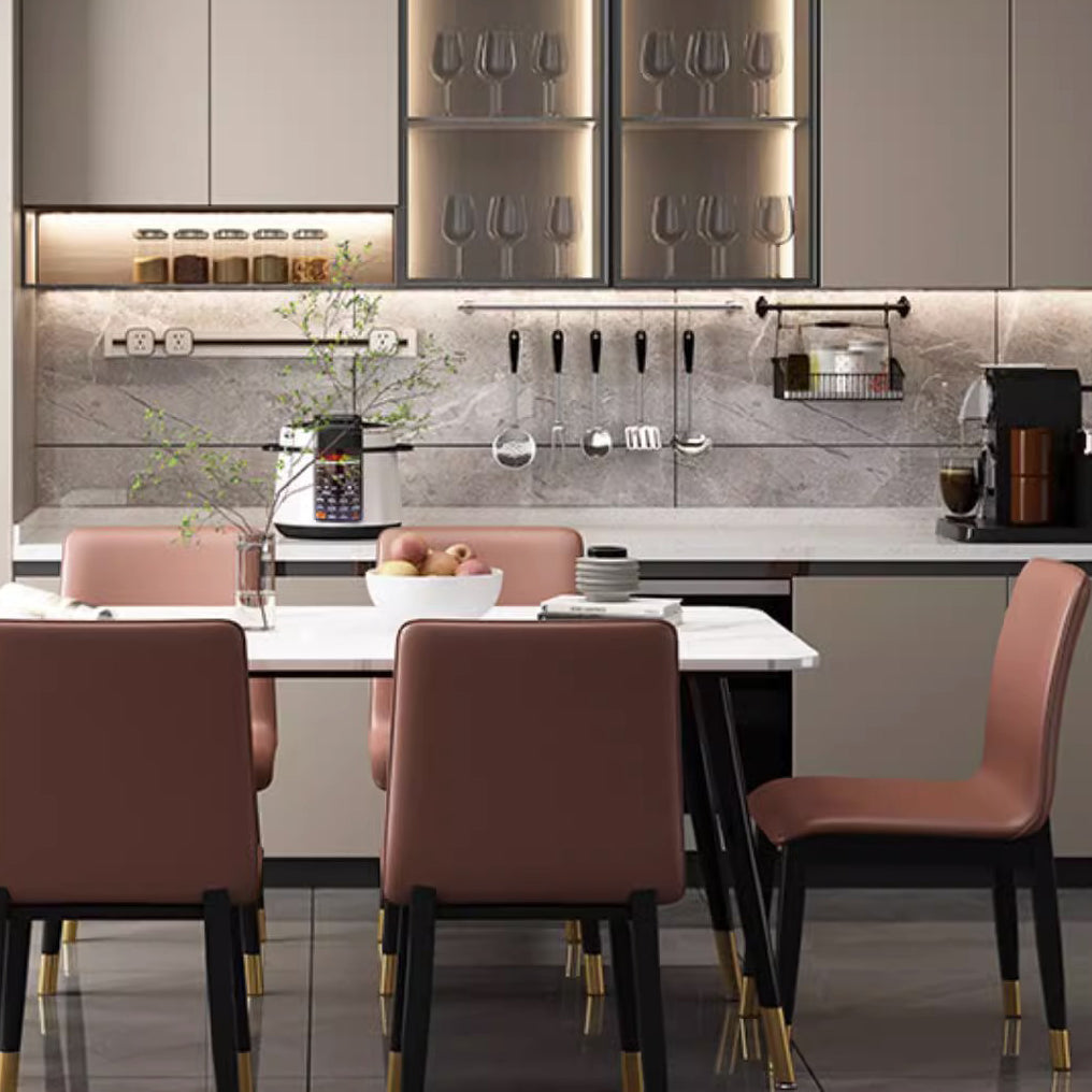 Modern Luxury Rectangle Square Tech Fabric Rubberwood Dining Chair Backrest Armless For Dining Room