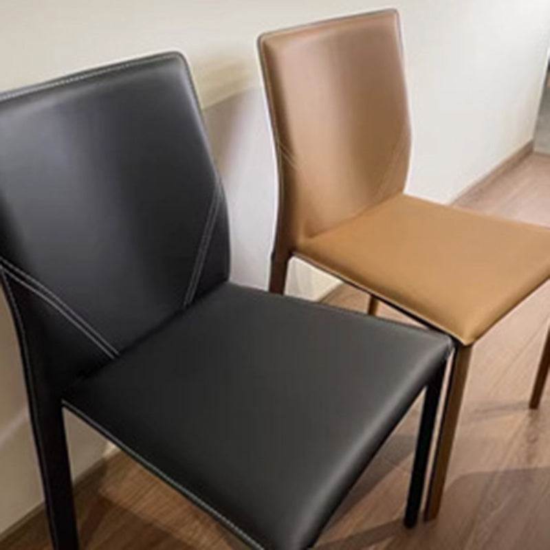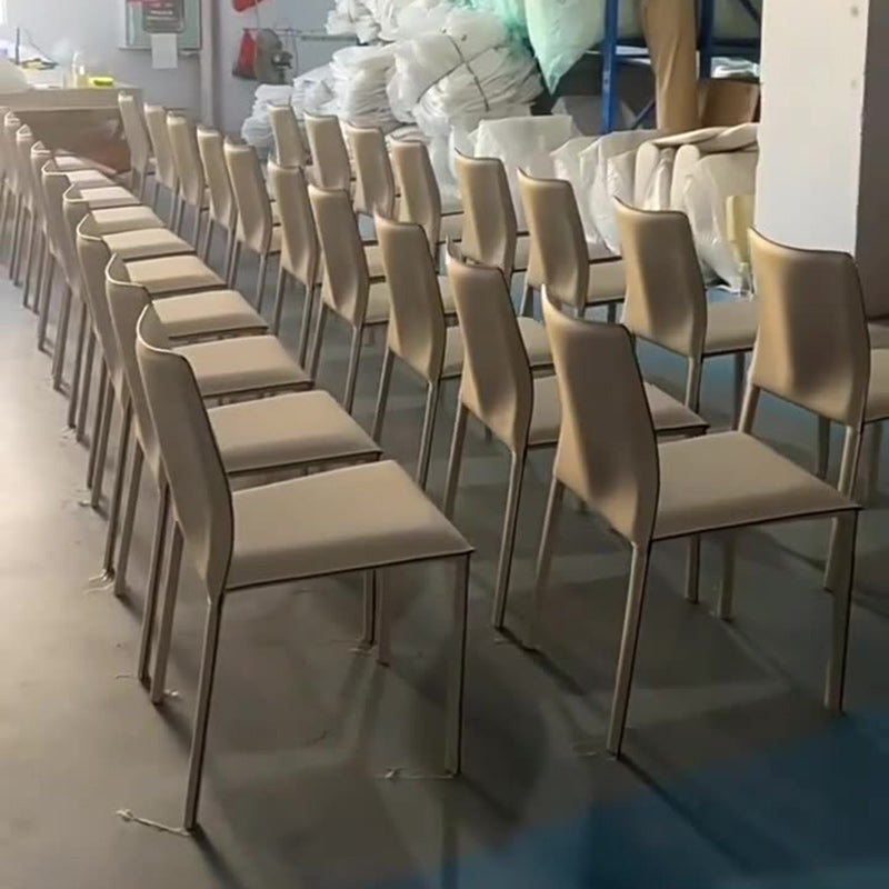 Modern Luxury Rectangular Back Saddle Leather Carbon Steel Dining Chair Backless For Dining Room