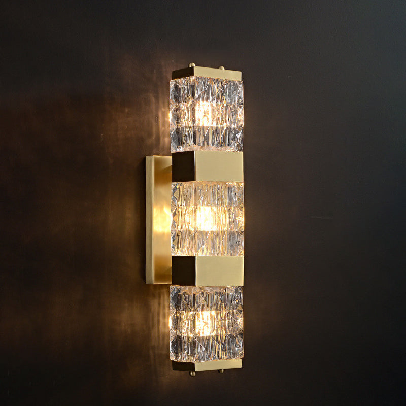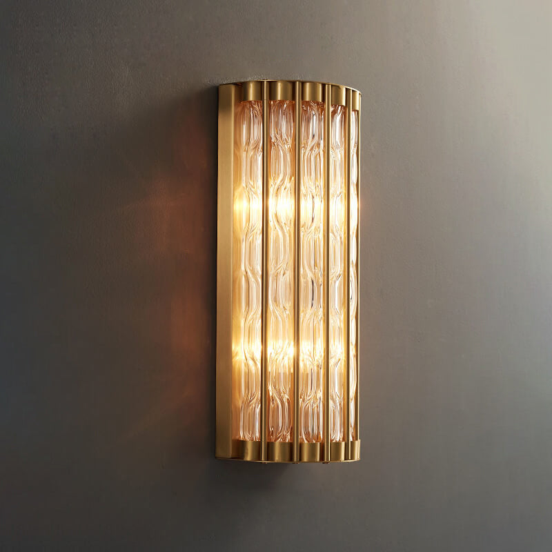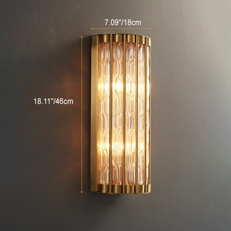 Modern Luxury Rectangular Half-Cylinder Copper Glass 2/3 Light Wall Sconce Lamp
