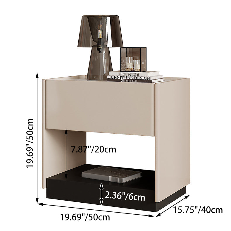 Modern Luxury Rectangular Marble Slab Solid Wood Nightstand 1-Drawer For Bedroom