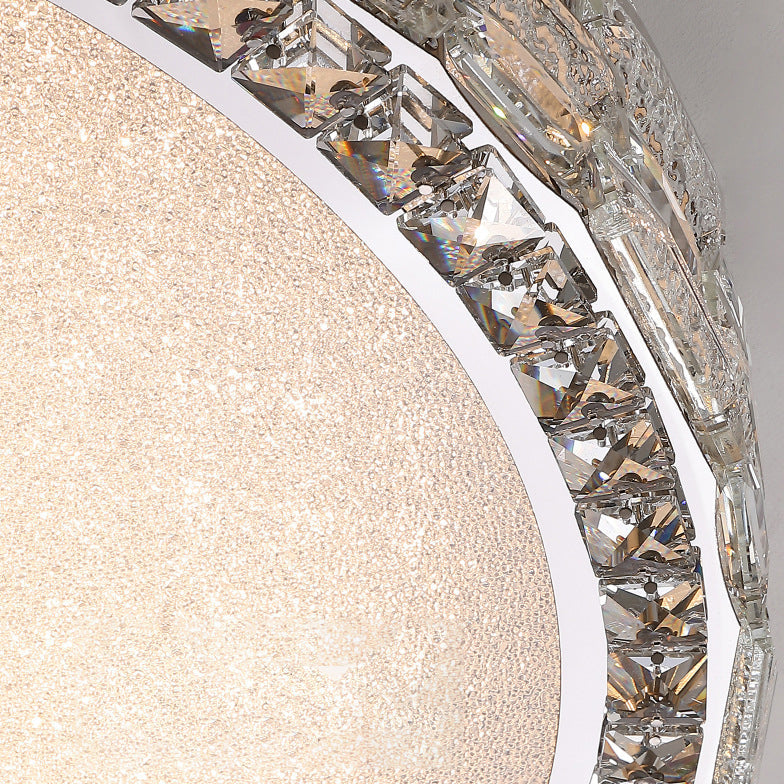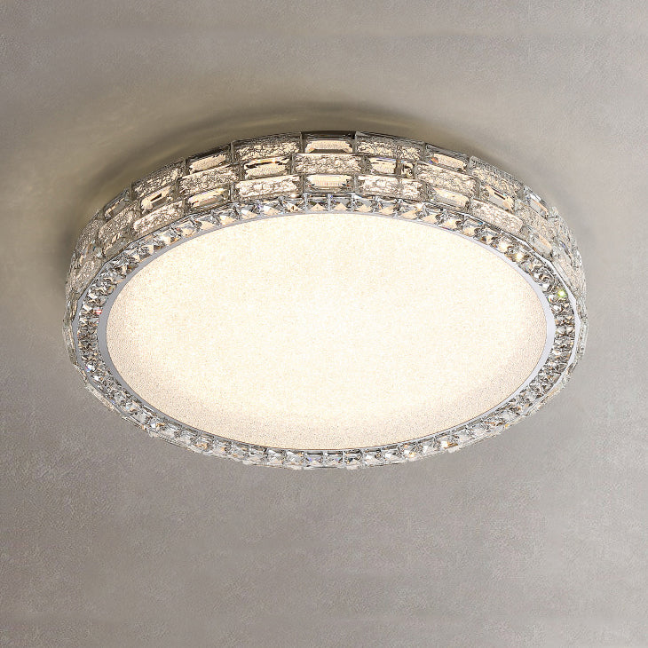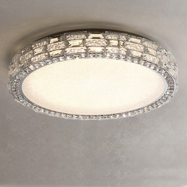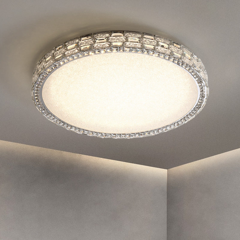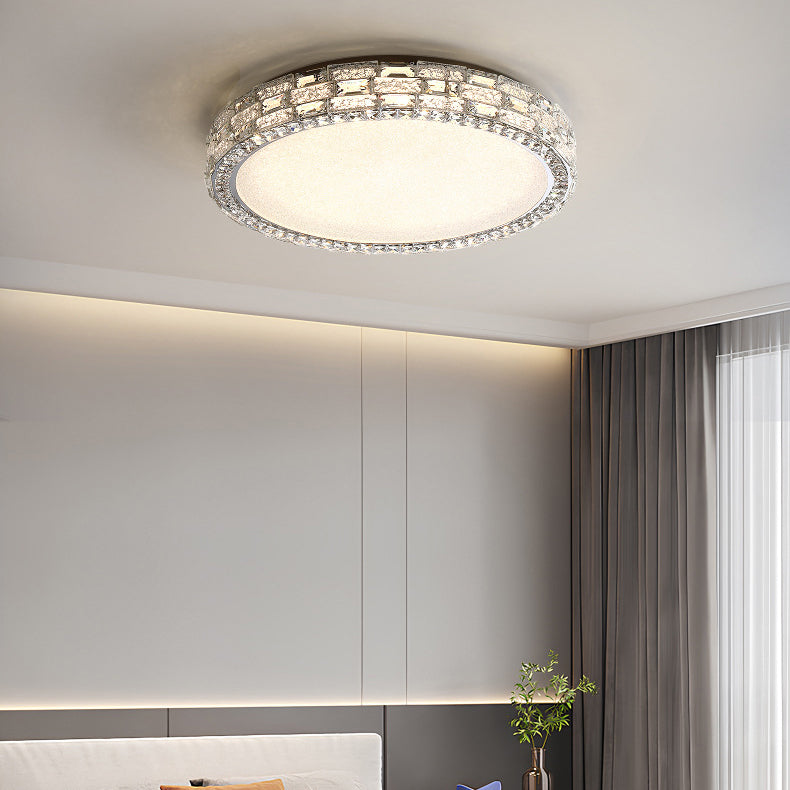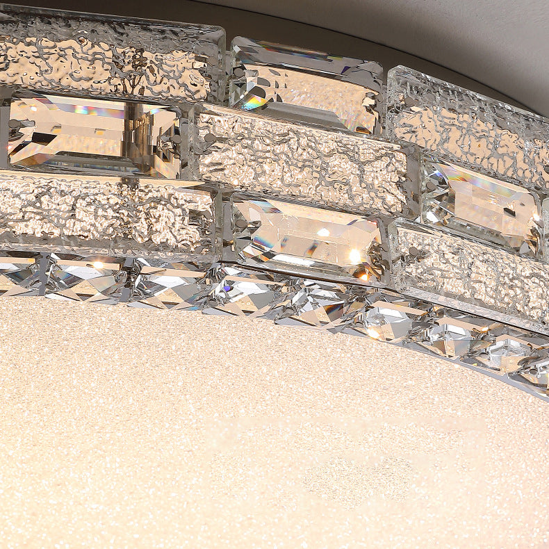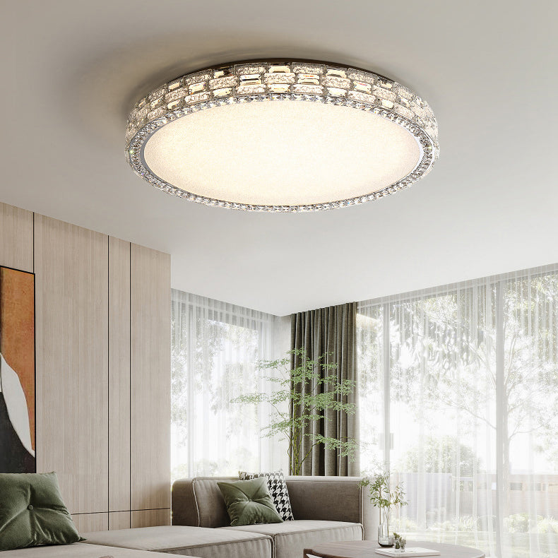 Modern Luxury Round Acrylic Stainless Steel Crystal LED Flush Mount Ceiling Light For Living Room