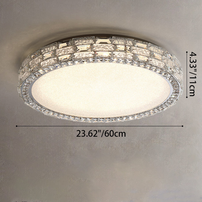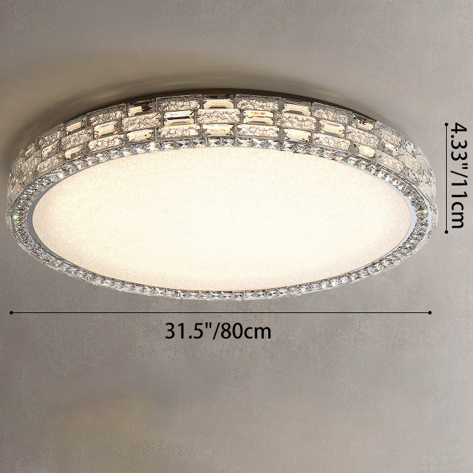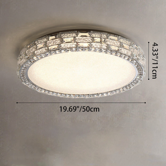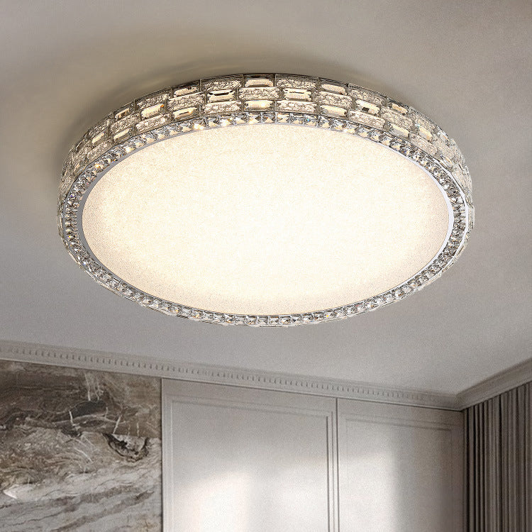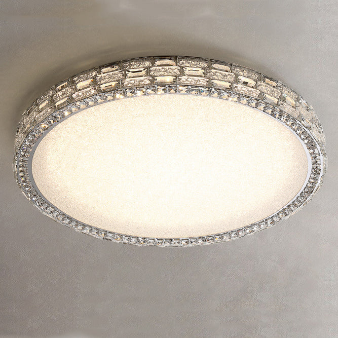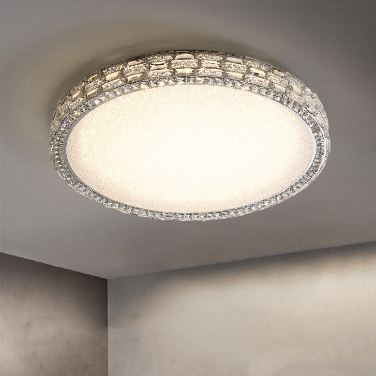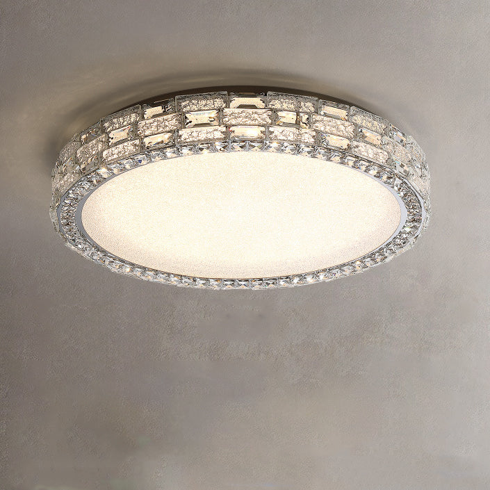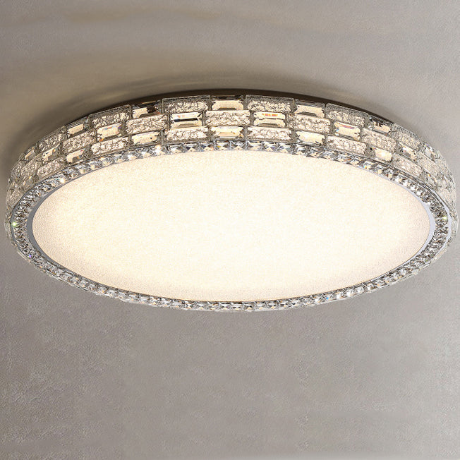 Modern Luxury Round Acrylic Stainless Steel Crystal LED Flush Mount Ceiling Light For Living Room