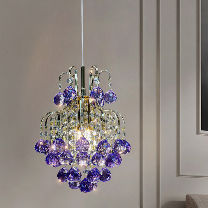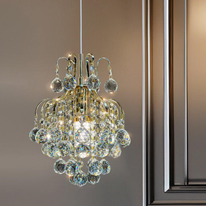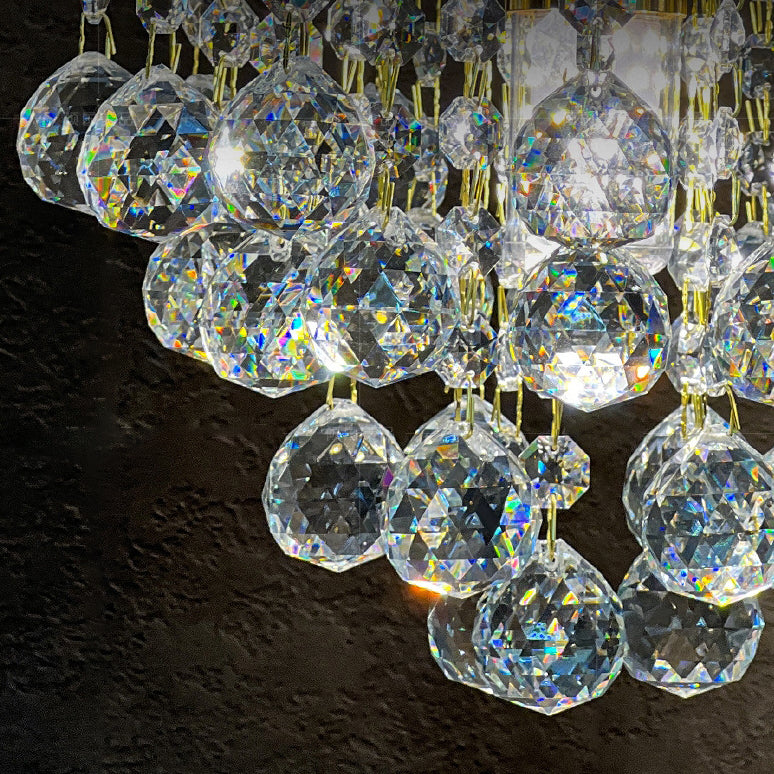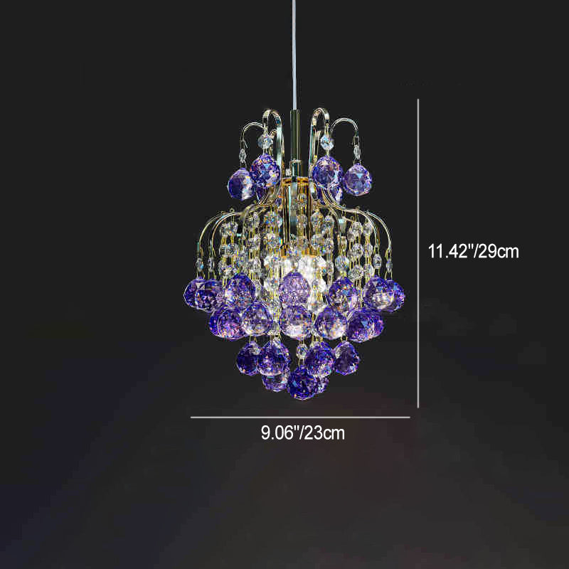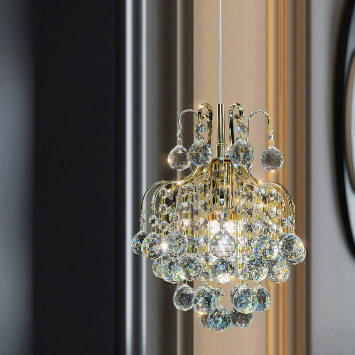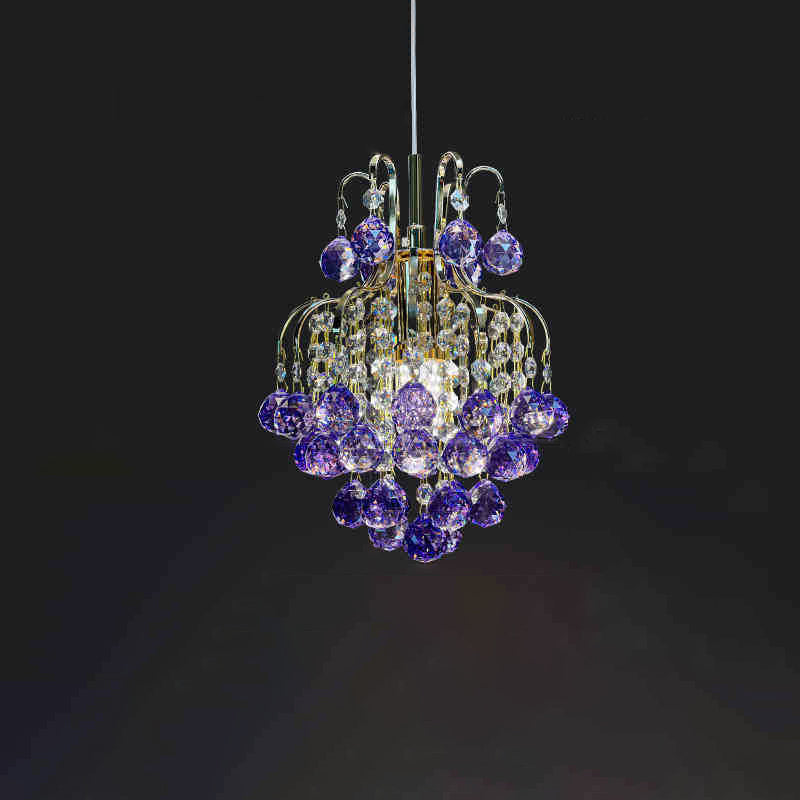 Modern Luxury Round Crystal Blocks Lampshade Hardware 1 - Light Pendant Light For Living Room