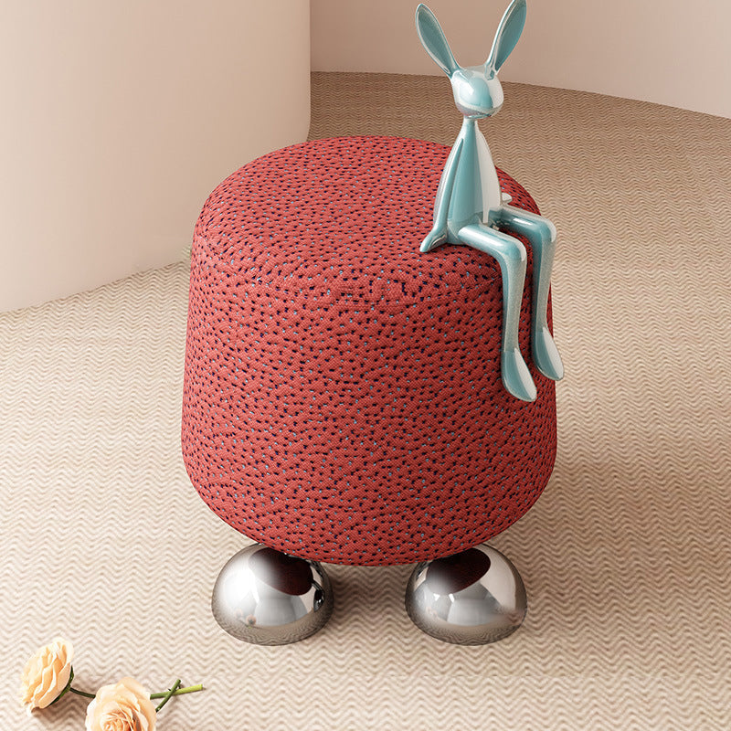 Modern Luxury Round Cushion Cotton Linen Solid Wood Stainless Steel Vanity Stool 4-Leg For Bedroom