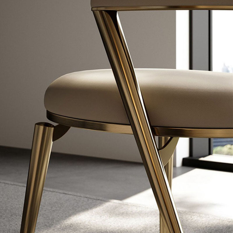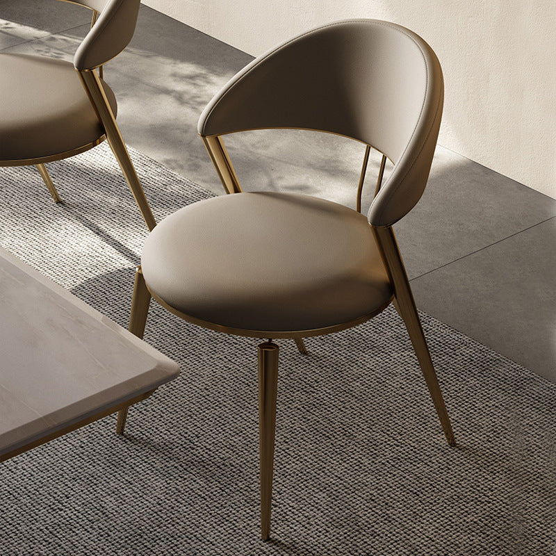 Modern Luxury Round Cushion Microfiber Leather Carbon Steel Dining Chair Backrest Armrest For Dining Room