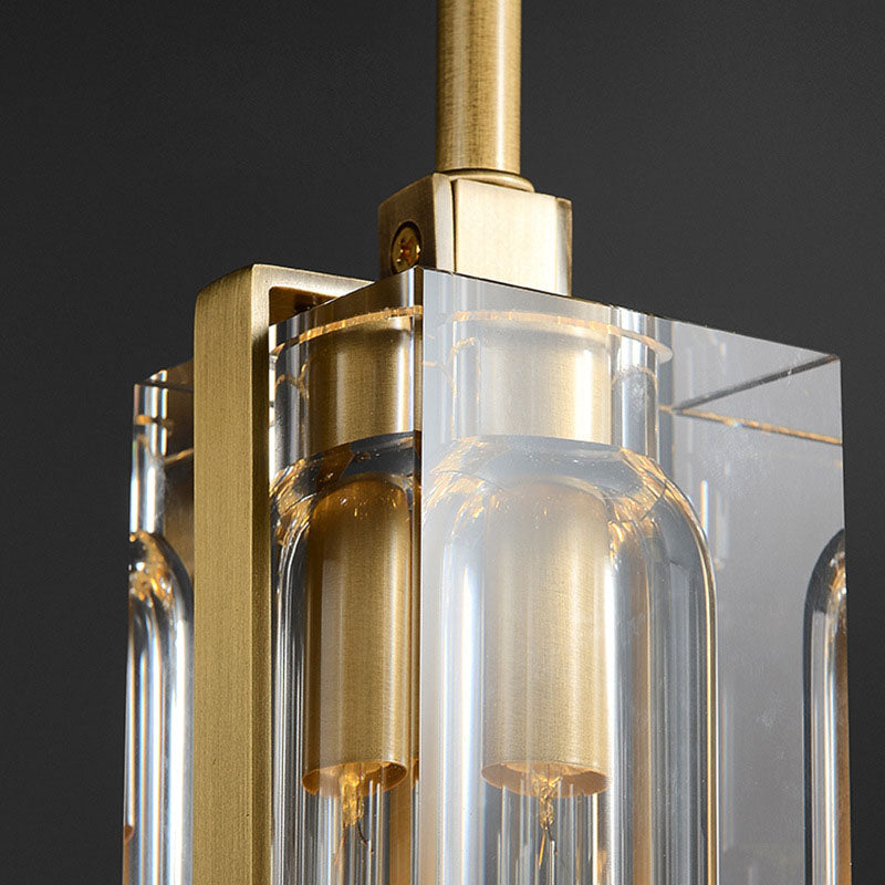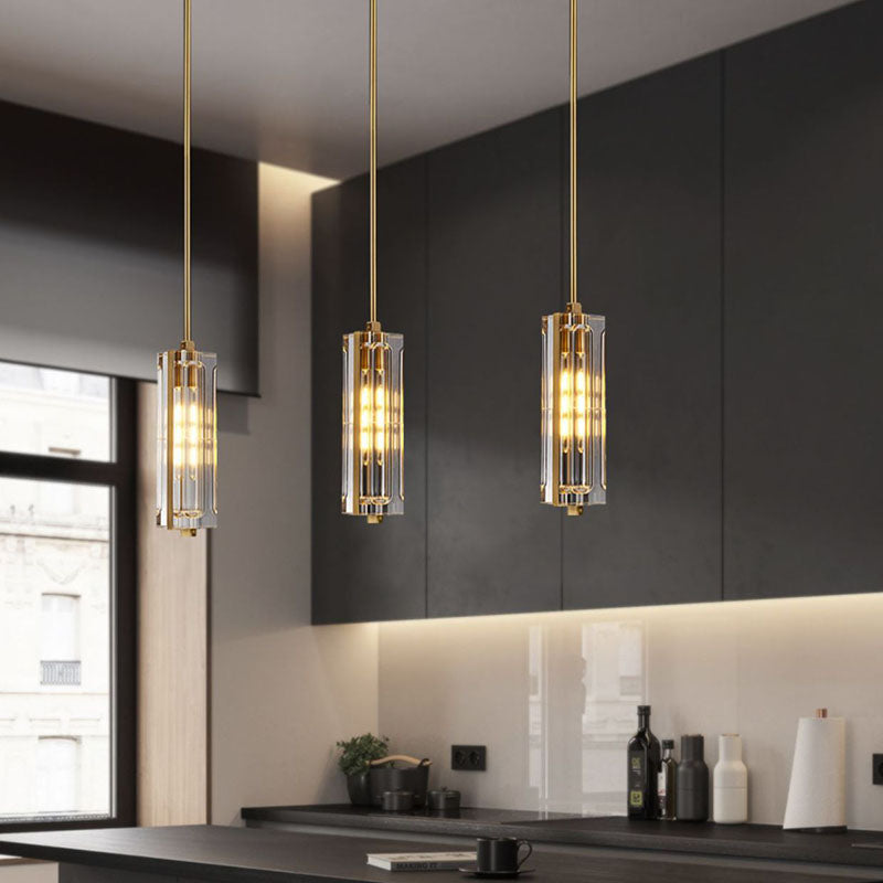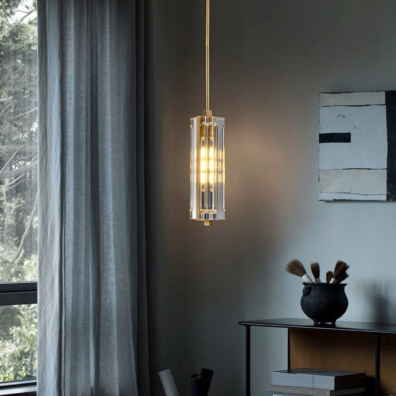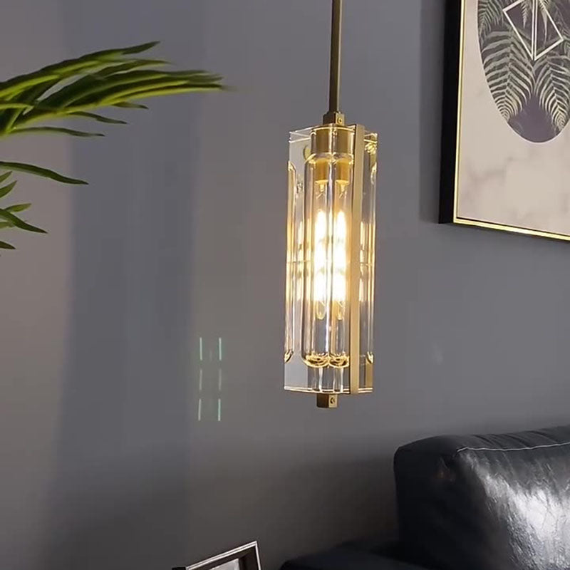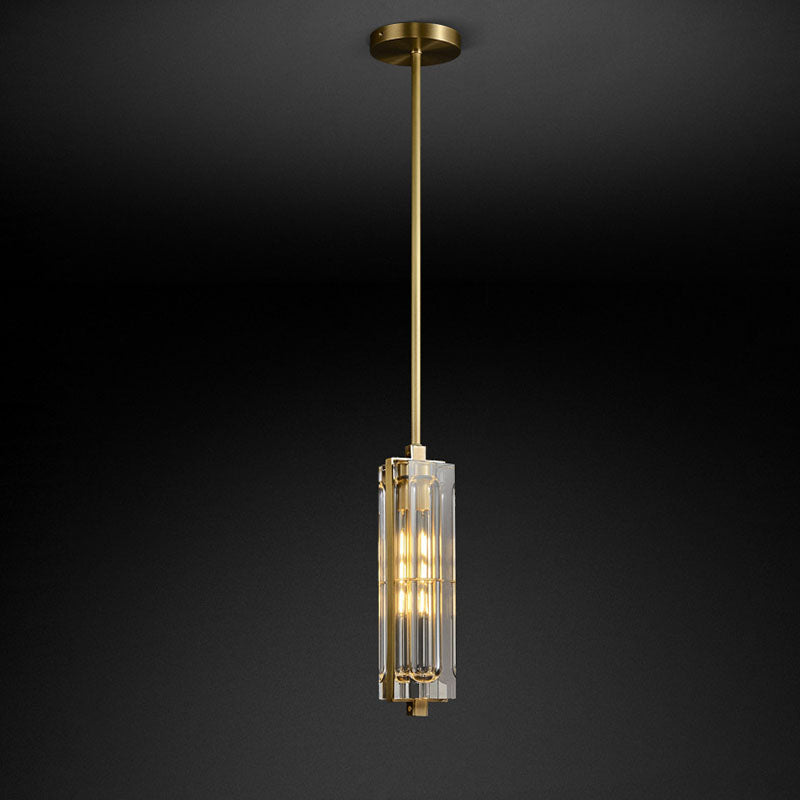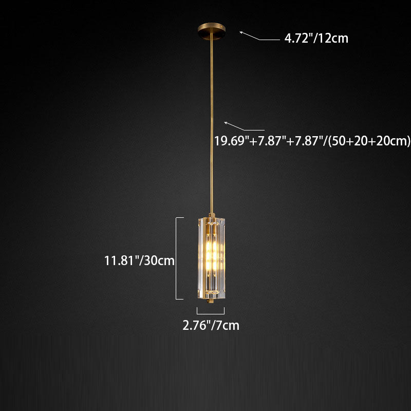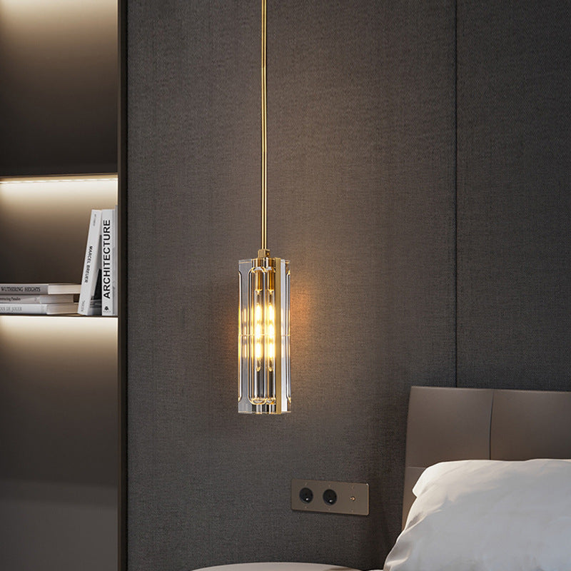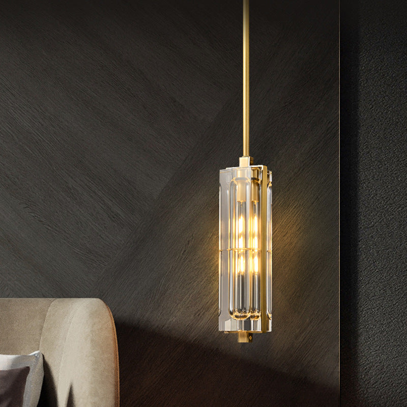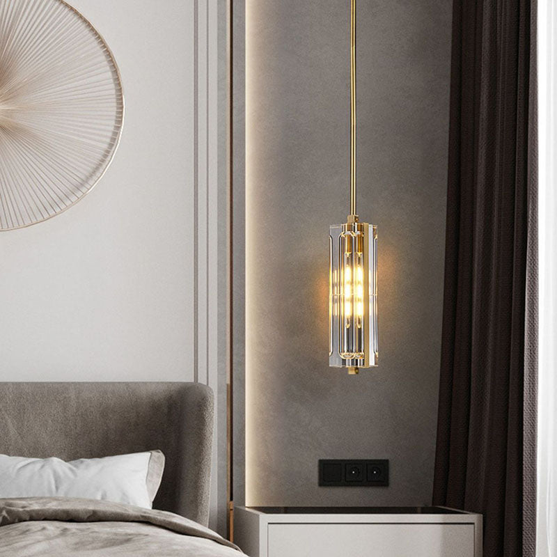 Modern Luxury Round Cylinder Copper Crystal 1-Light Pendant Light For Bedroom