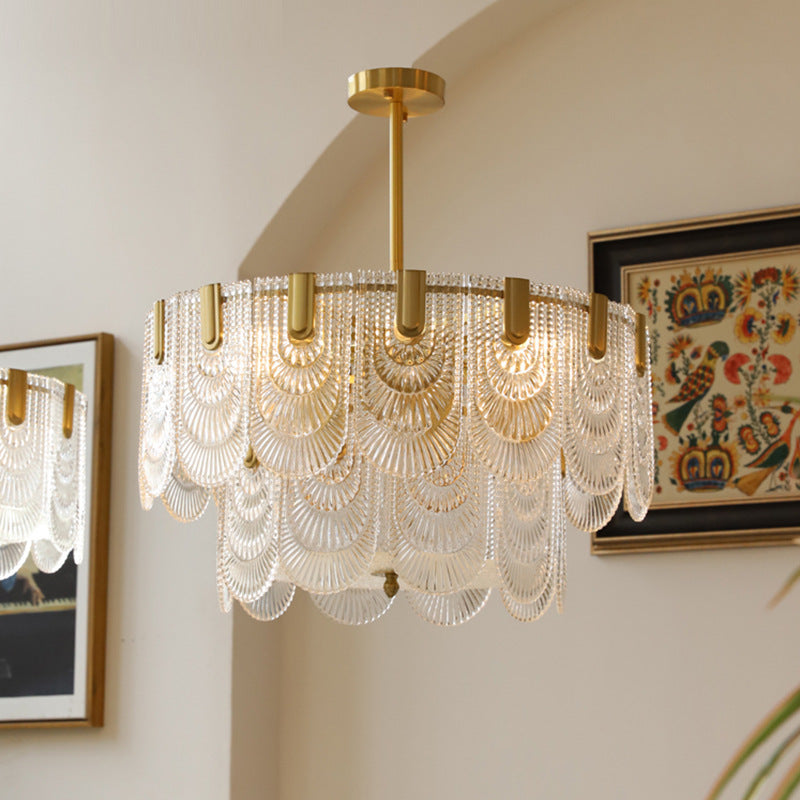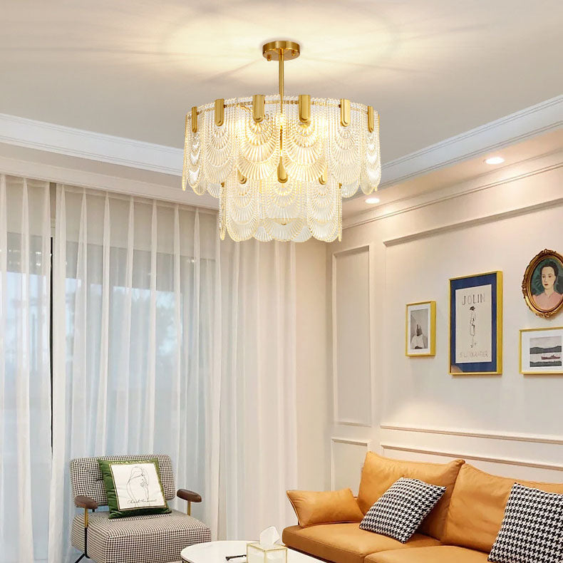 Modern Luxury Round Double Layer Glass Iron 6/9 Light Pendant Light For Living Room
