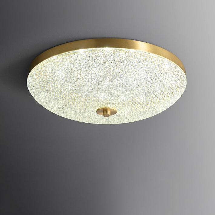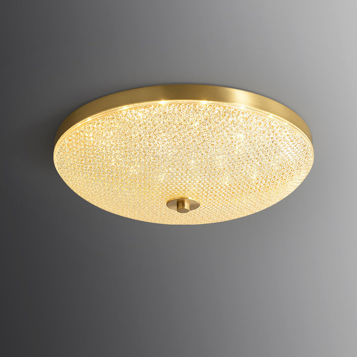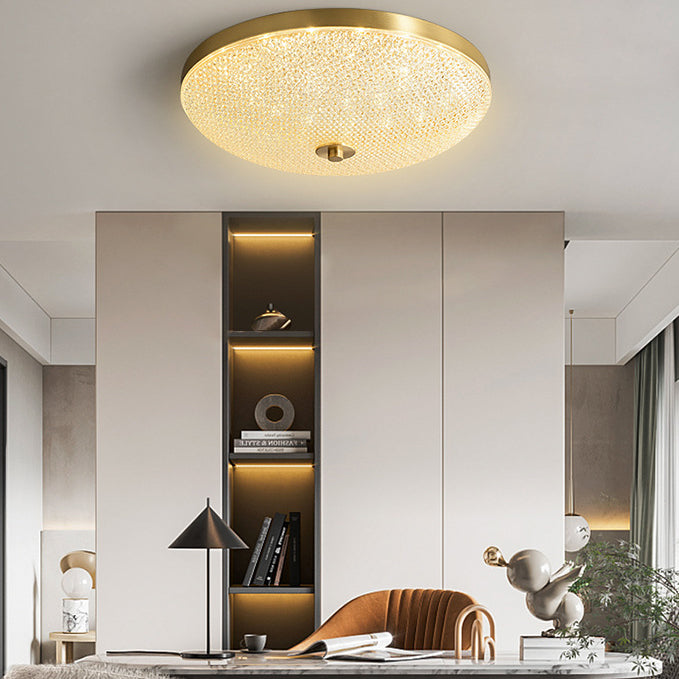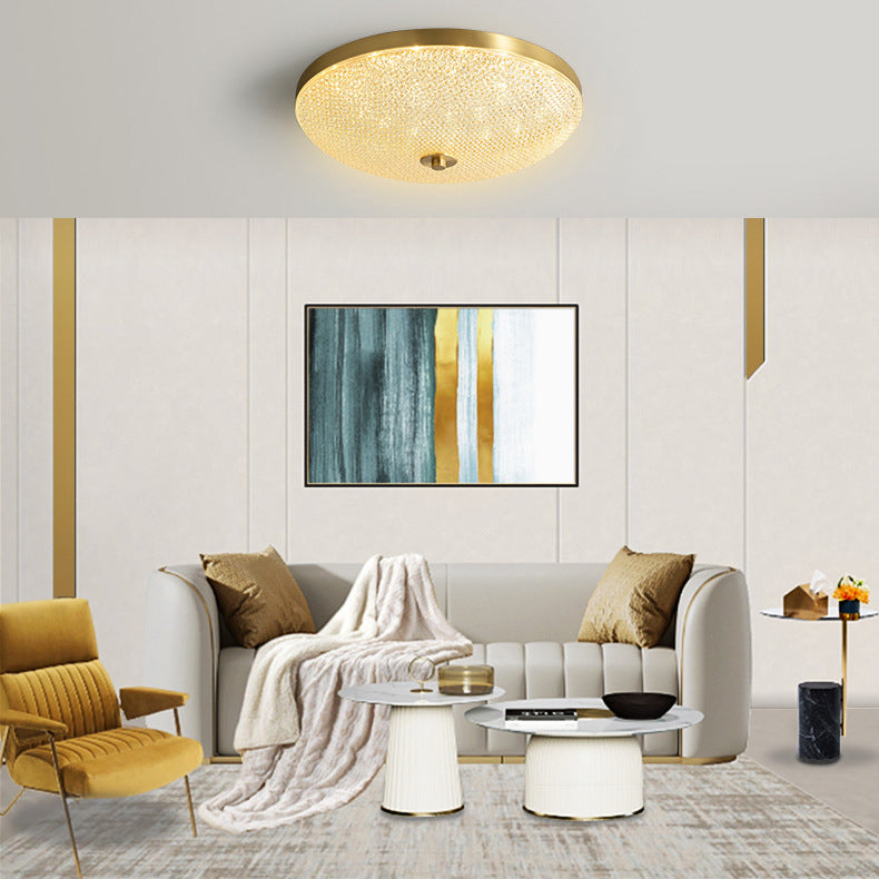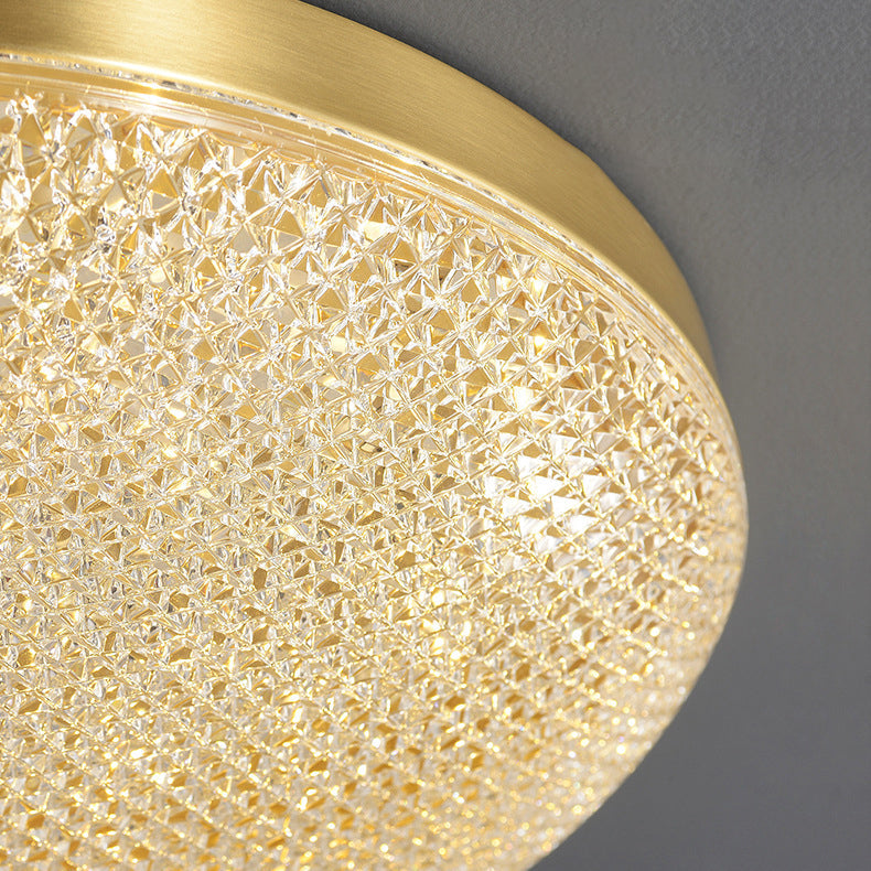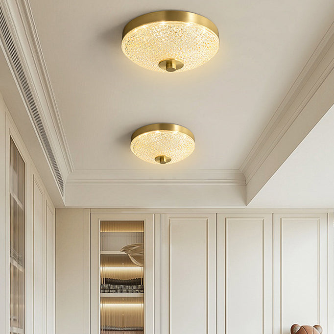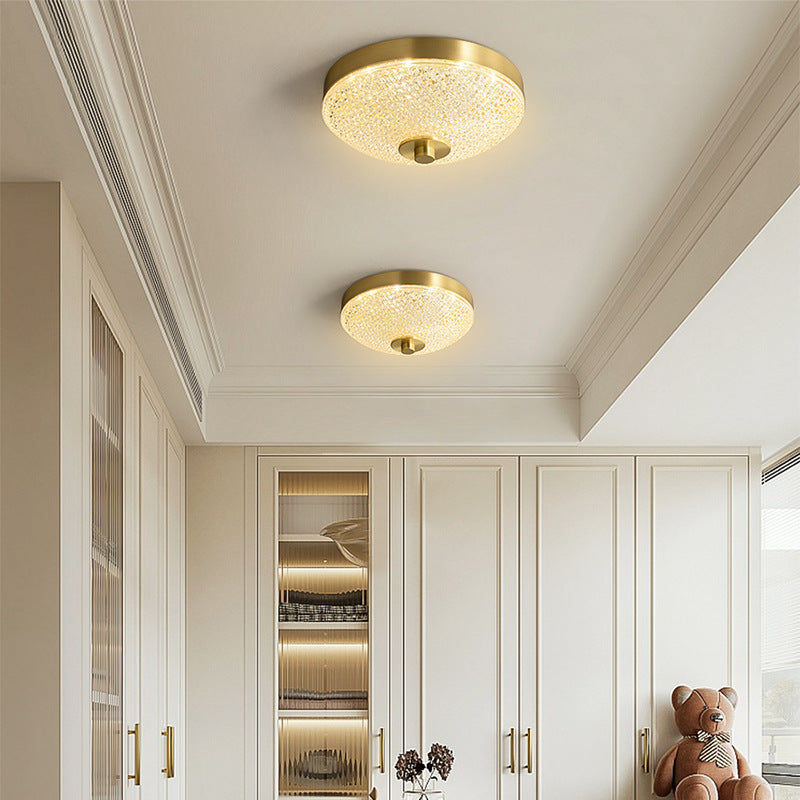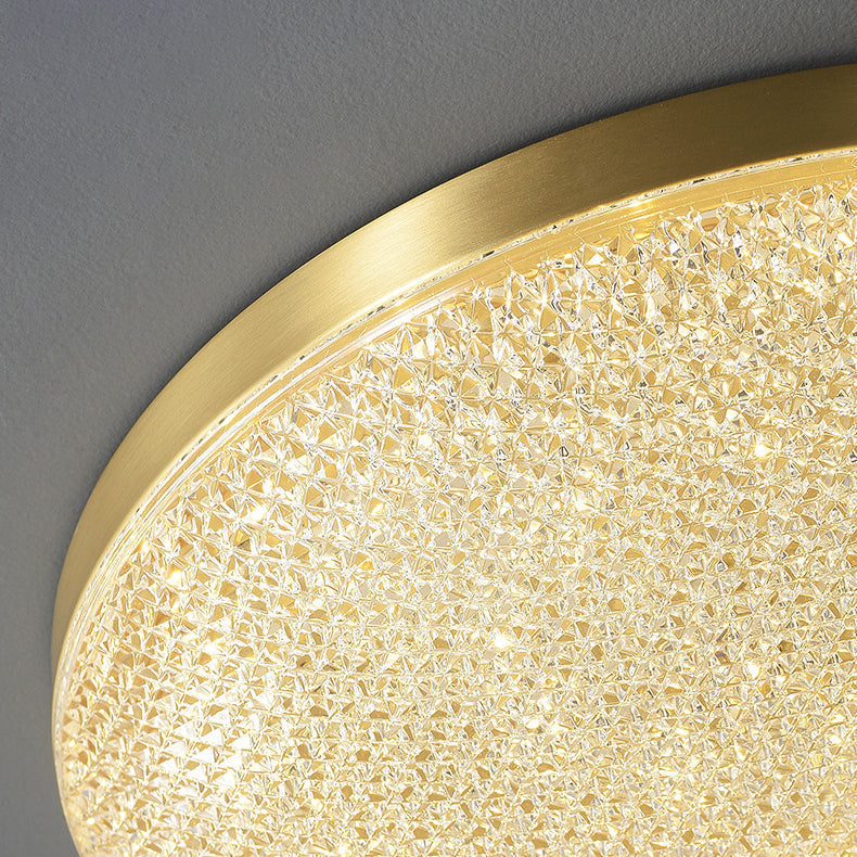 Modern Luxury Round Full Copper Acrylic LED Flush Mount Ceiling Light For Living Room