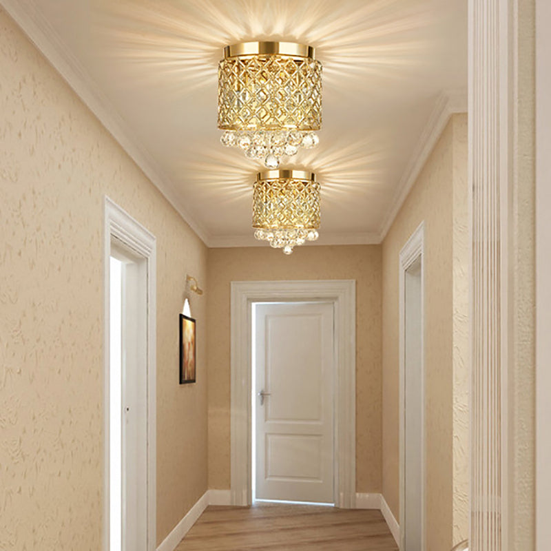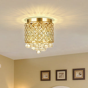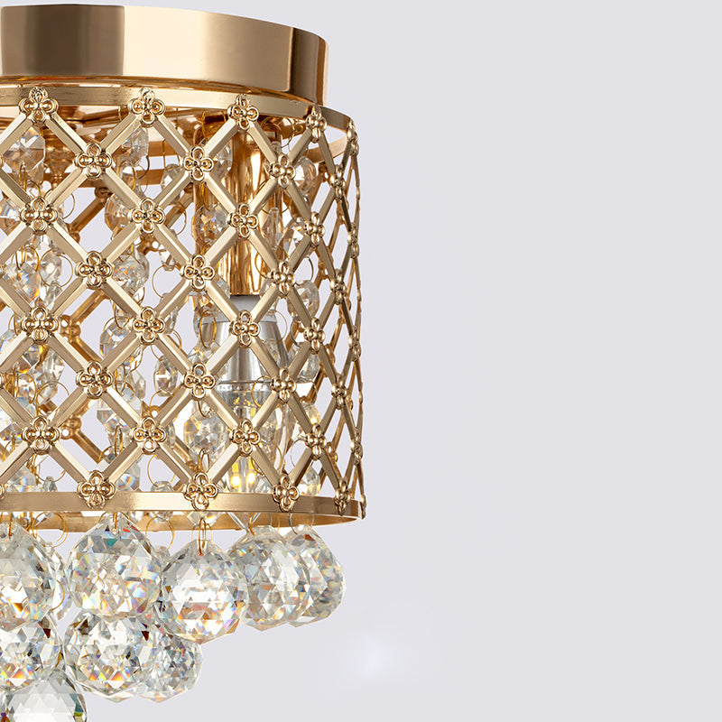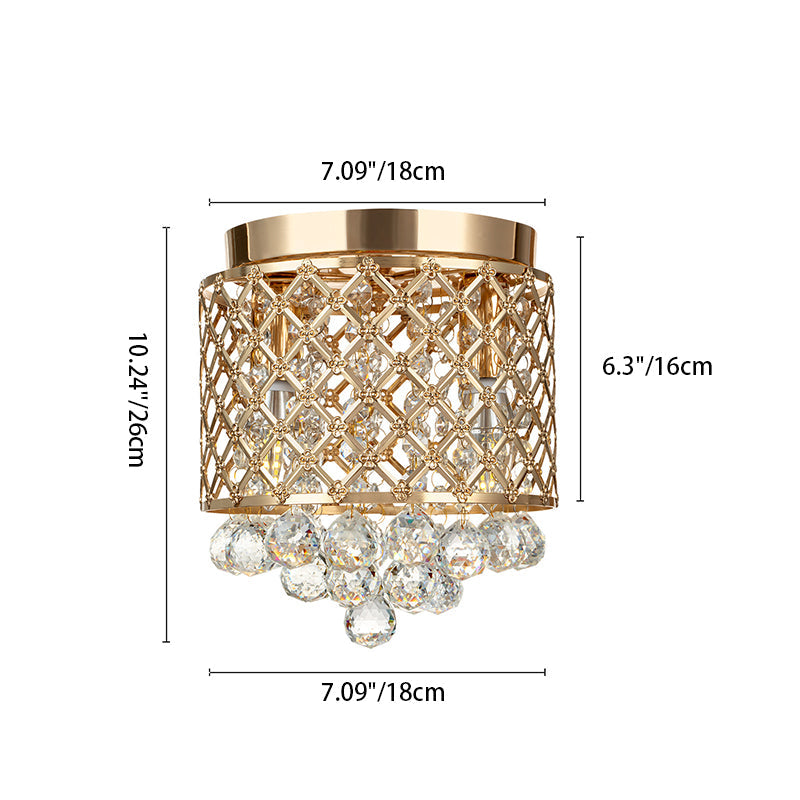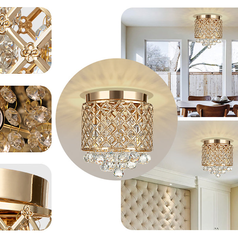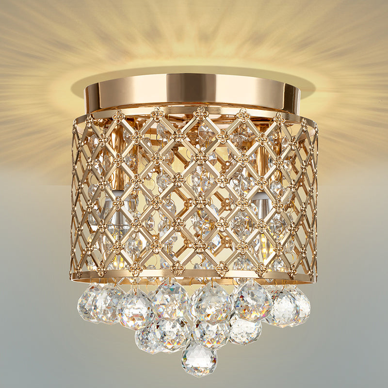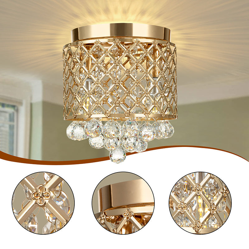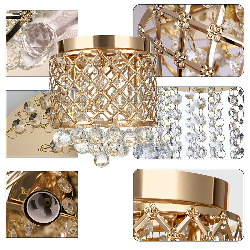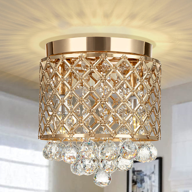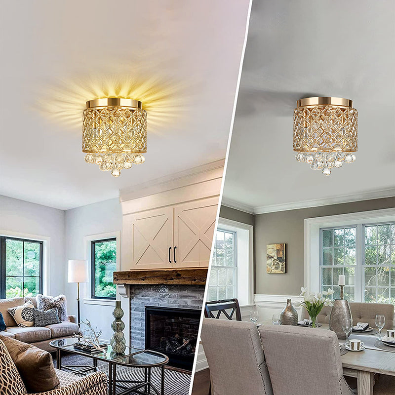 Modern Luxury Round Iron Crystal 2-Light Flush Mount Ceiling Light For Living Room