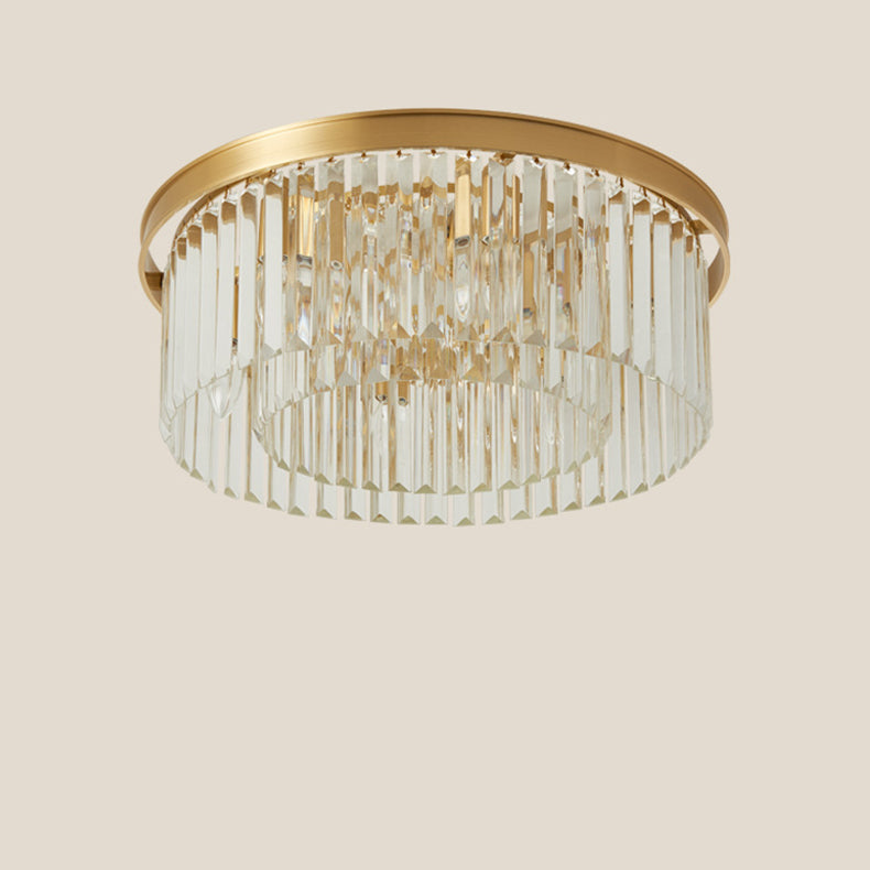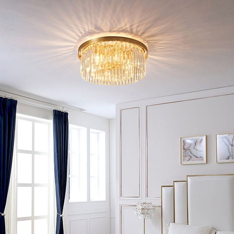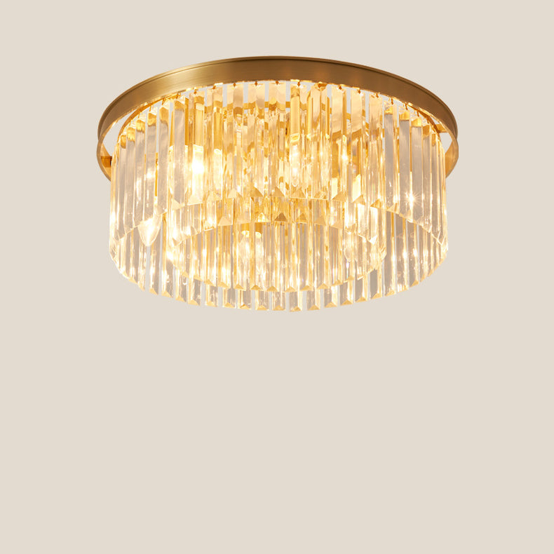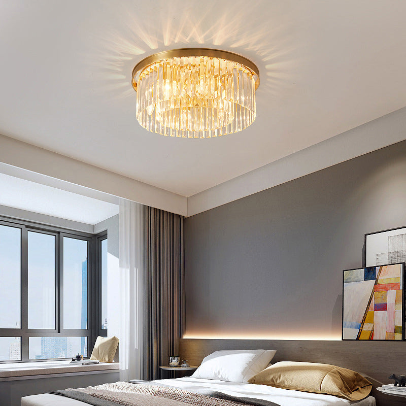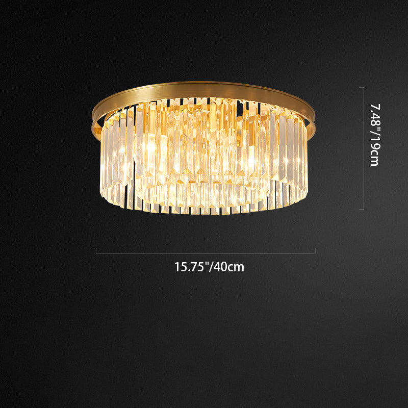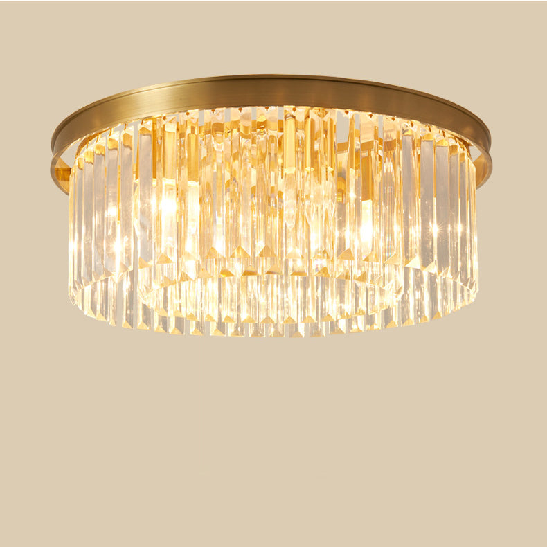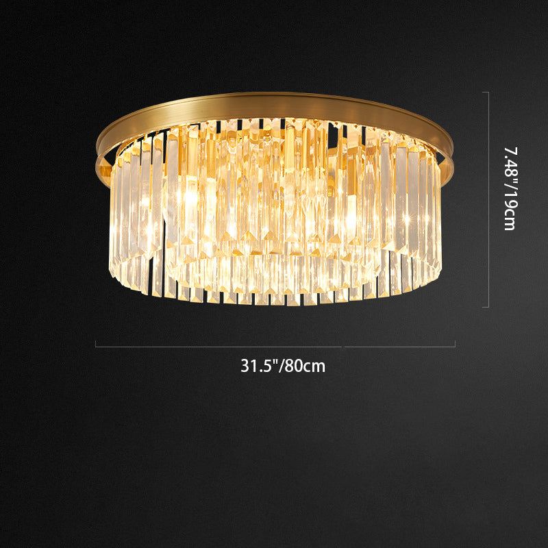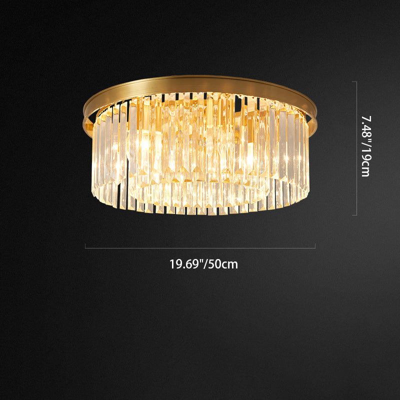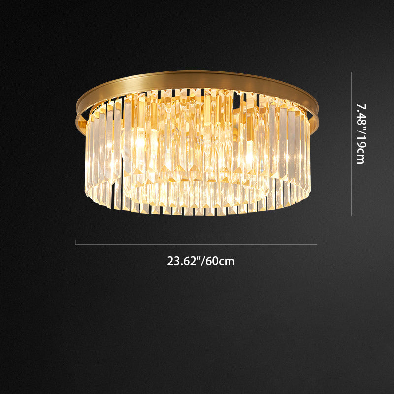 Modern Luxury Round Long Full Copper Crystal 4/5/6/8 Light Flush Mount Ceiling Light For Living Room
