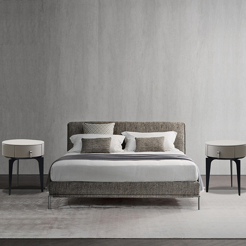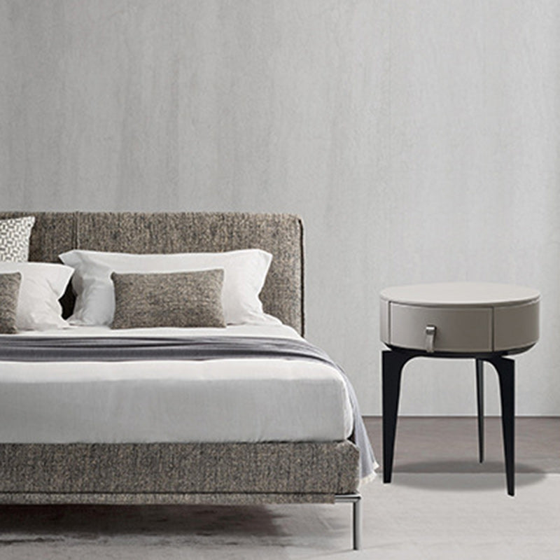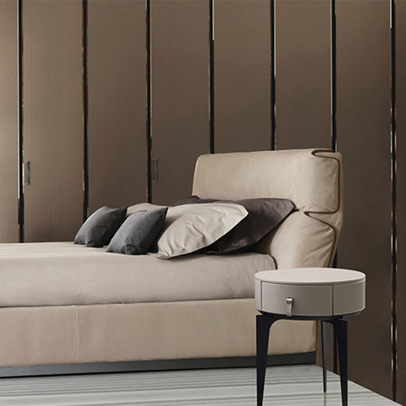 Modern Luxury Round Microfiber Leather Solid Wood Metal Nightstand 1-Drawer For Bedroom
