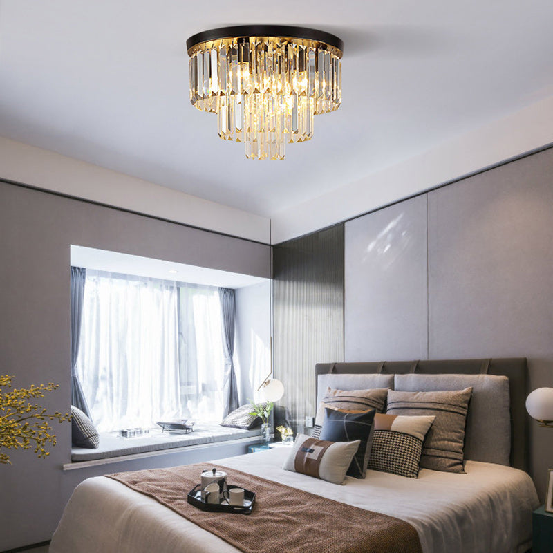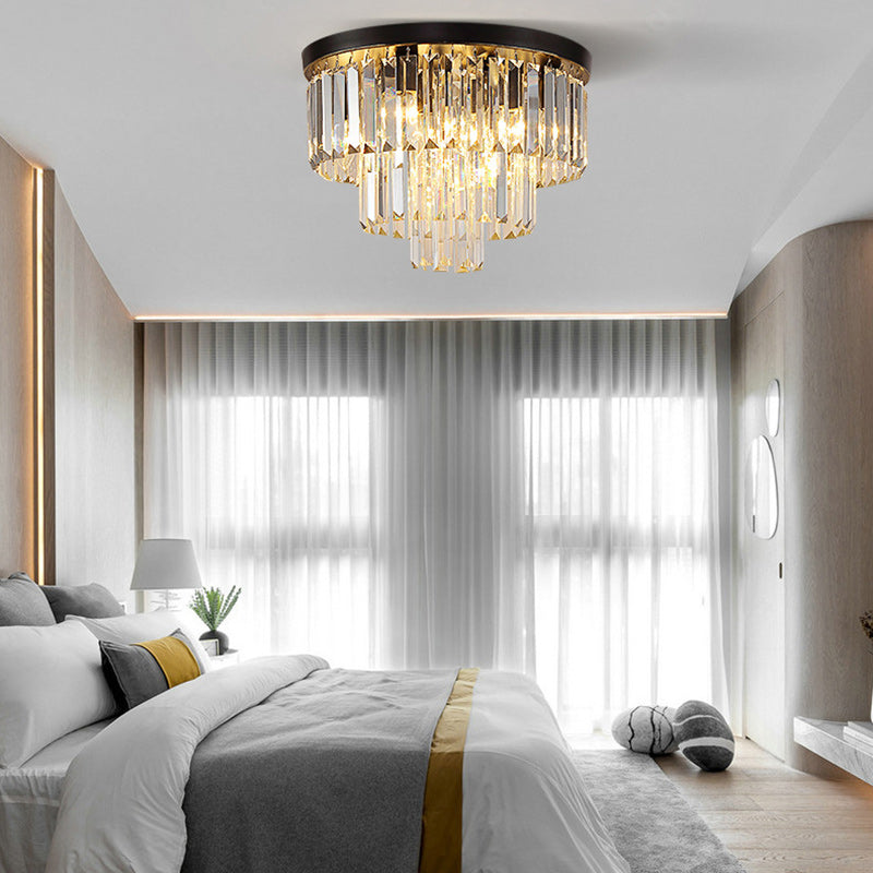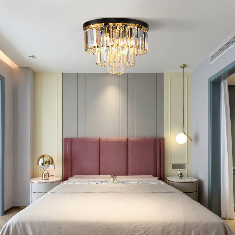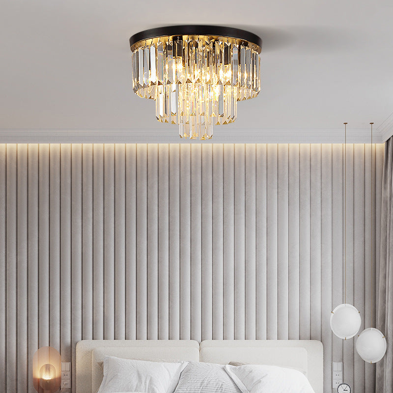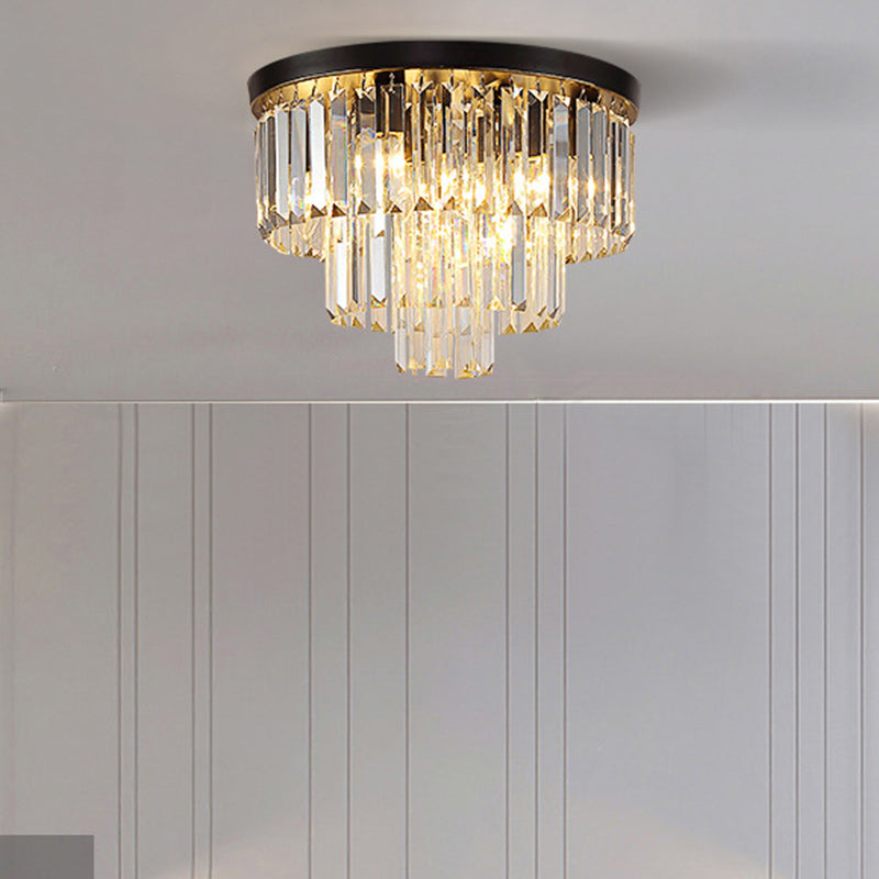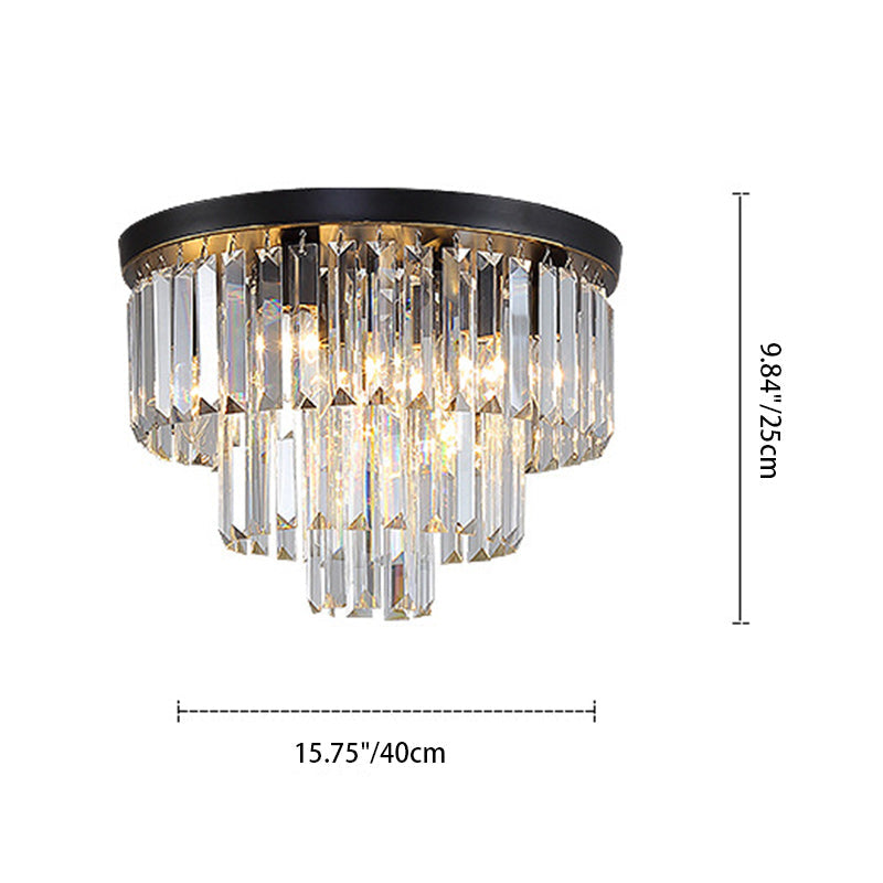 Modern Luxury Round Multi-Level Rectangle Crystal Iron 6-Light Semi-Flush Mount Ceiling Light For Living Room