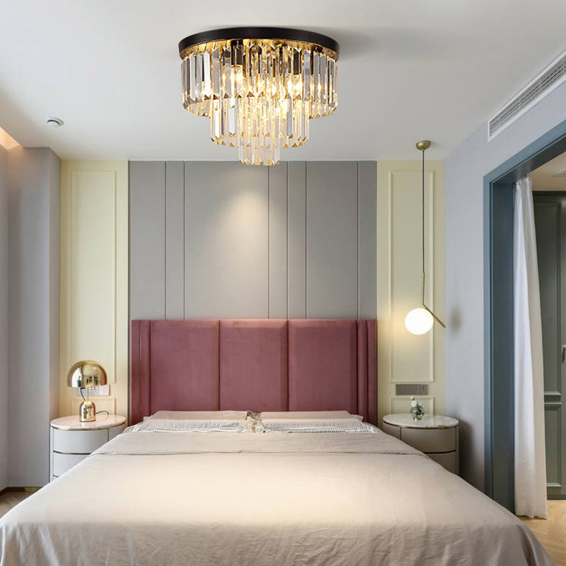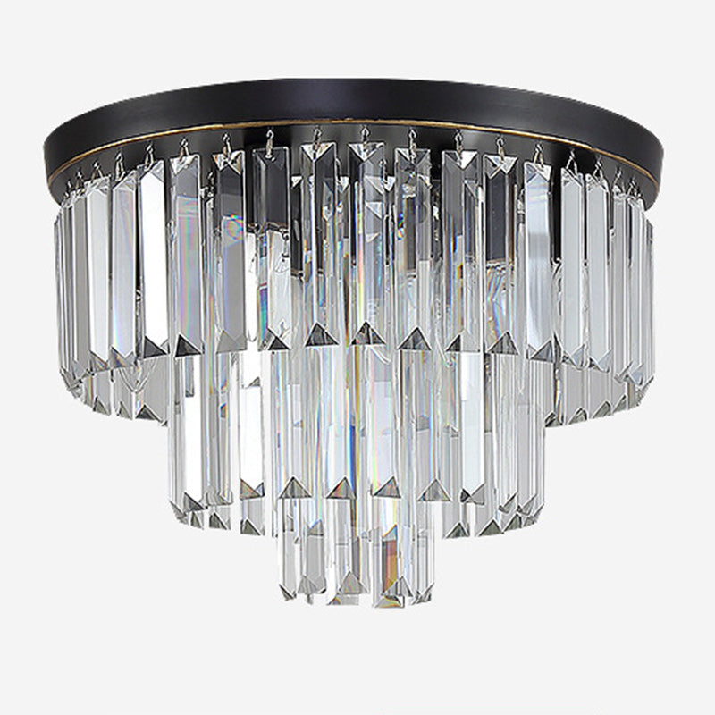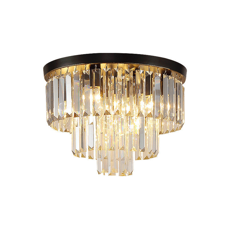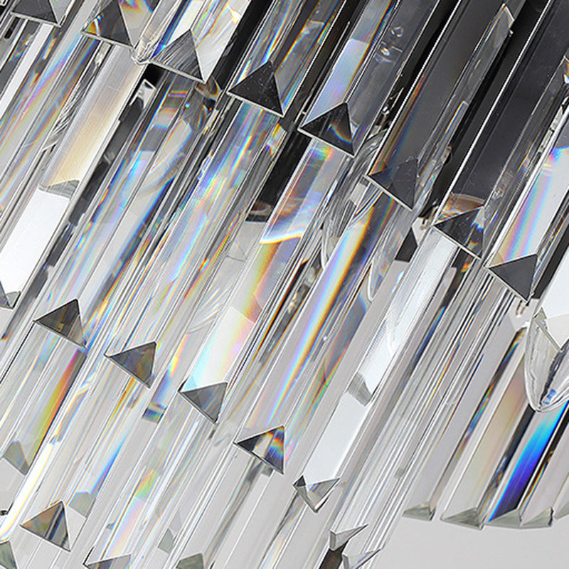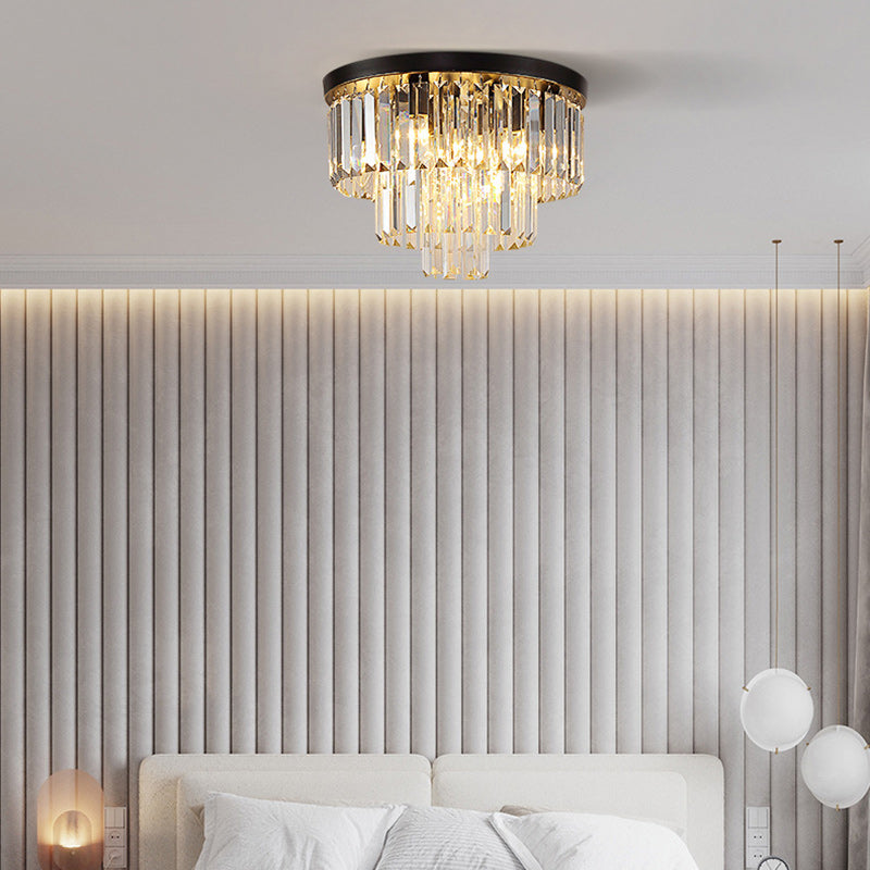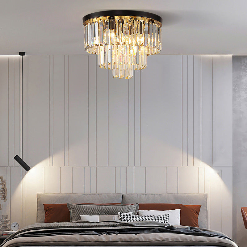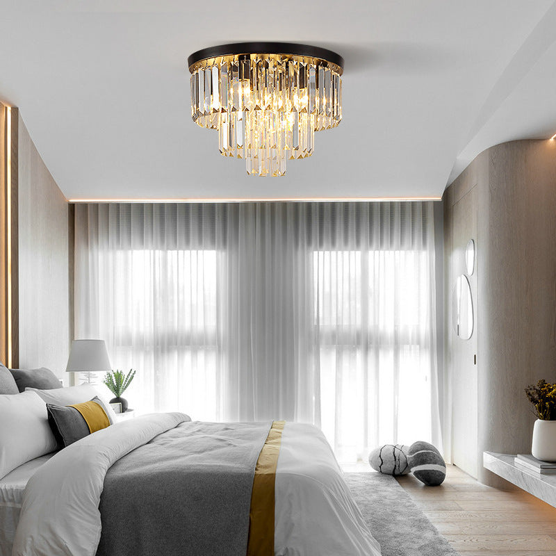 Modern Luxury Round Multi-Level Rectangle Crystal Iron 6-Light Semi-Flush Mount Ceiling Light For Living Room
