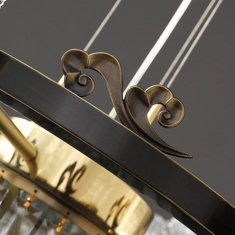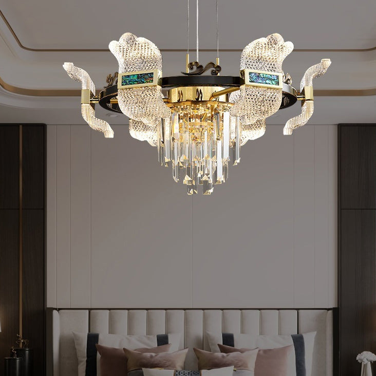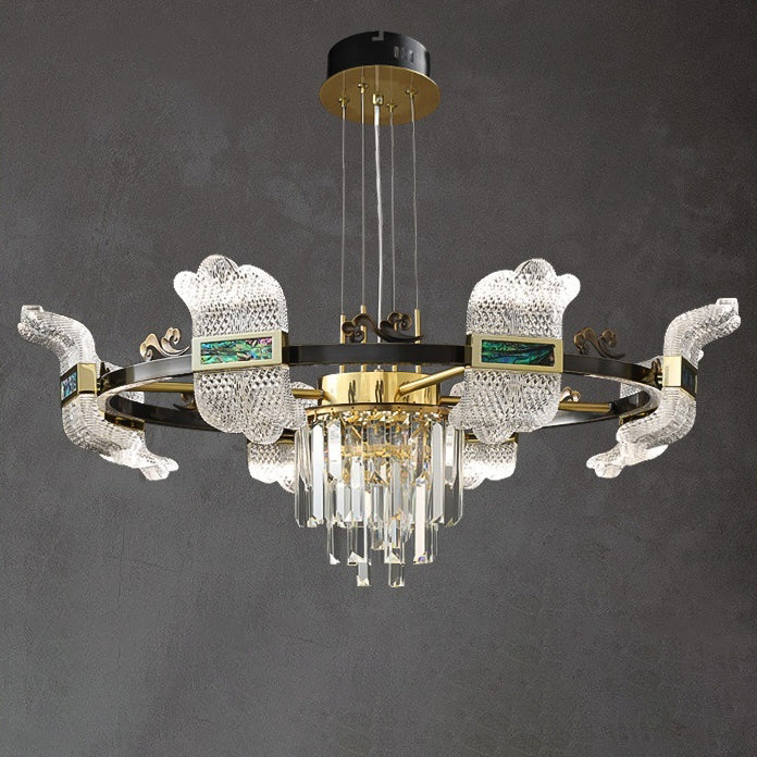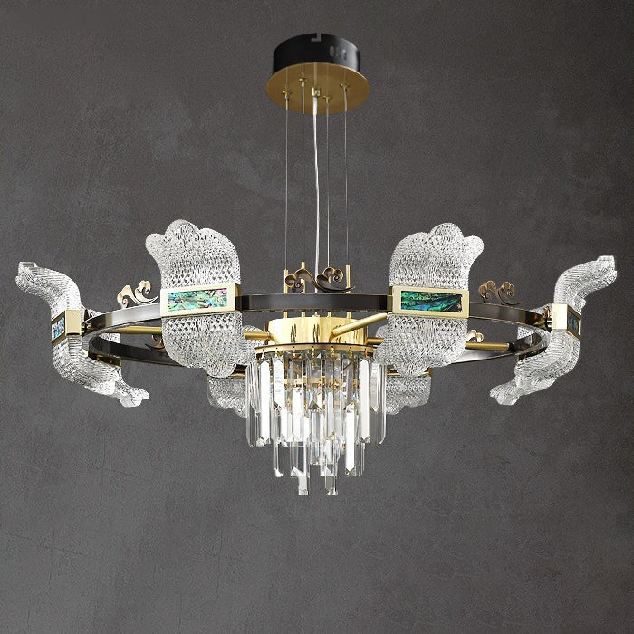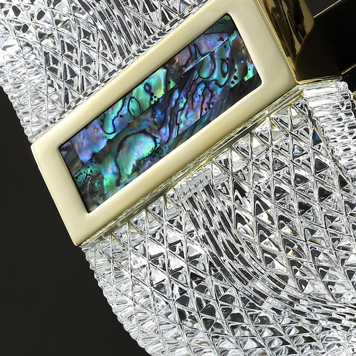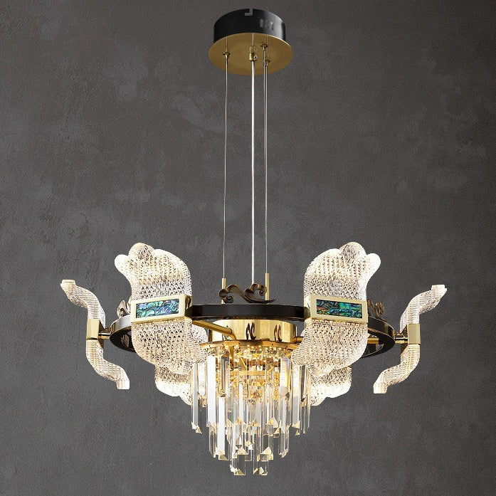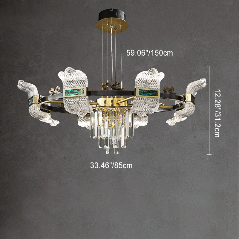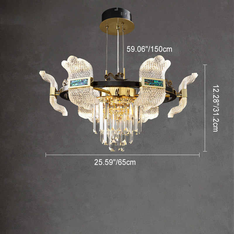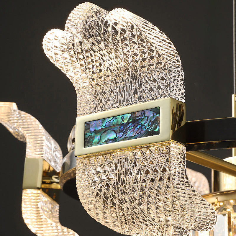 Modern Luxury Round Shell Sheets Copper Crystal LED Chandeliers For Dining Room