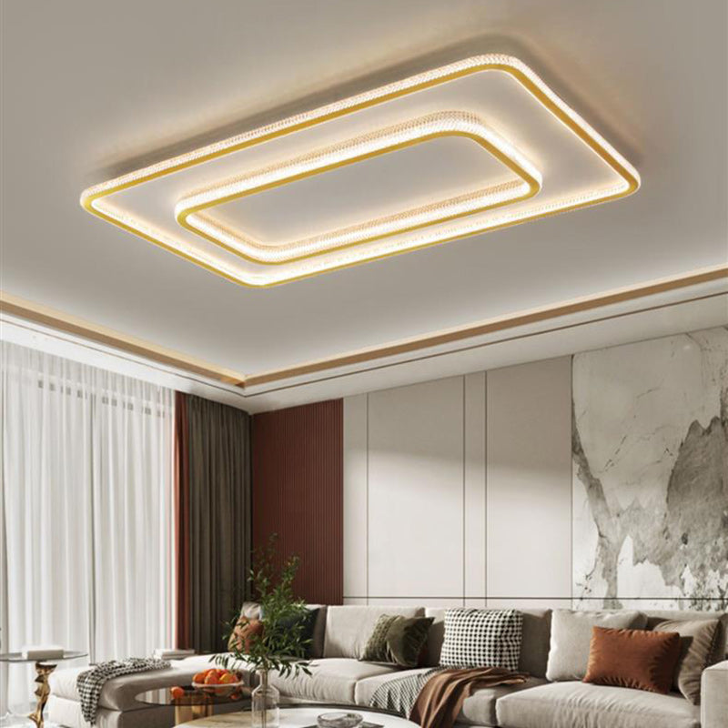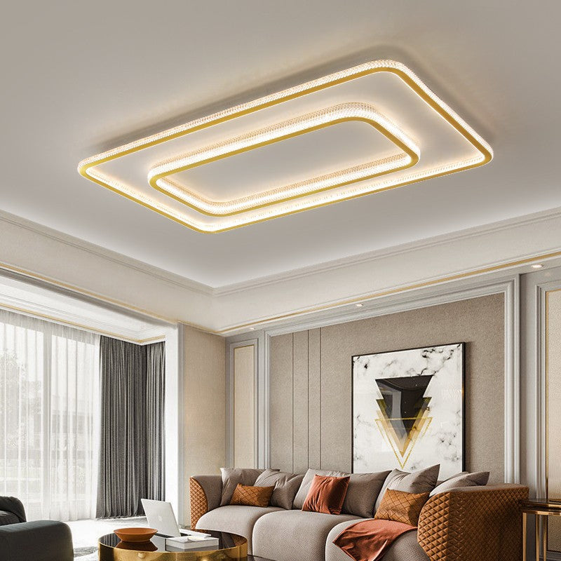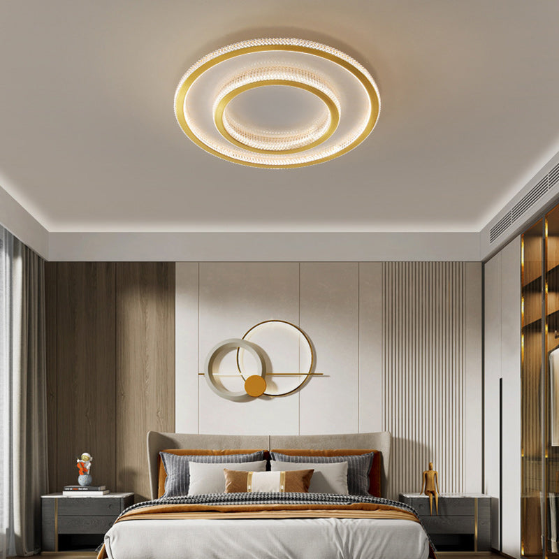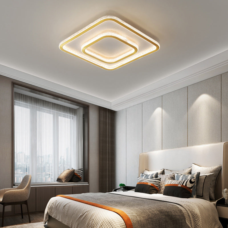Modern Luxury Round Square Rectangle Copper Acrylic LED Flush Mount Ceiling Light For Bedroom