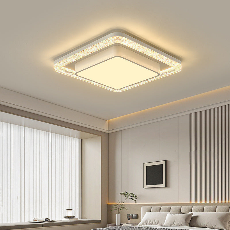 Modern Luxury Double Round Square Rectangular Iron Acrylic LED Flush Mount Ceiling Light For Living Room