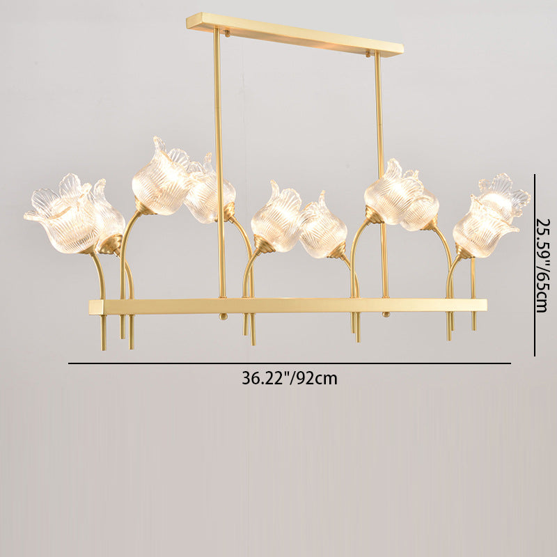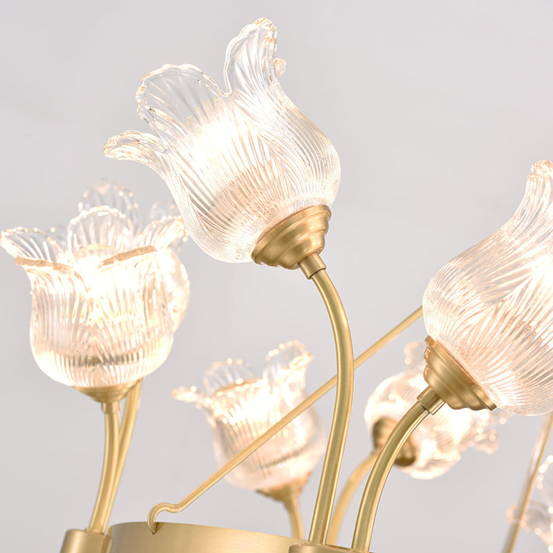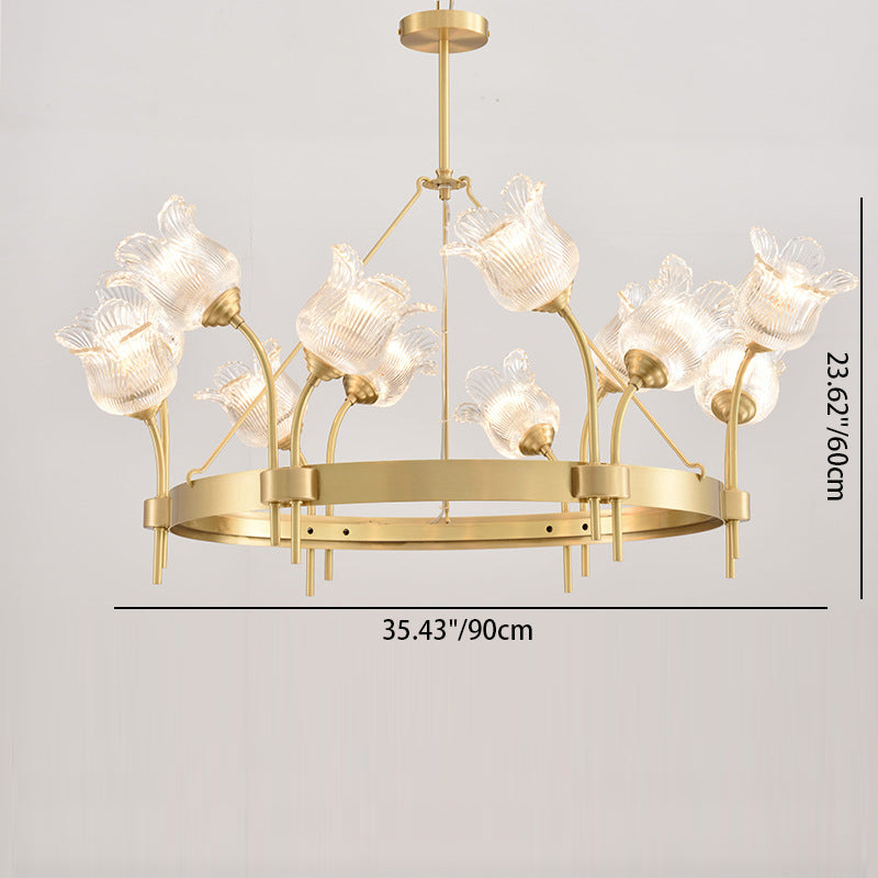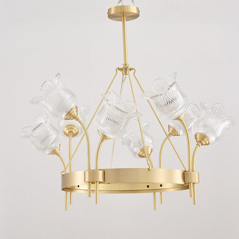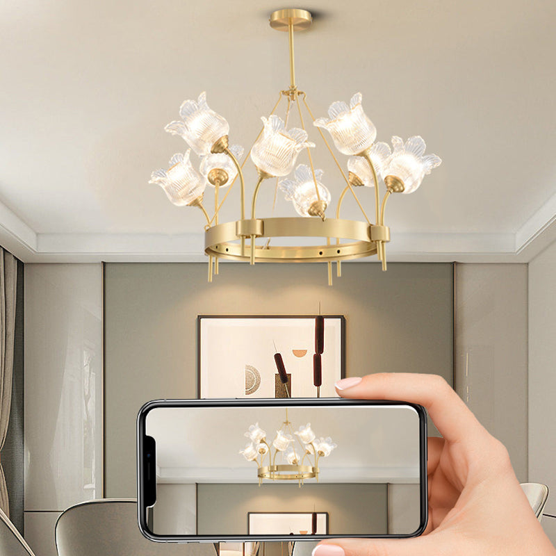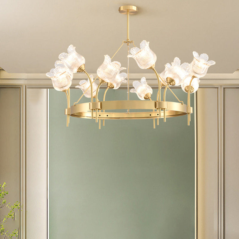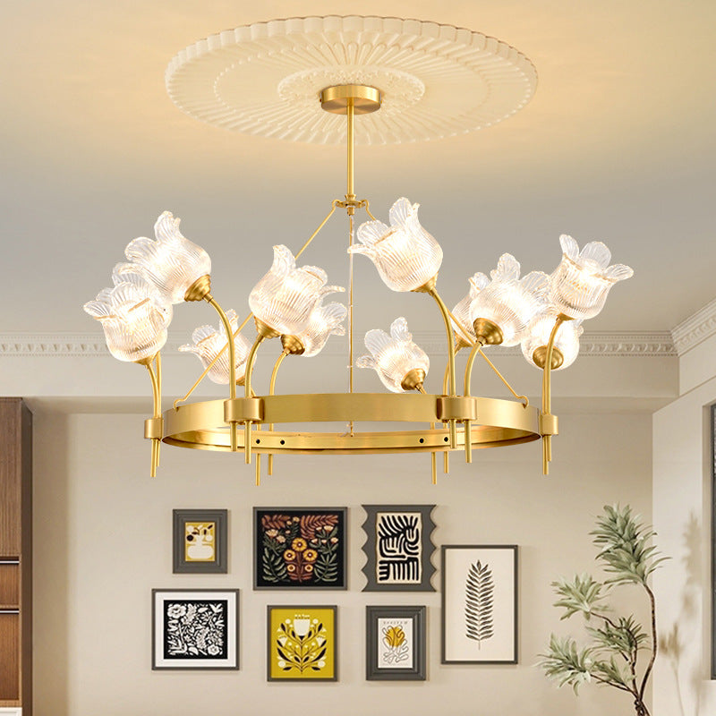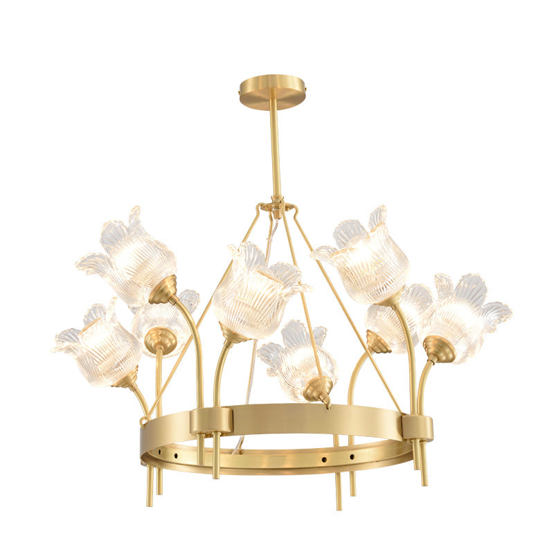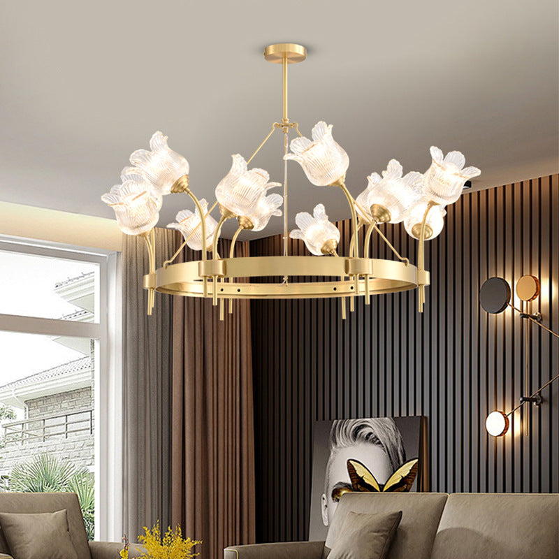 Modern Luxury Round Strip Floral Glass Copper 8/10/12 Light Chandelier For Living Room