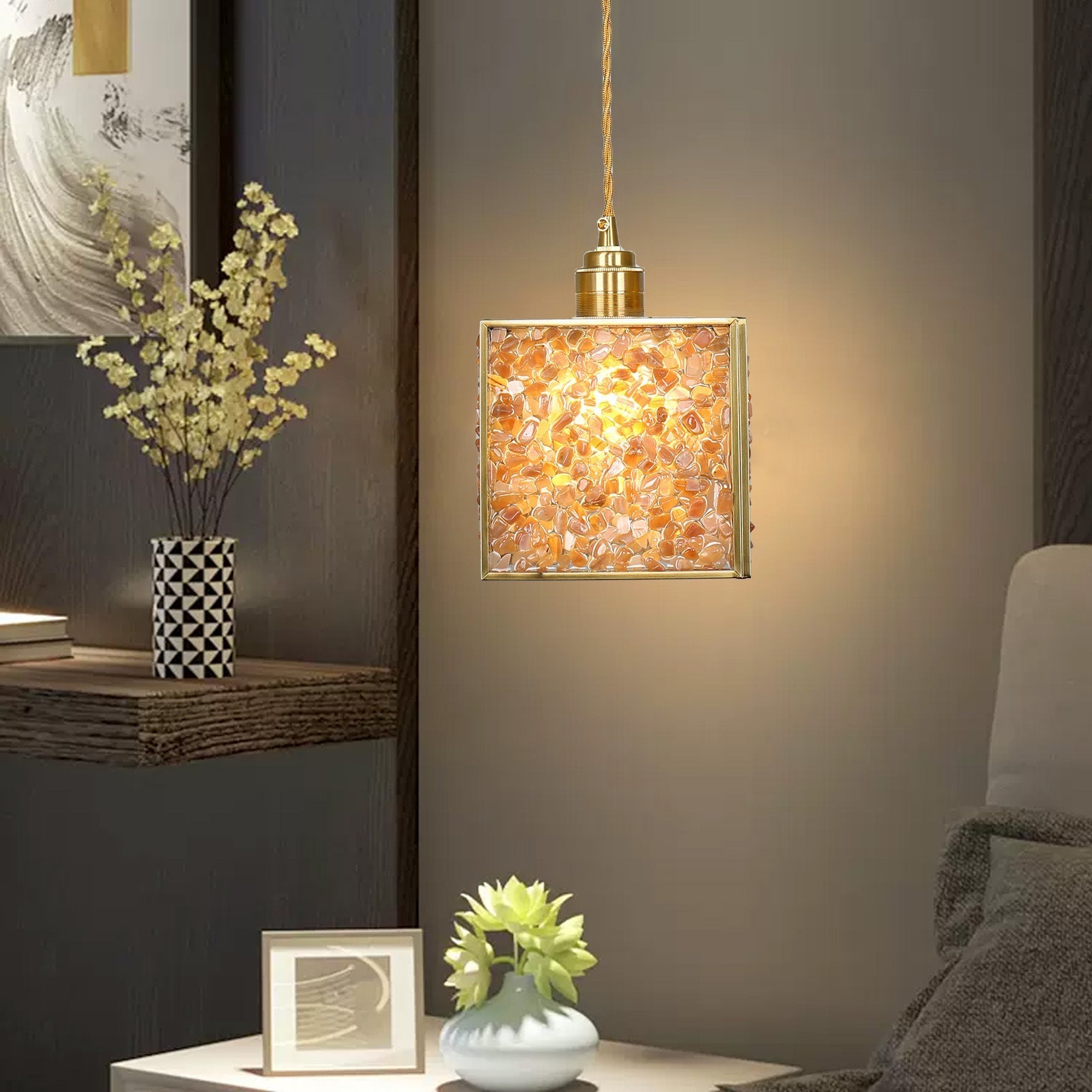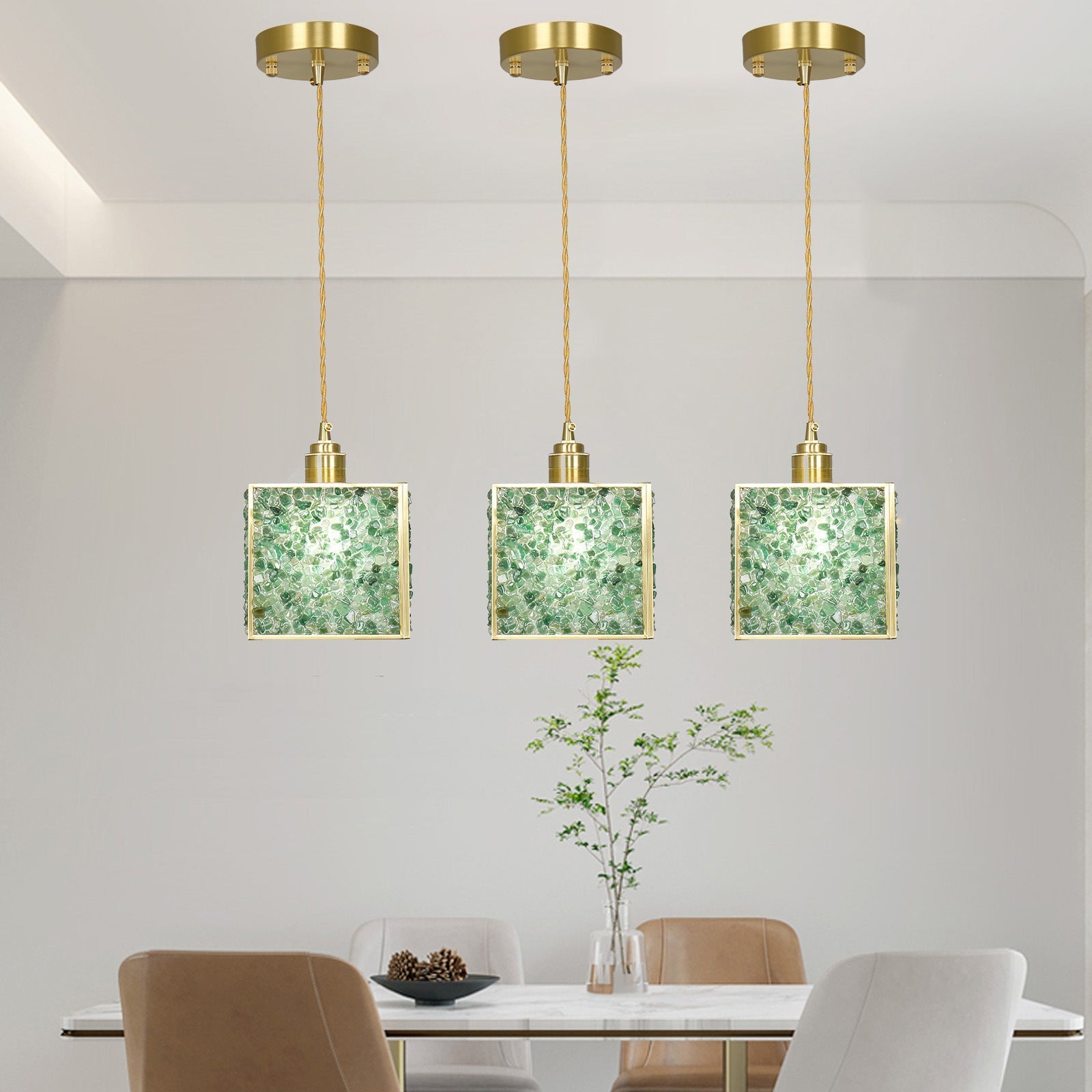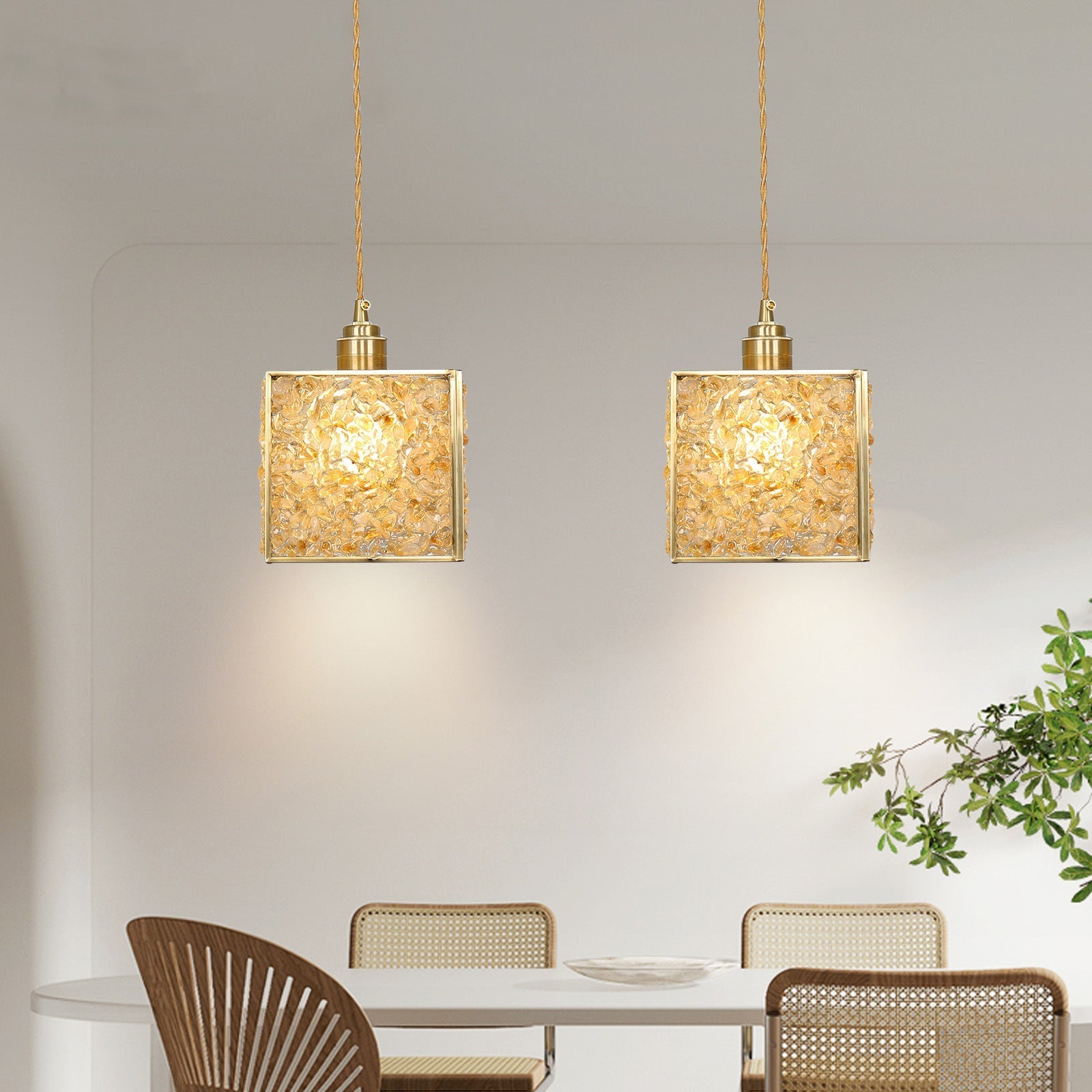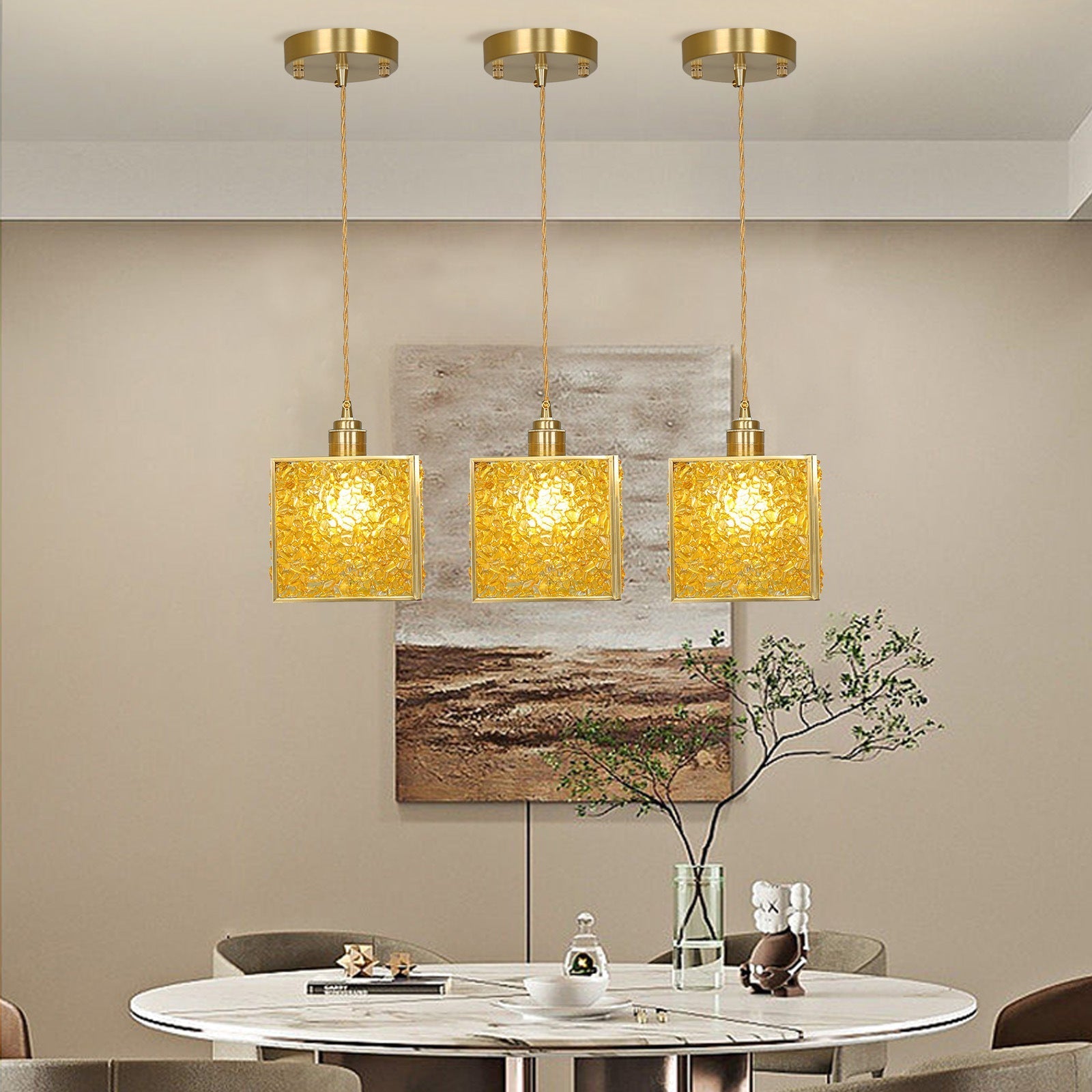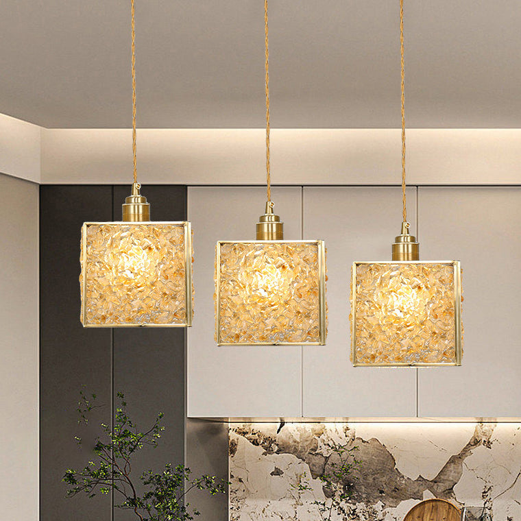 Modern Luxury Square Cube Gold Copper Frame Glass Shade 1-Light Pendant Light For Living Room