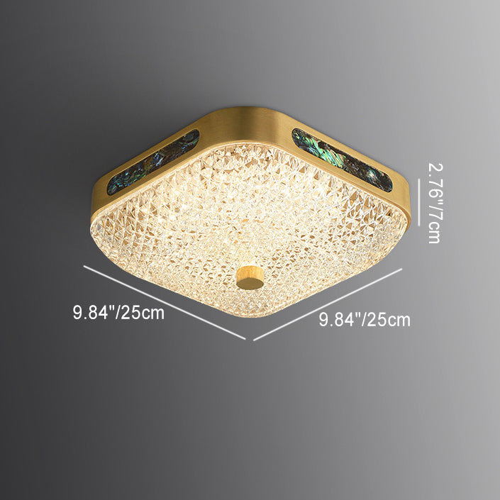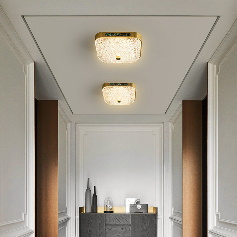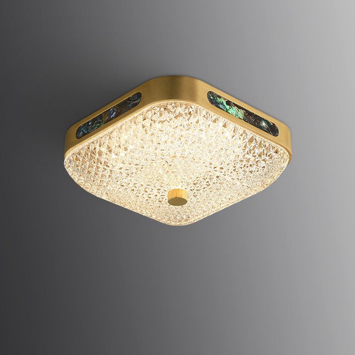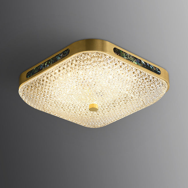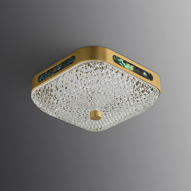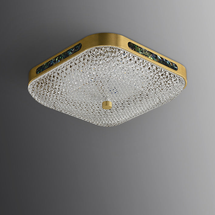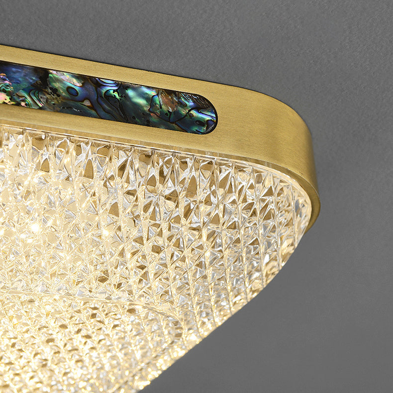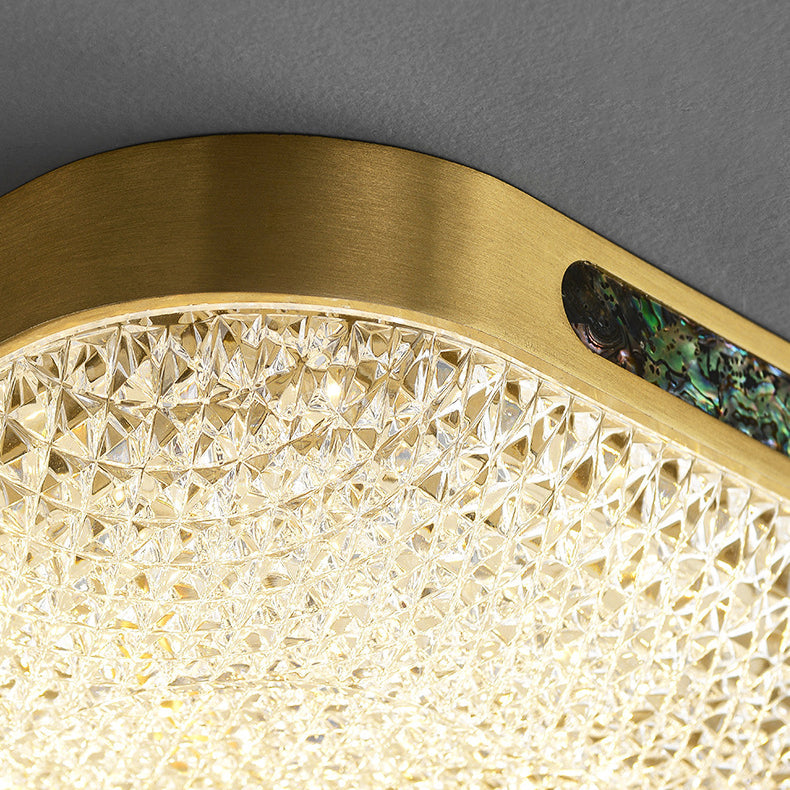 Modern Luxury Square Full Copper Acrylic Aluminum LED Flush Mount Ceiling Light For Living Room