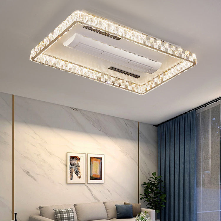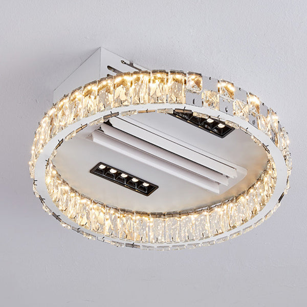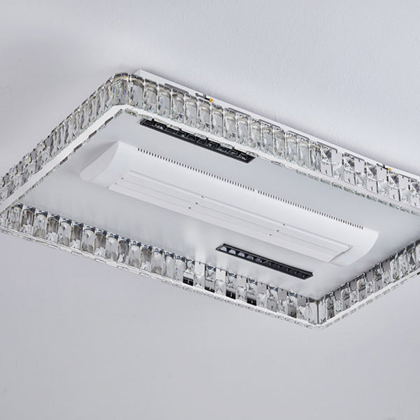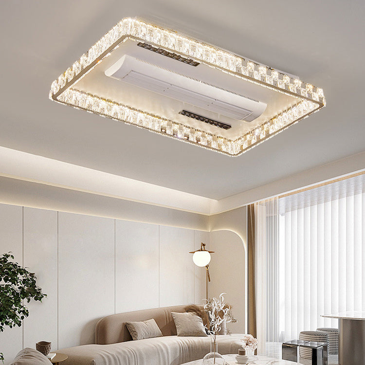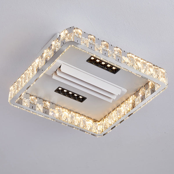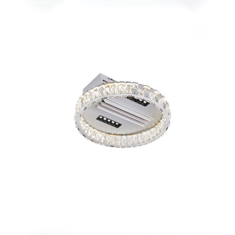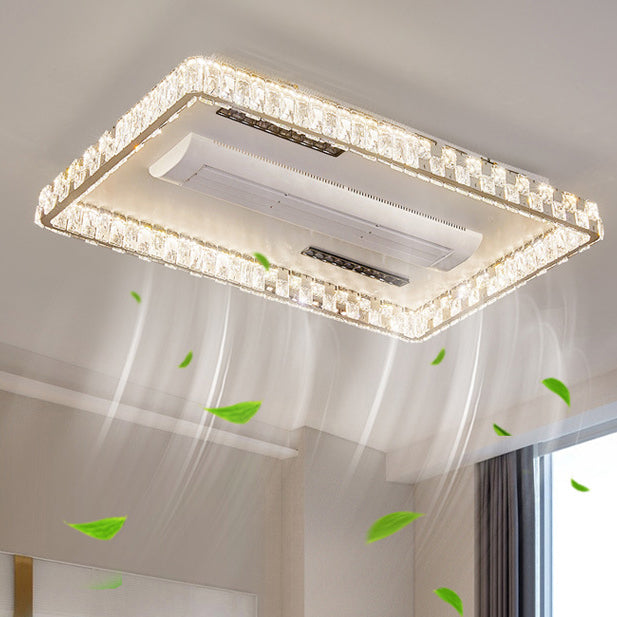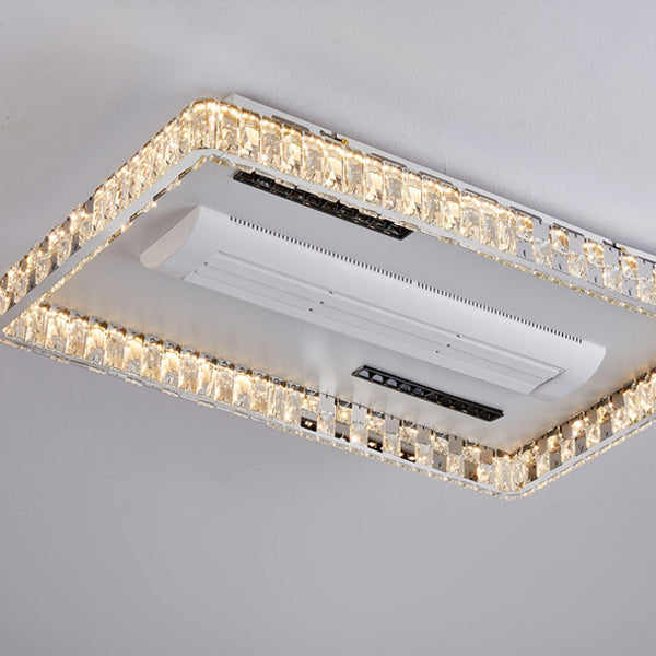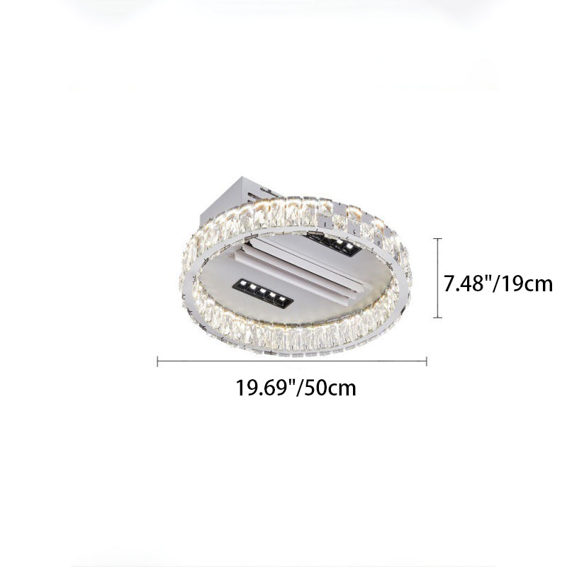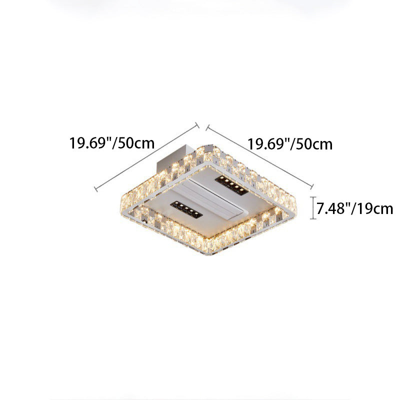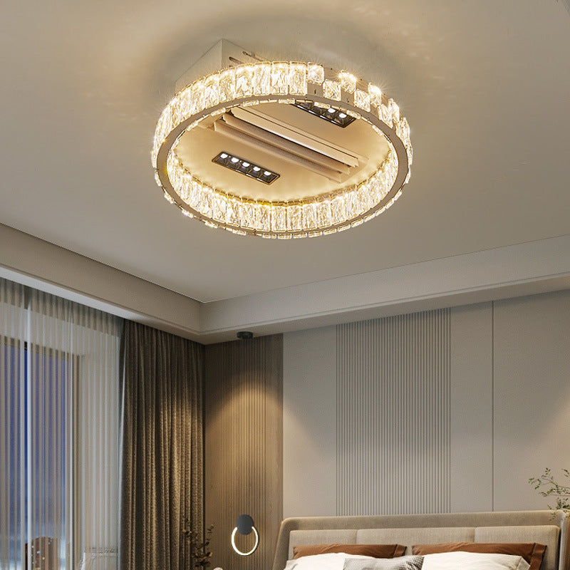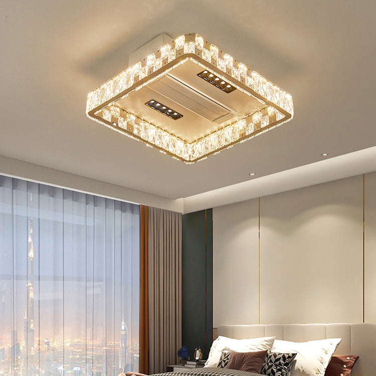 Modern Luxury Stainless Steel Acrylic Crystal Round Square Rectangular LED Flush Mount Ceiling Bladeless Fan Light For Bedroom