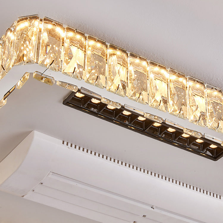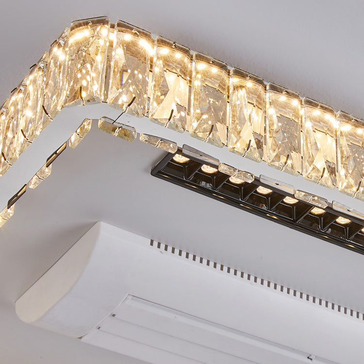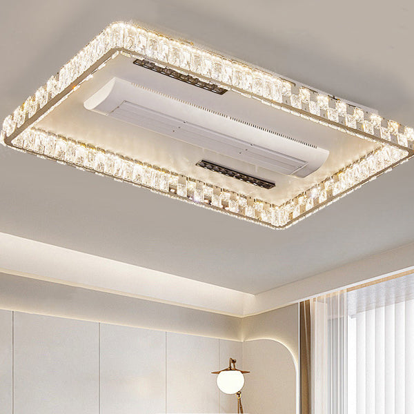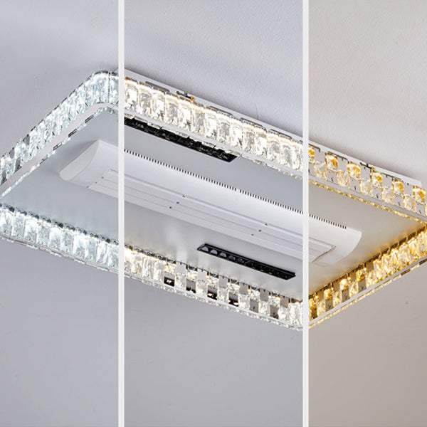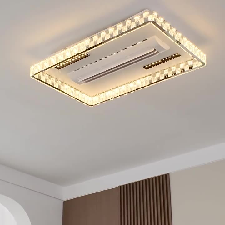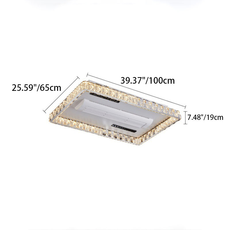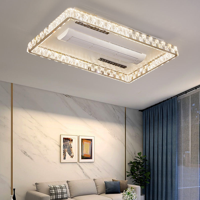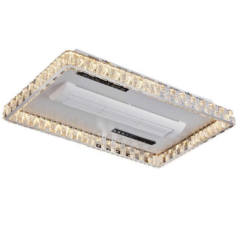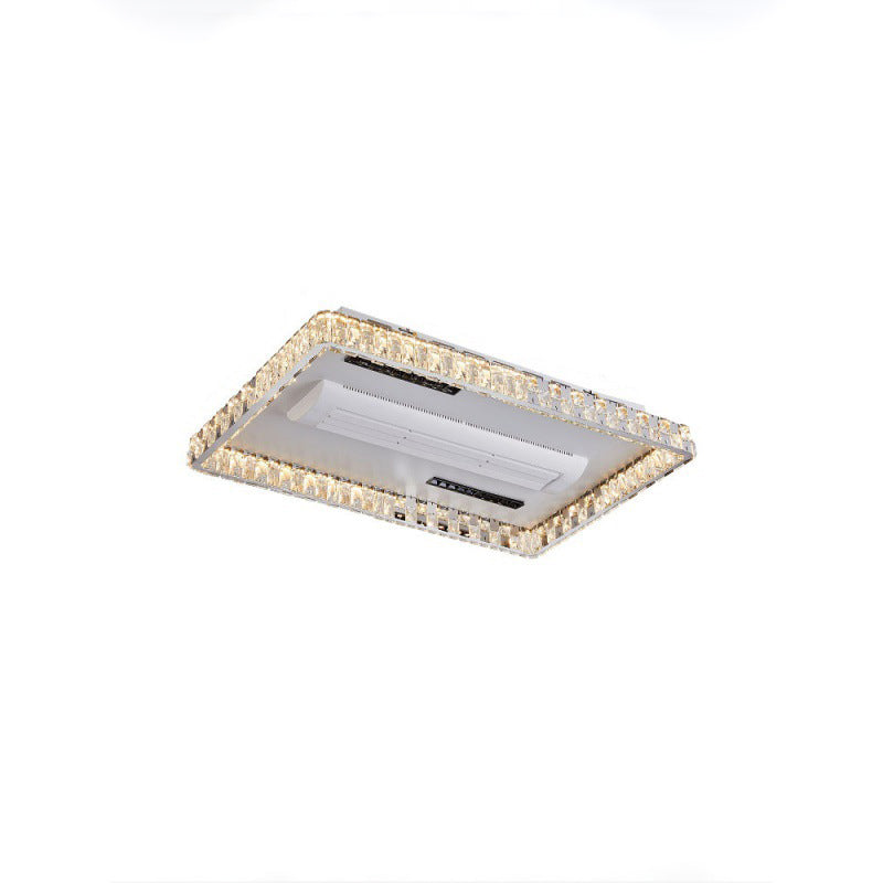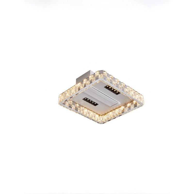 Modern Luxury Stainless Steel Acrylic Crystal Round Square Rectangular LED Flush Mount Ceiling Bladeless Fan Light For Bedroom