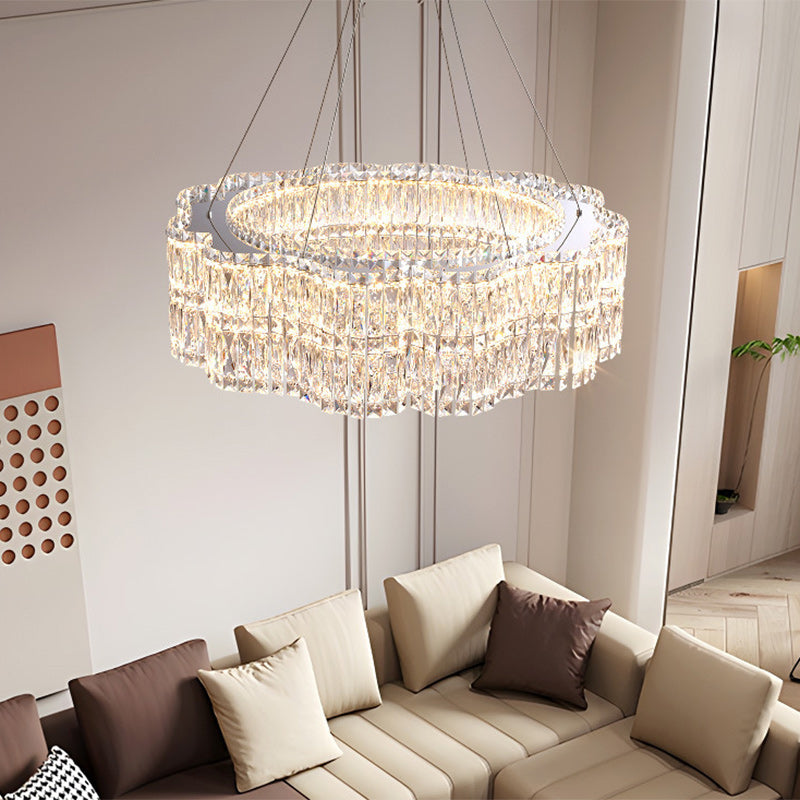 Modern Luxury Stainless Steel Crystal Round Flower LED Chandeliers For Living Room
