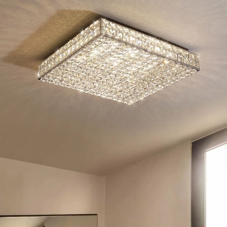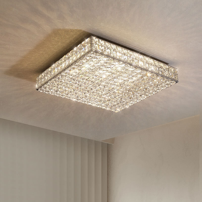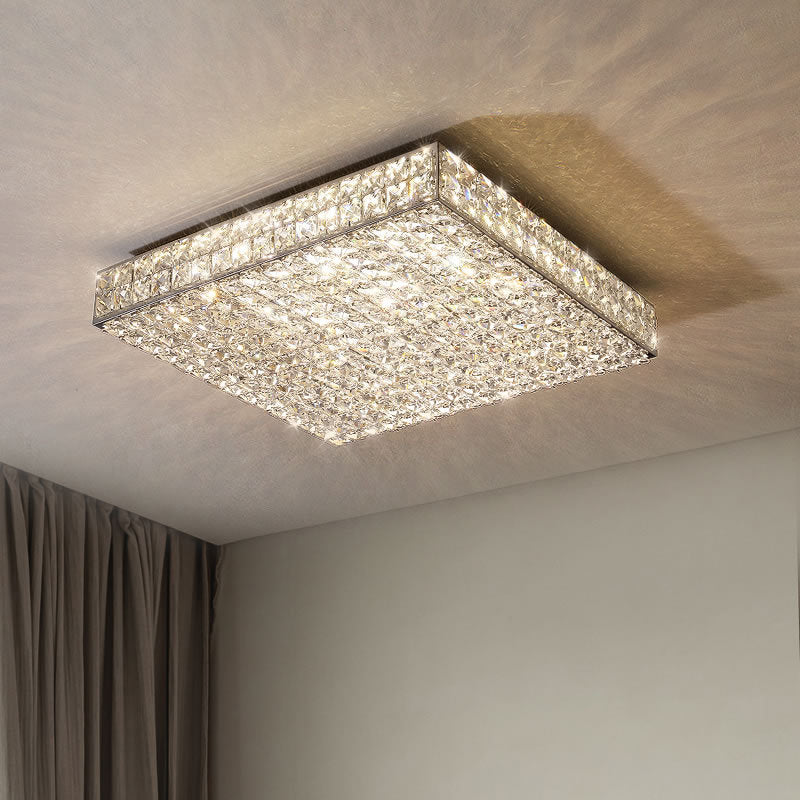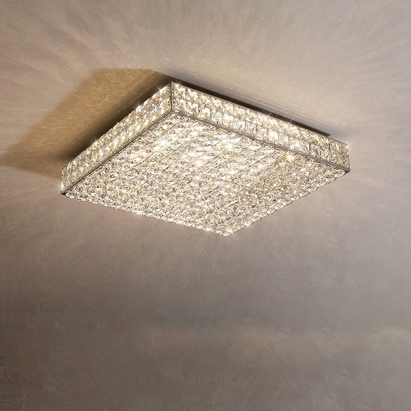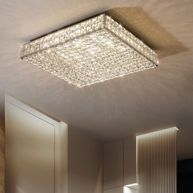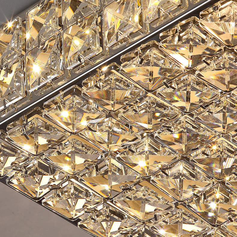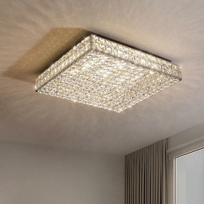 Modern Luxury Stainless Steel Crystal Square Rectangular Cube LED Flush Mount Ceiling Light For Living Room