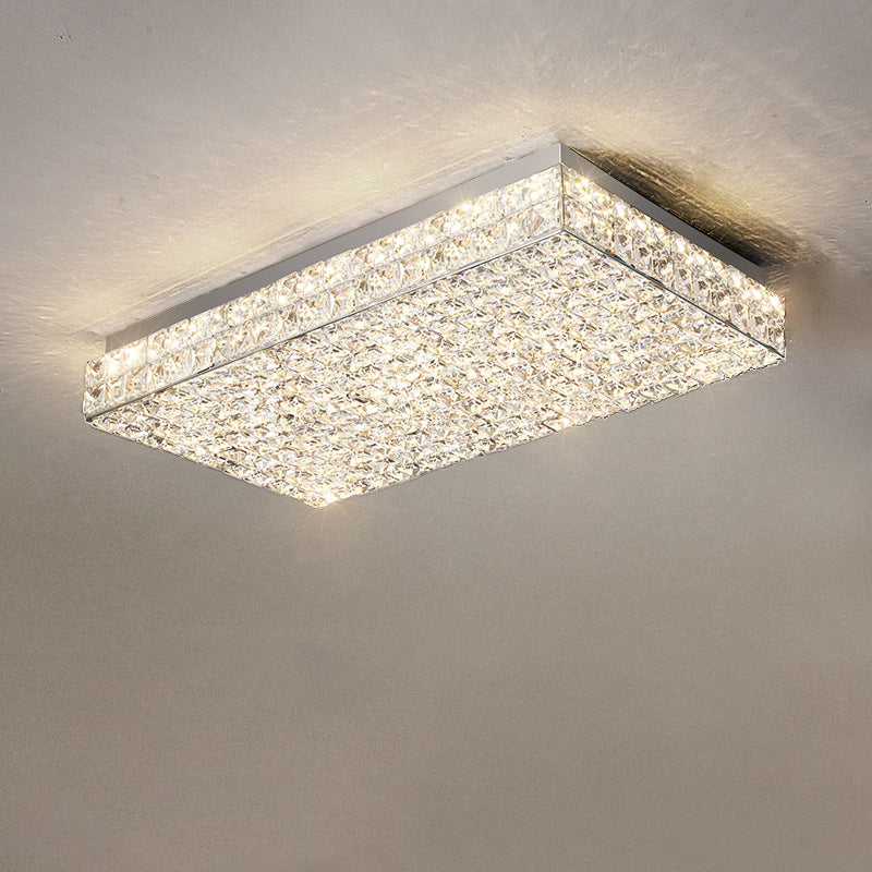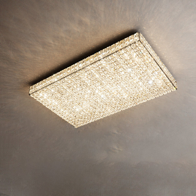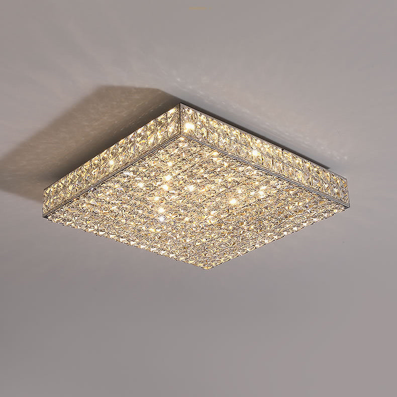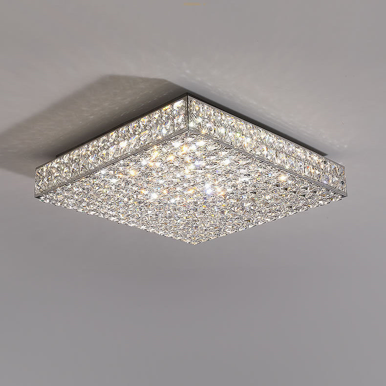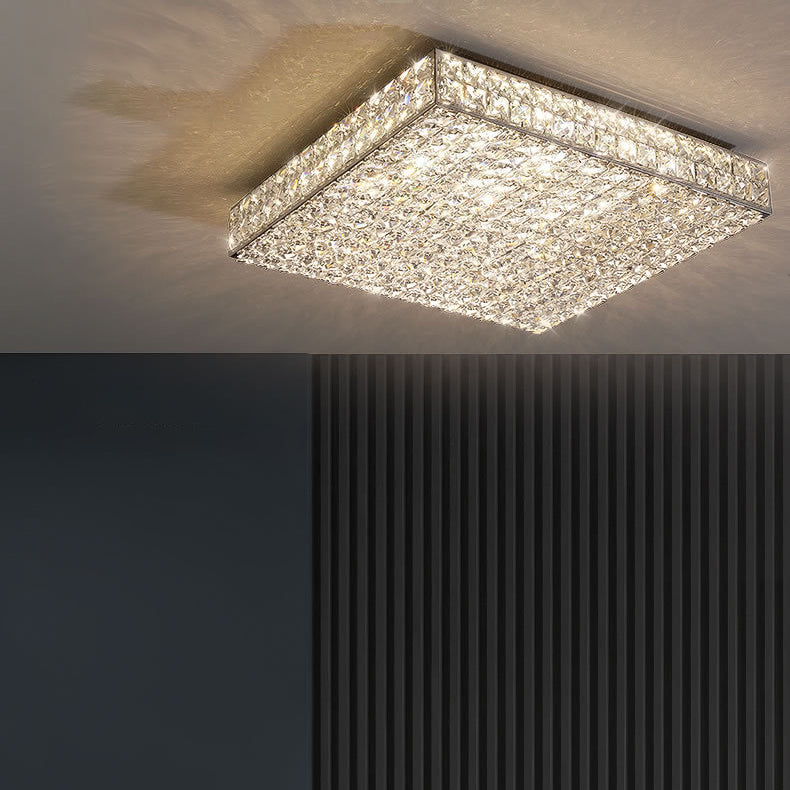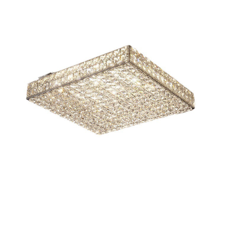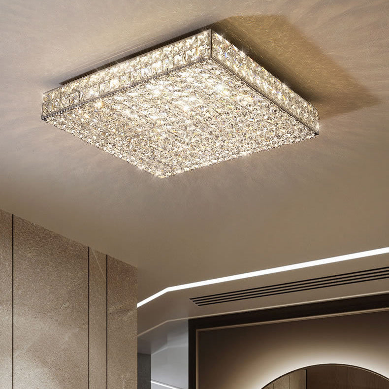 Modern Luxury Stainless Steel Crystal Square Rectangular Cube LED Flush Mount Ceiling Light For Living Room