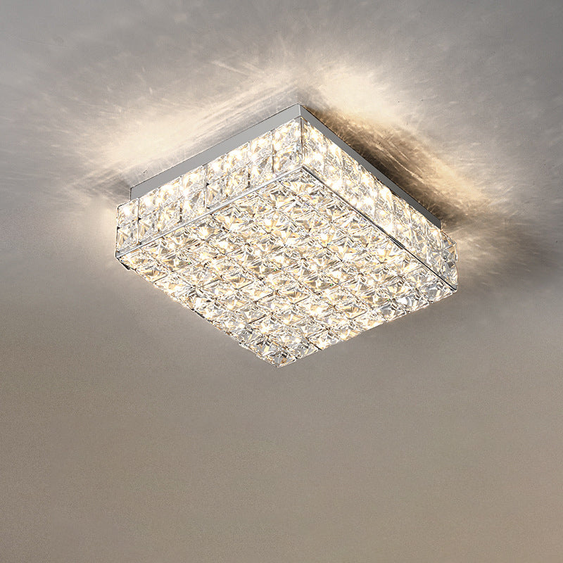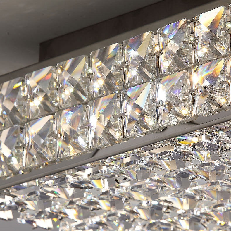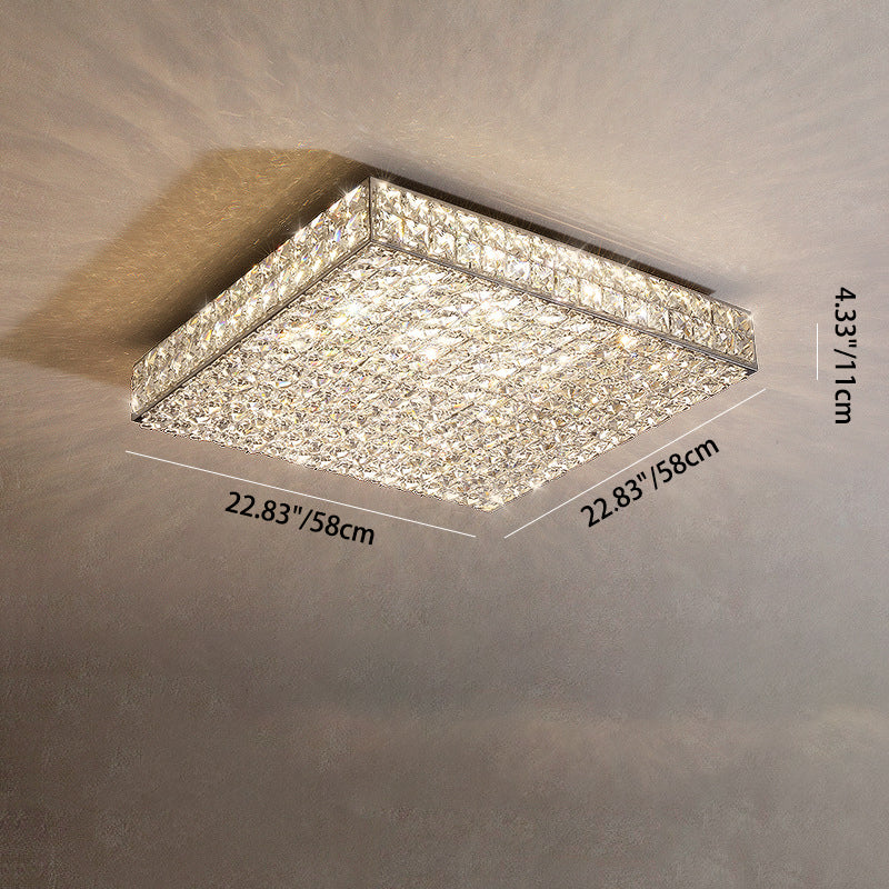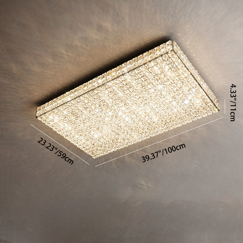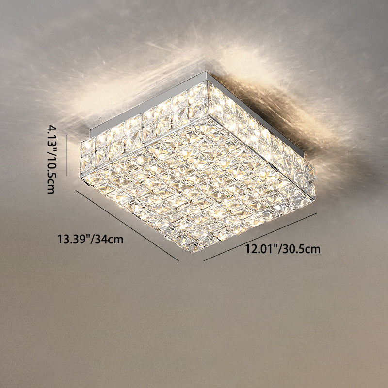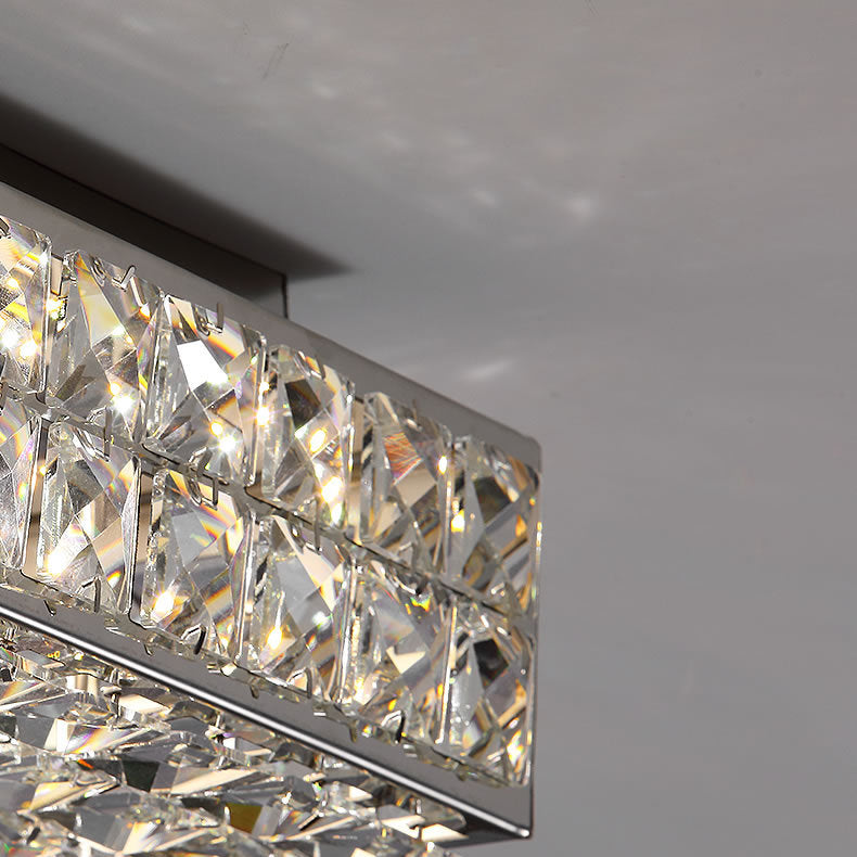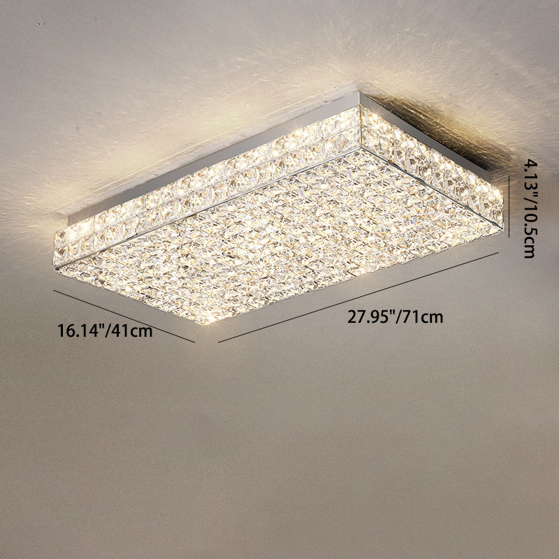 Modern Luxury Stainless Steel Crystal Square Rectangular Cube LED Flush Mount Ceiling Light For Living Room
