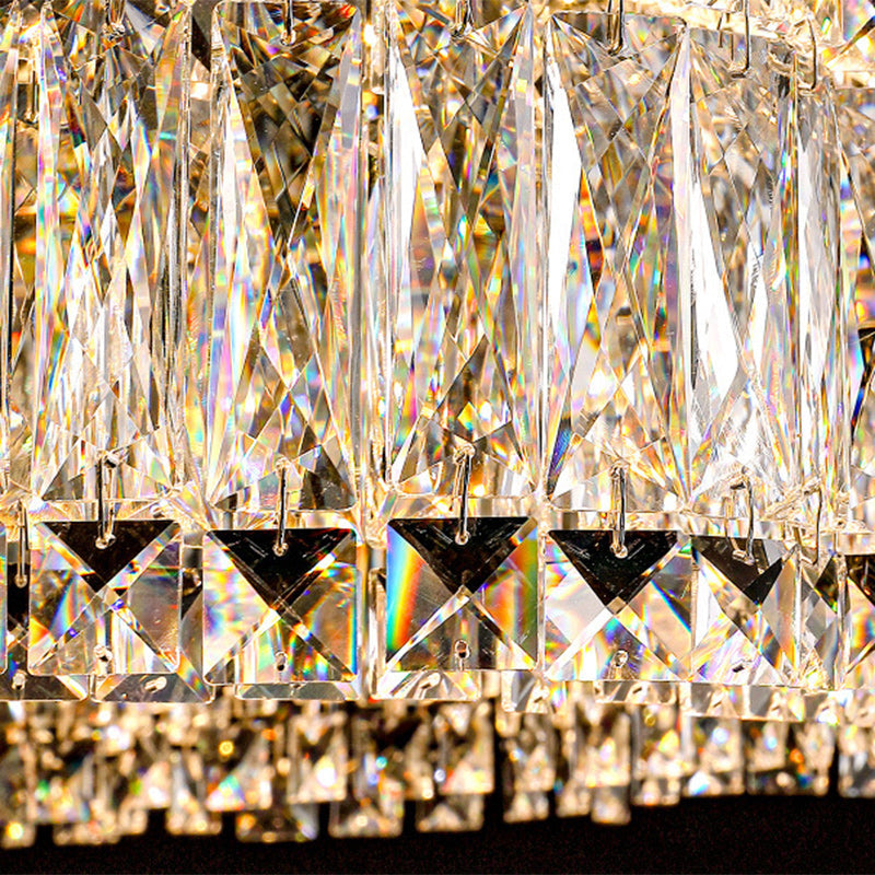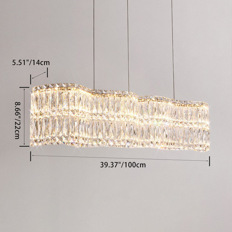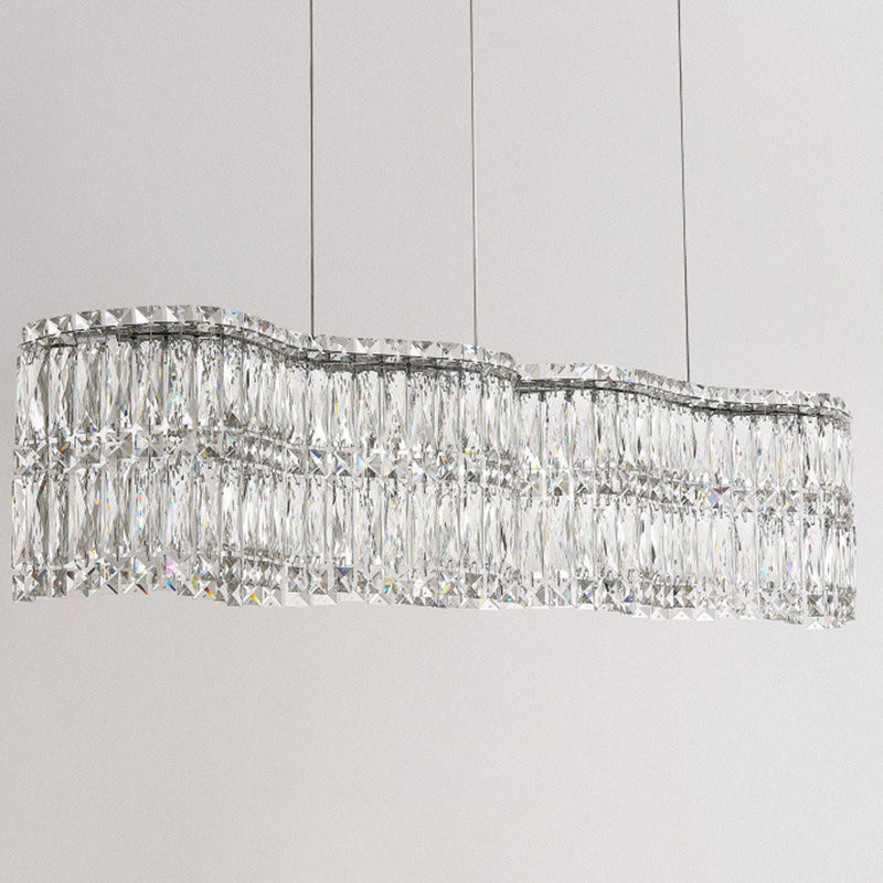 Modern Luxury Stainless Steel Crystal Wave Rectangular LED Chandeliers Island Light For Dining Room