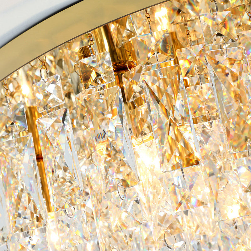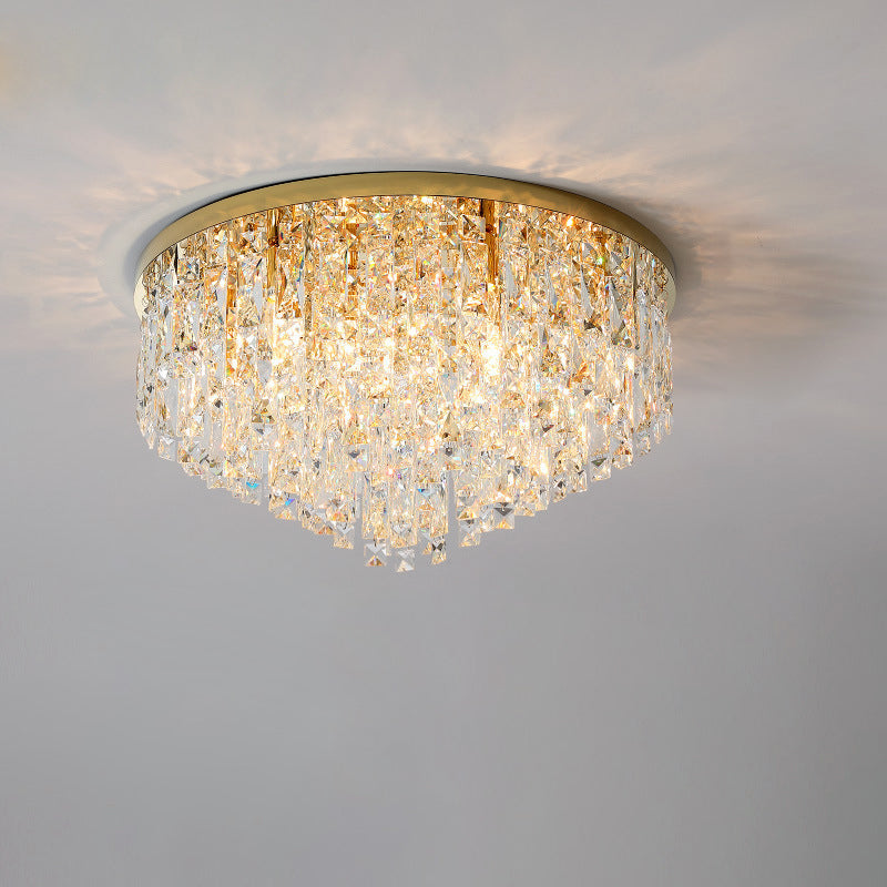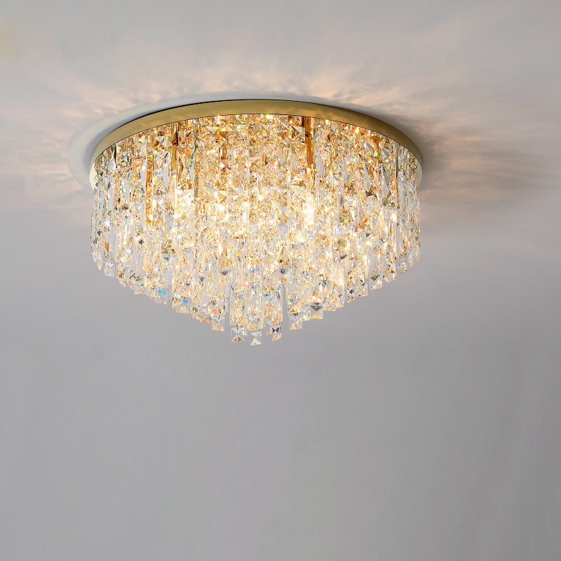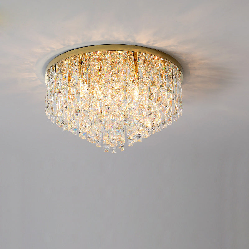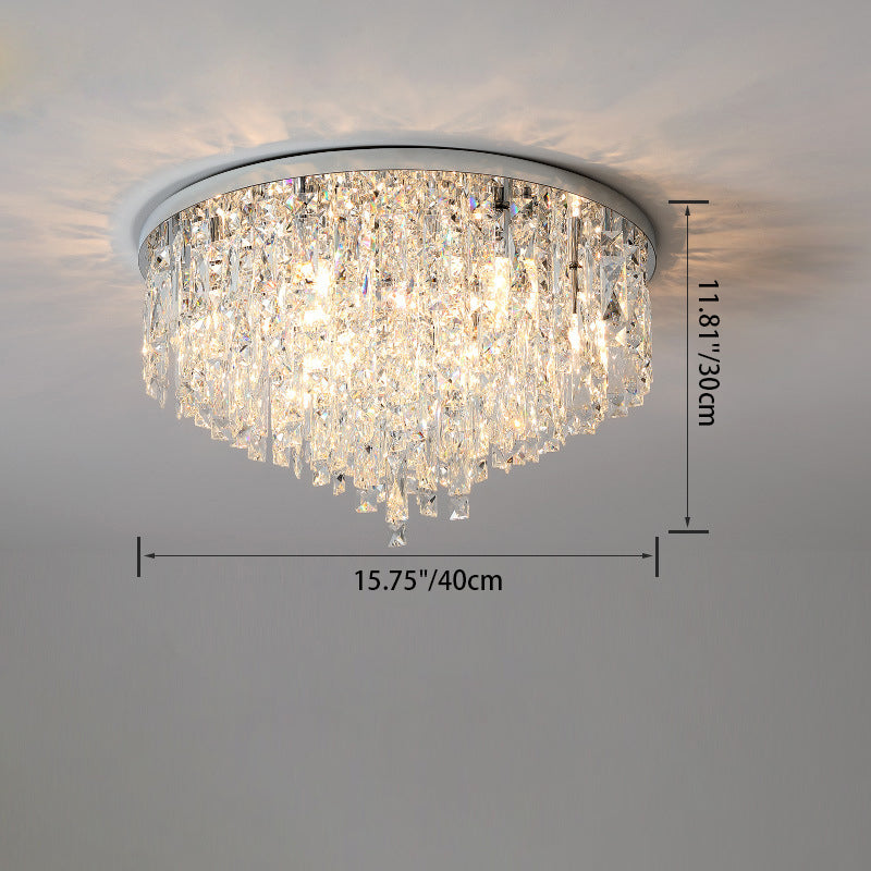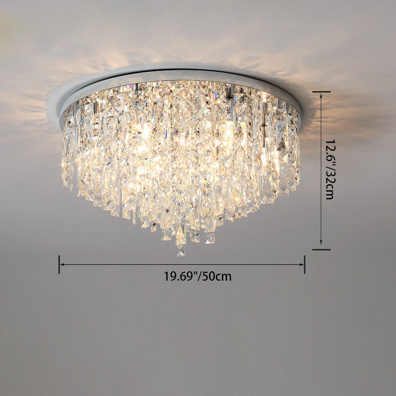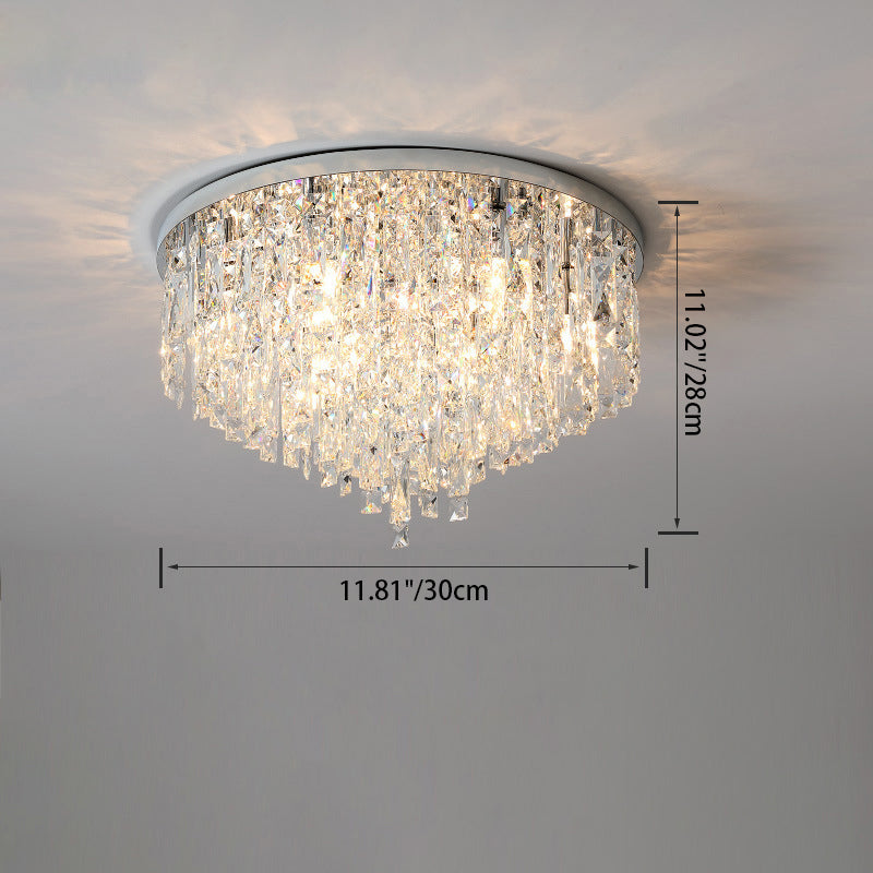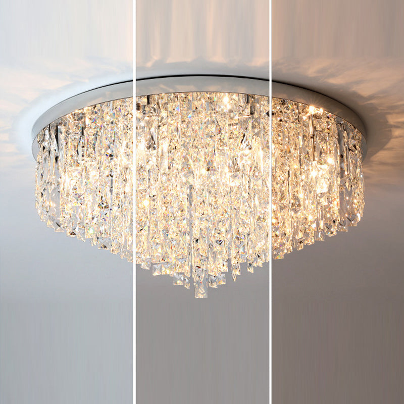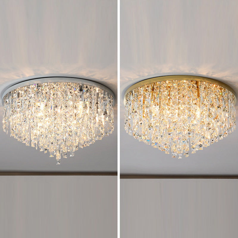 Modern Luxury Tassel Round Dome Stainless Steel Crystal 3/5/8 Light Flush Mount Ceiling Light For Bedroom