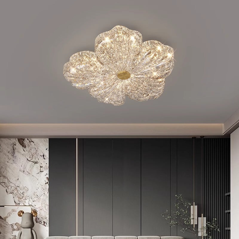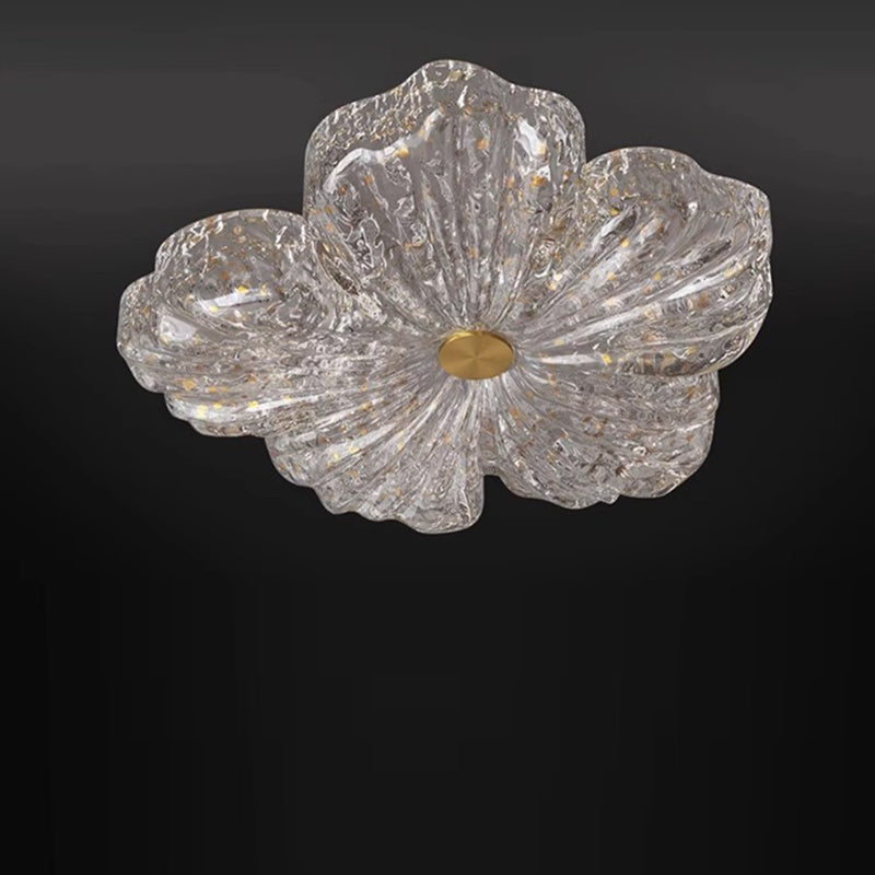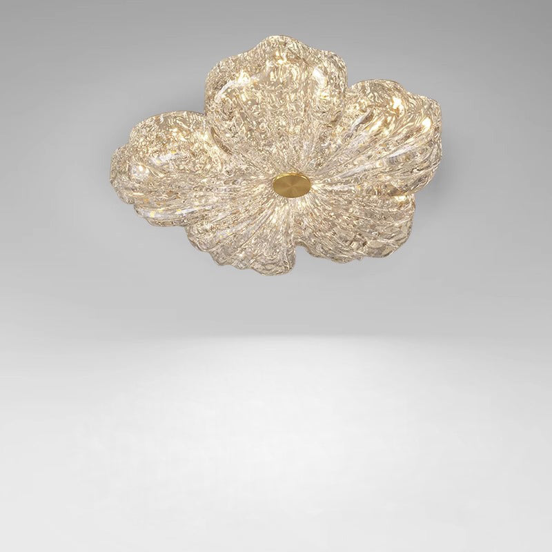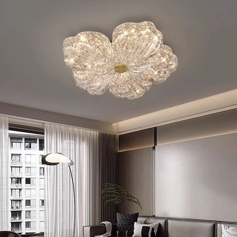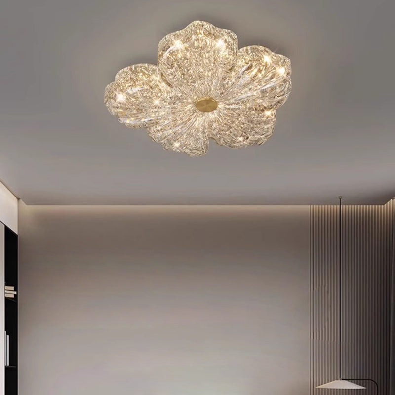 Modern Luxury Warm Flower Full Copper Resin Gold Foil LED Flush Mount Ceiling Light For Living Room