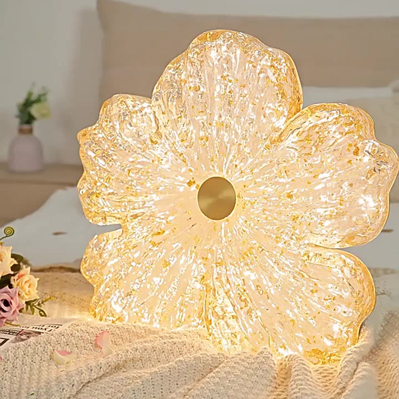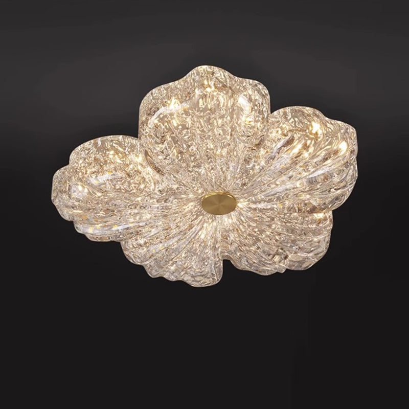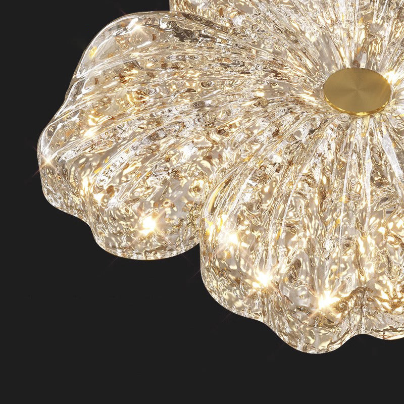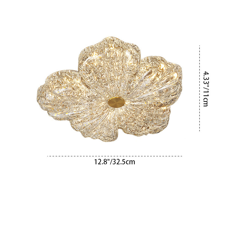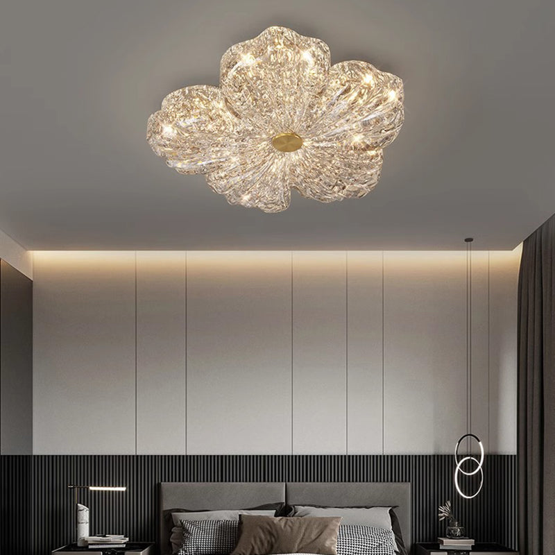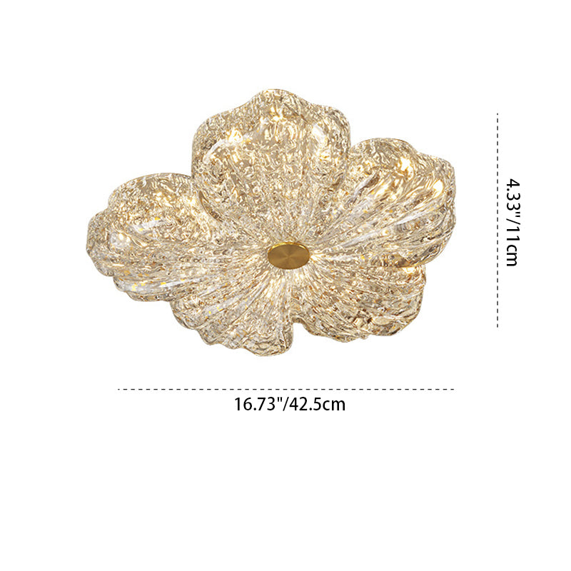 Modern Luxury Warm Flower Full Copper Resin Gold Foil LED Flush Mount Ceiling Light For Living Room