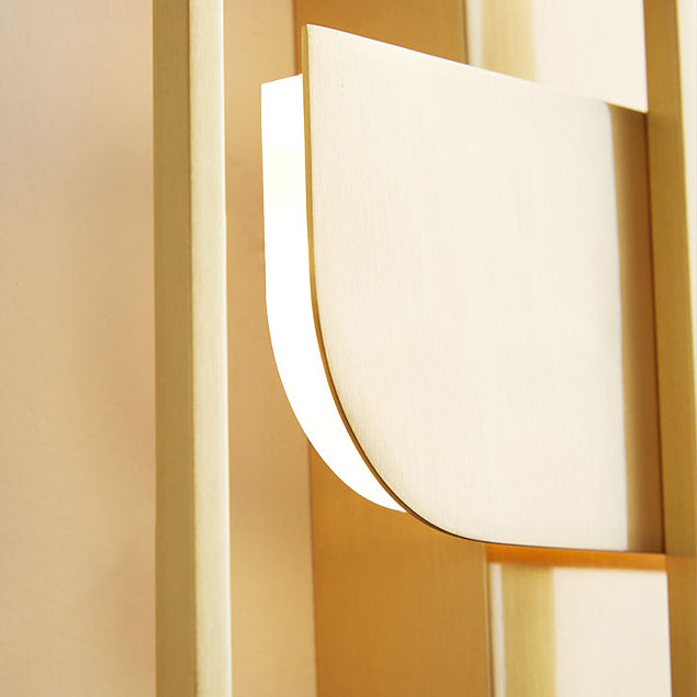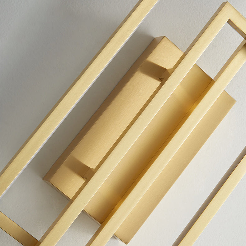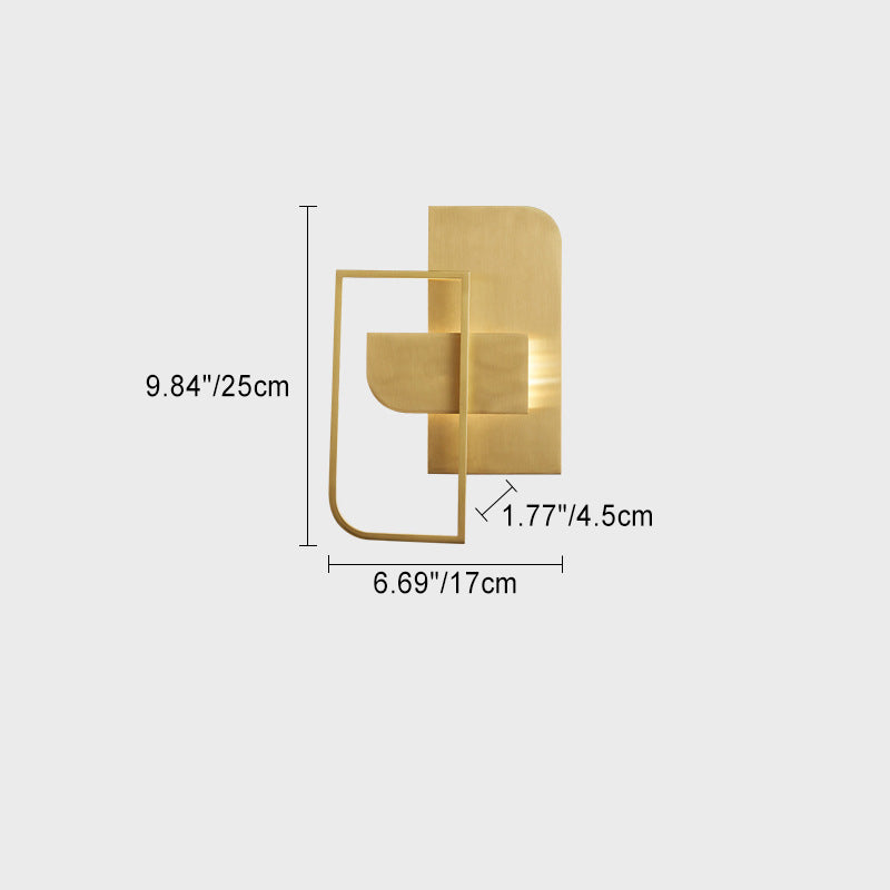 Modern Mid-century All Copper Rectangular Geometric LED Wall Sconce Lamp For Bedside