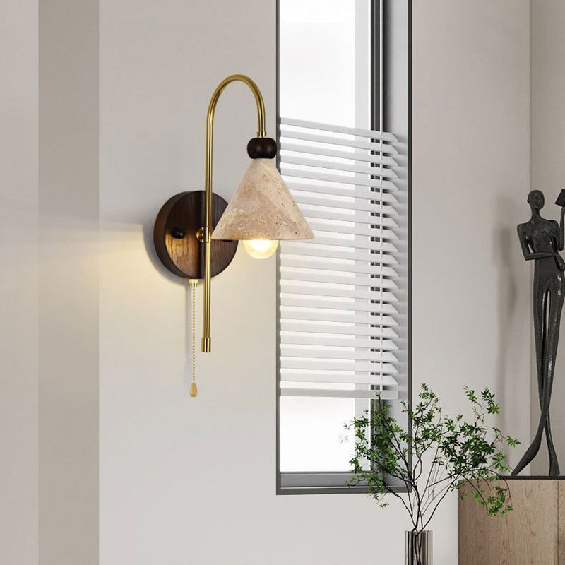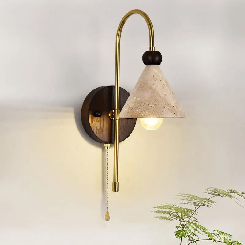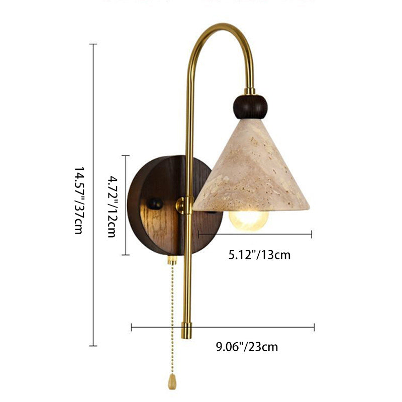 Modern Mid-Century Cone Shade Yellow Travertine Solid Wood Iron 1-Light Wall Sconce Lamp For Bedroom
