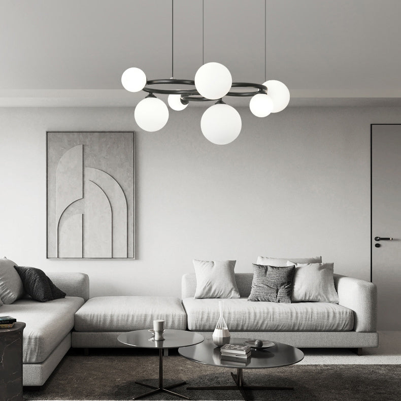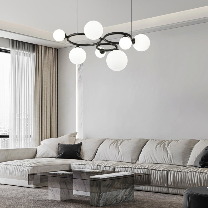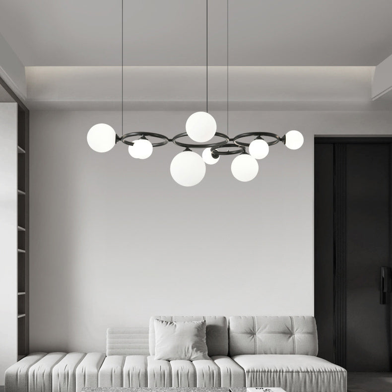 Modern Mid-century Copper Round Frame Glass Magic Bean 5/7/9-Light Molecular Light Chandelier For Living Room