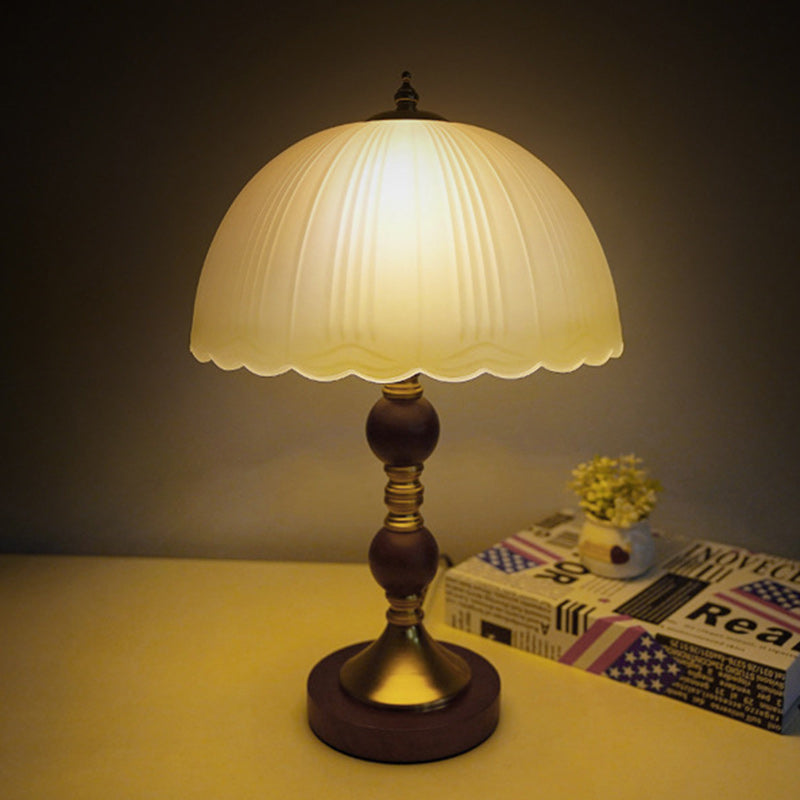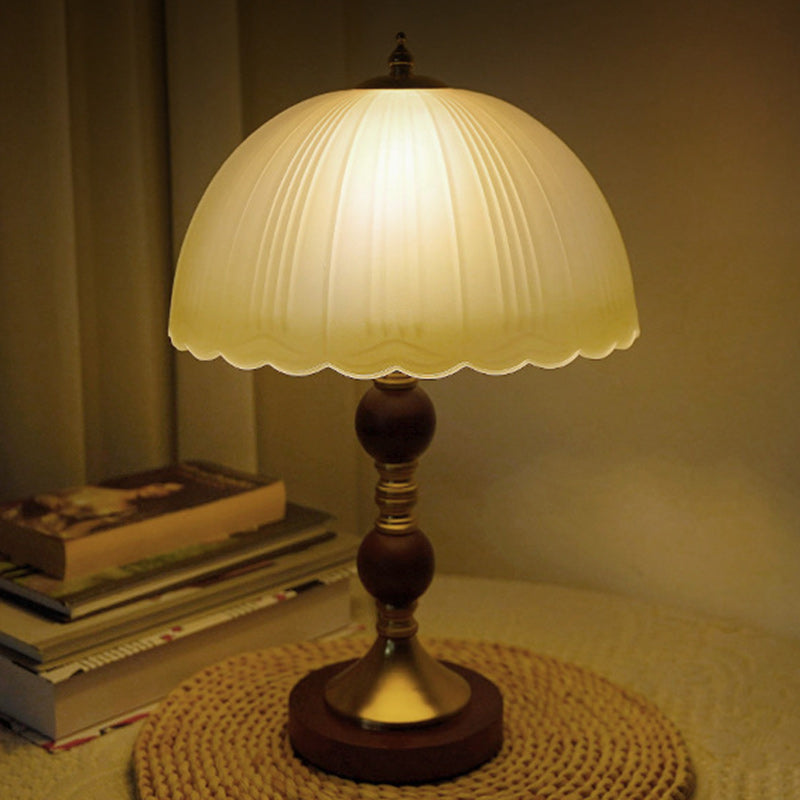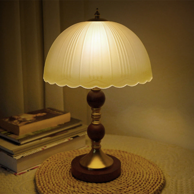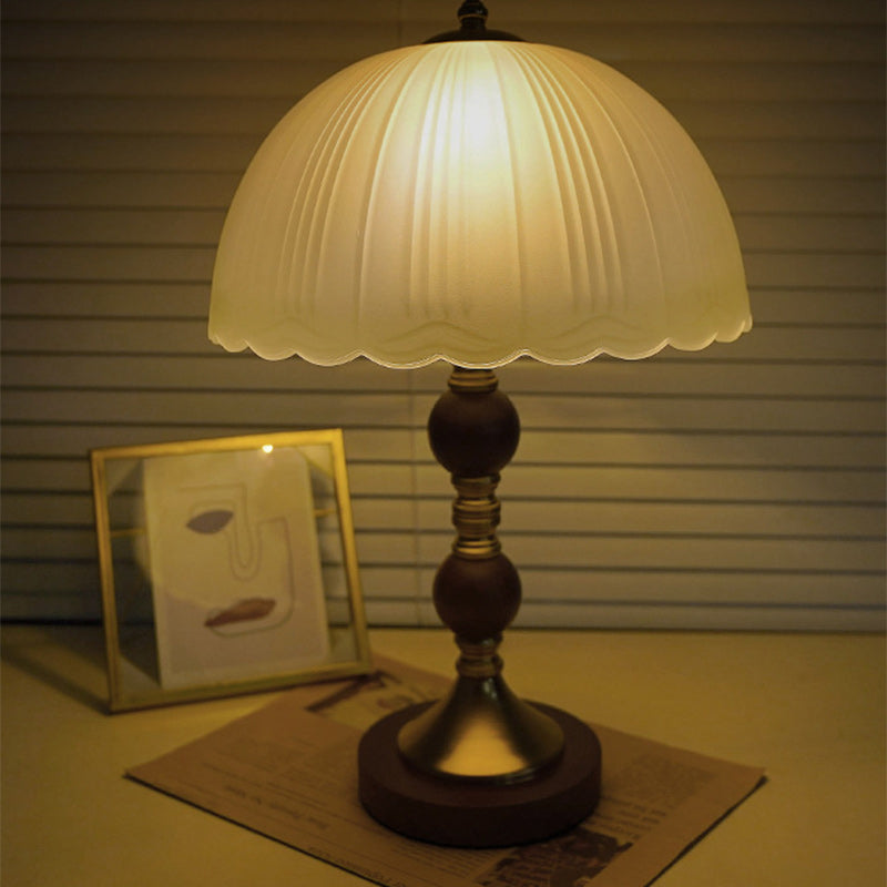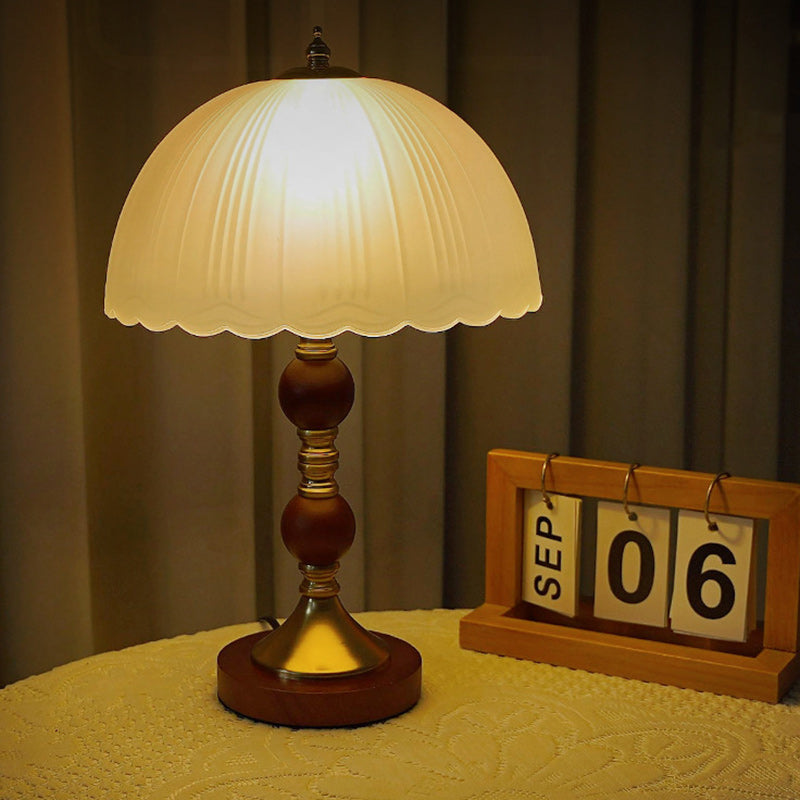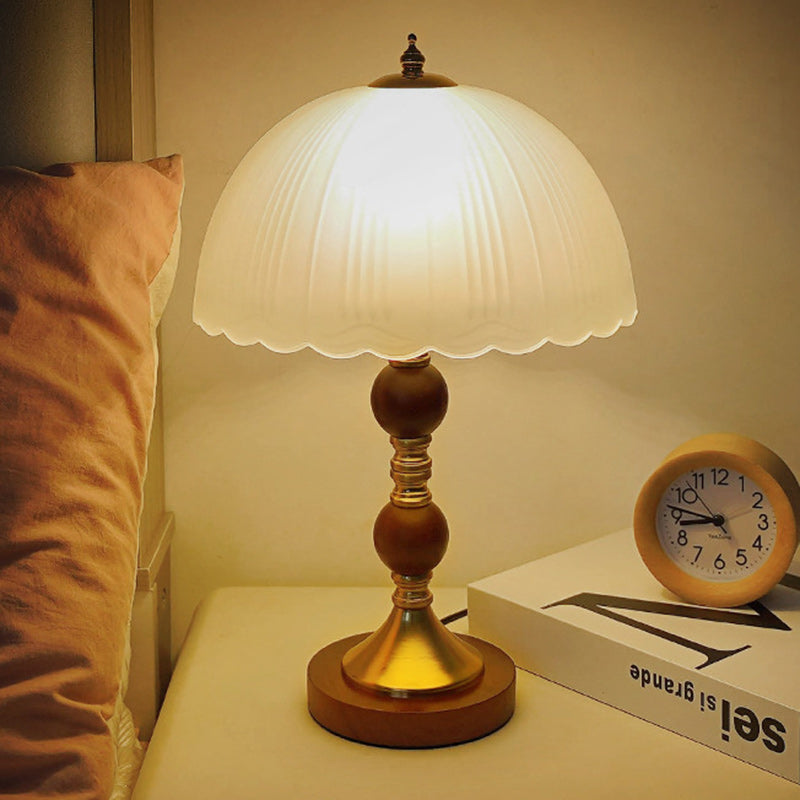 Modern Mid-Century Dome Glass Shade Rubberwood Iron Base 1-Light Table Lamp For Bedroom