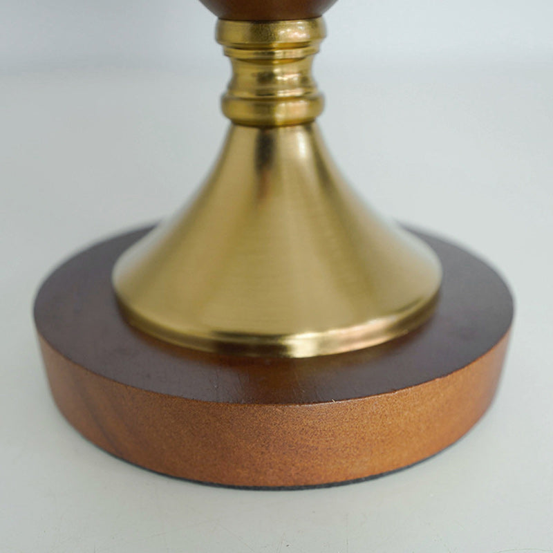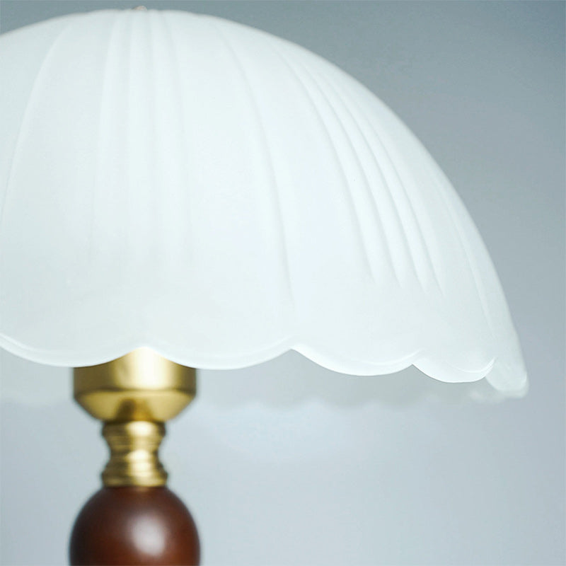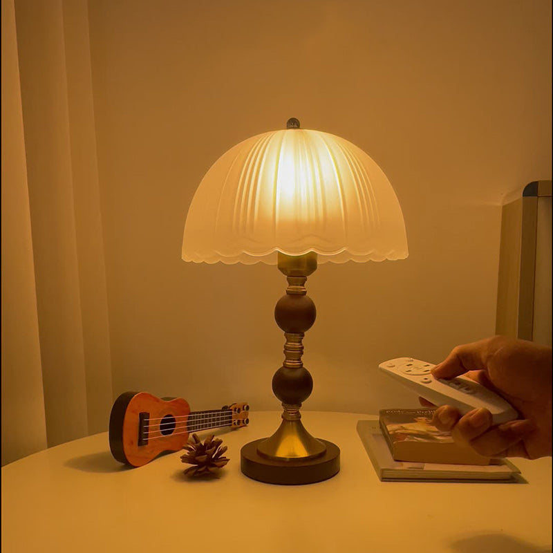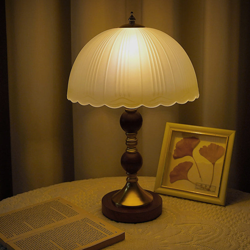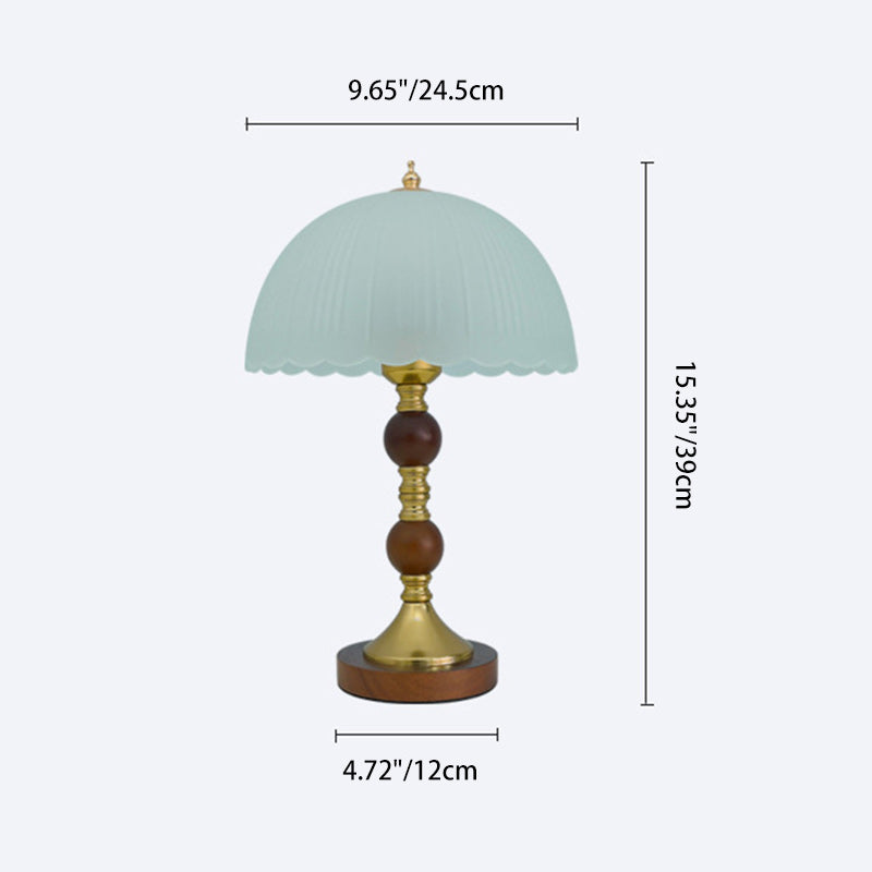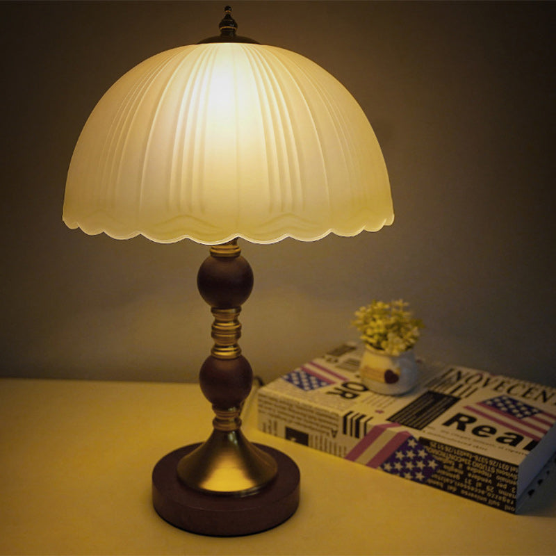 Modern Mid-Century Dome Glass Shade Rubberwood Iron Base 1-Light Table Lamp For Bedroom