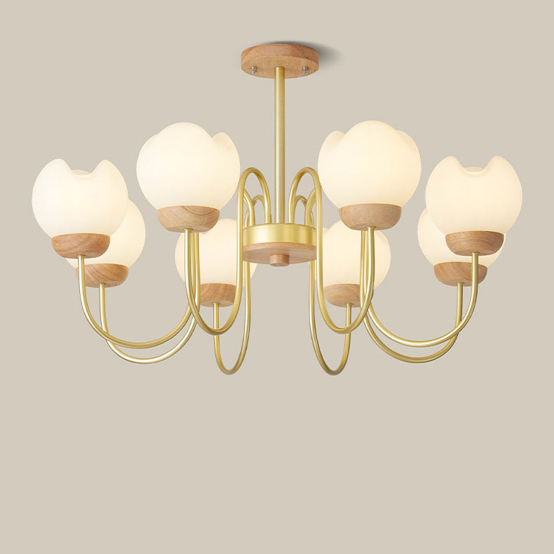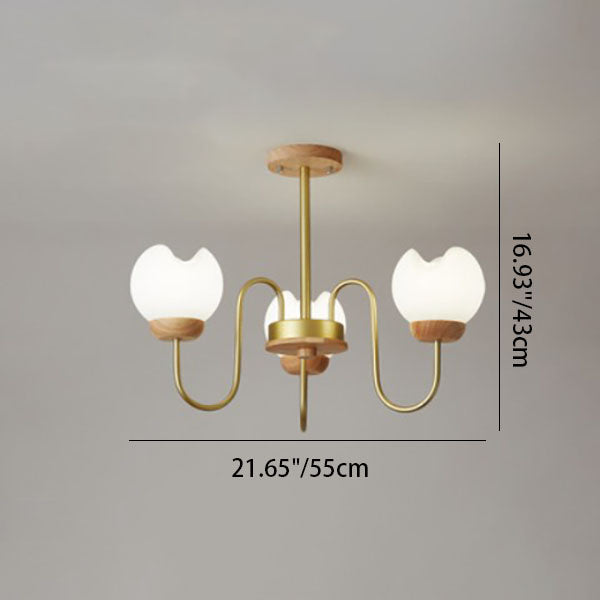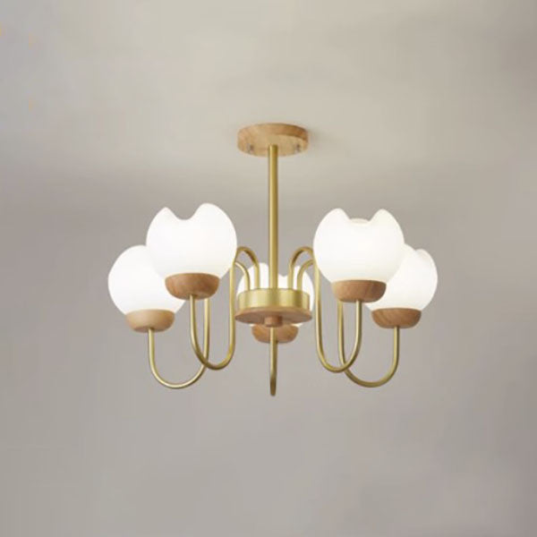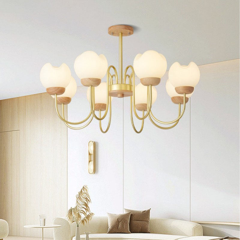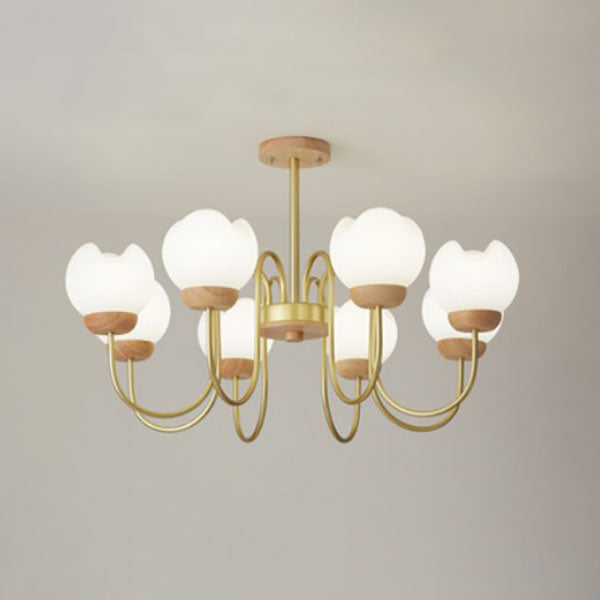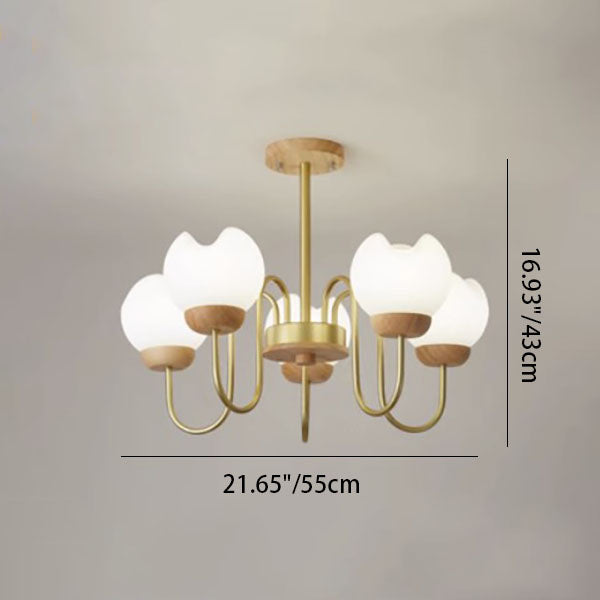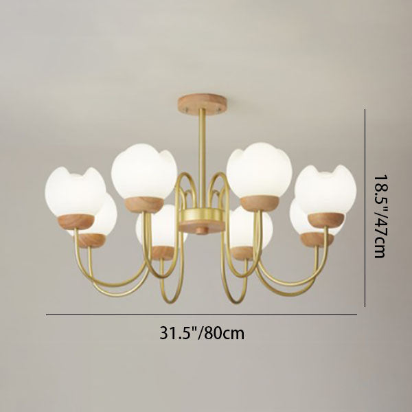 Modern Mid-Century Floral Metal Rubberwood Rotomolded 3/5/8 Light Chandelier For Living Room