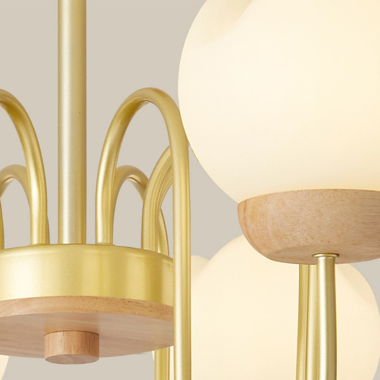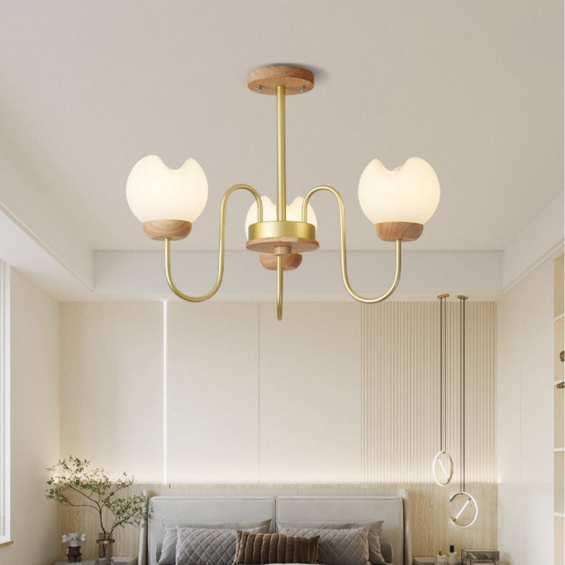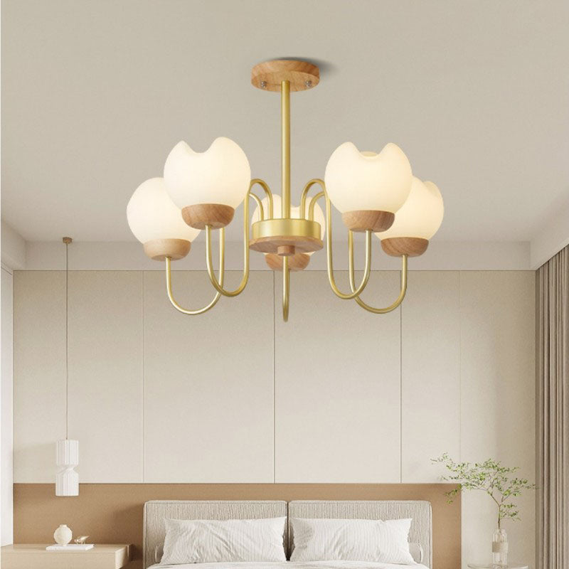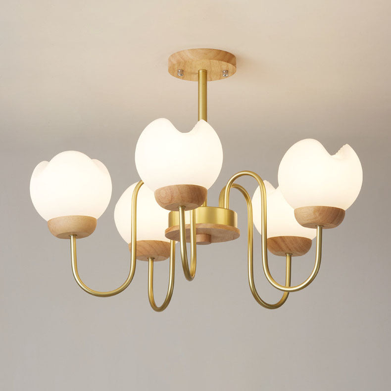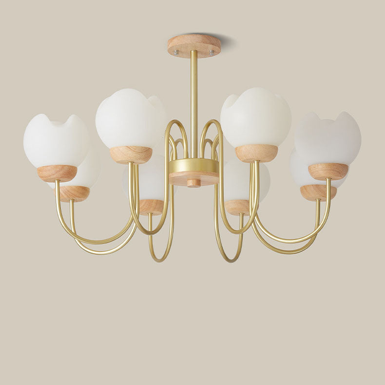 Modern Mid-Century Floral Metal Rubberwood Rotomolded 3/5/8 Light Chandelier For Living Room
