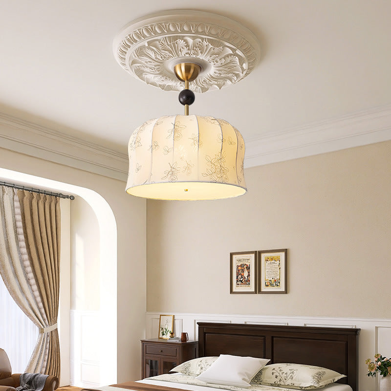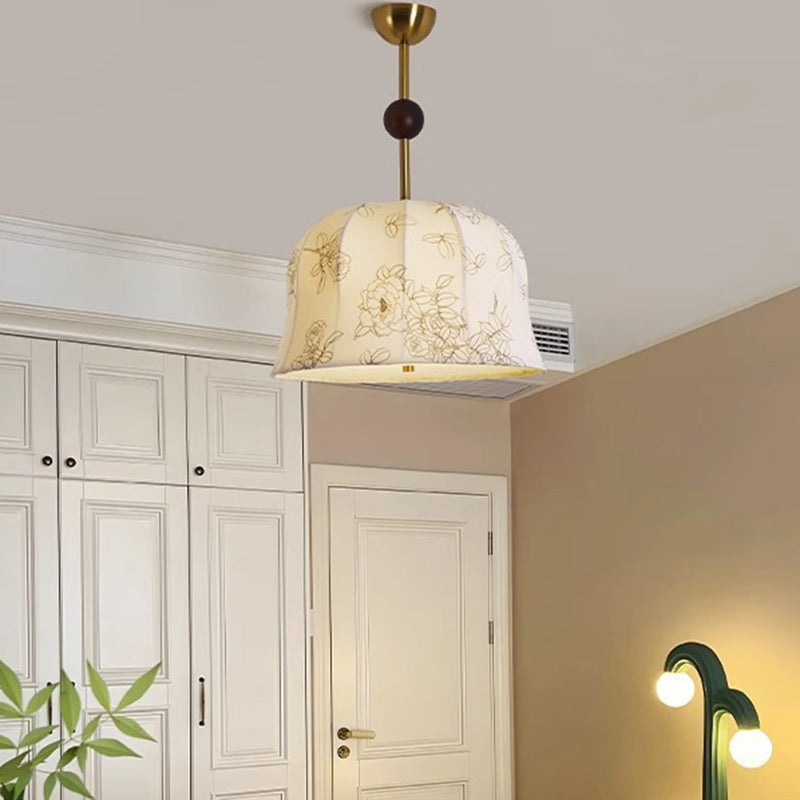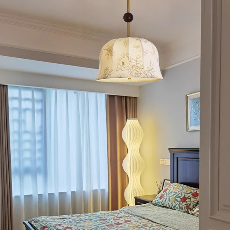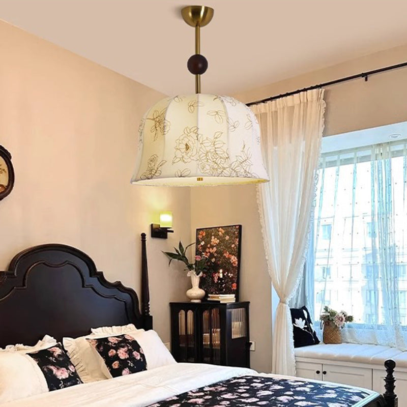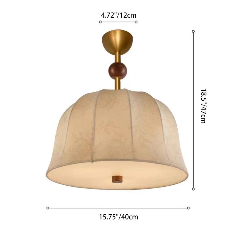 Modern Mid-Century Pumpkin-shaped Dome Iron Ash Wood Fabric 1-Light Pendant Light For Bedroom