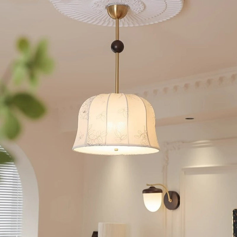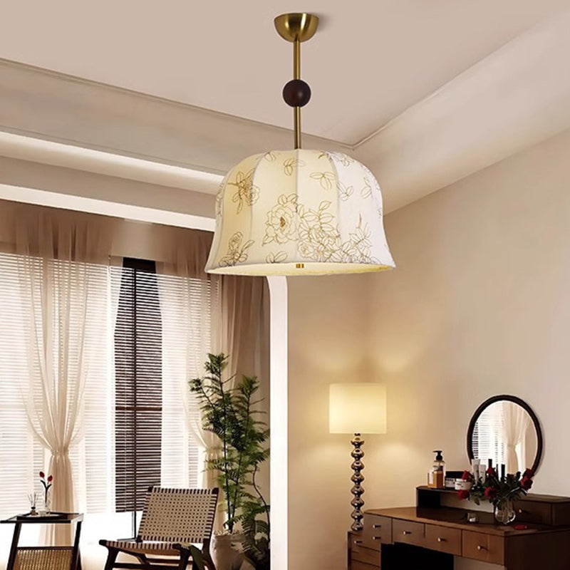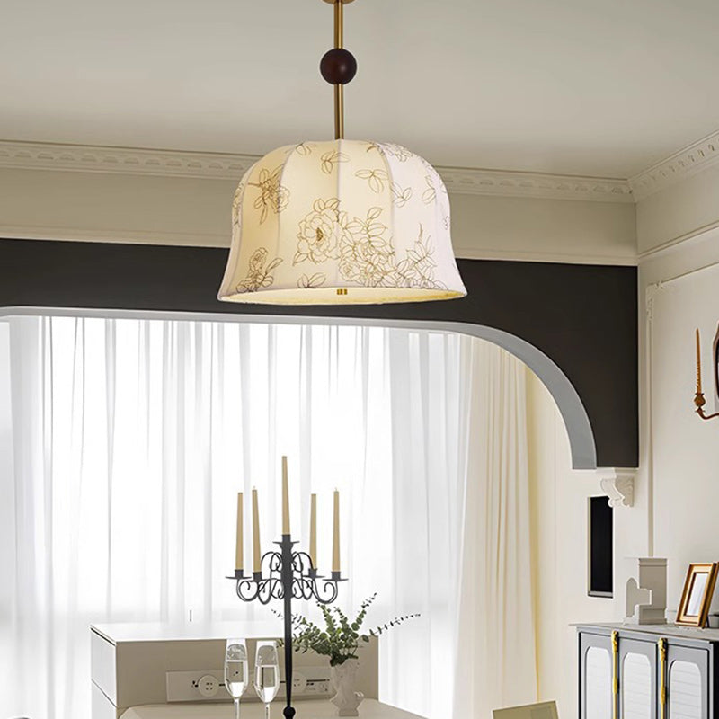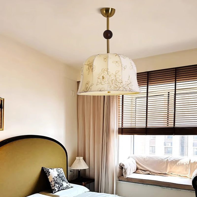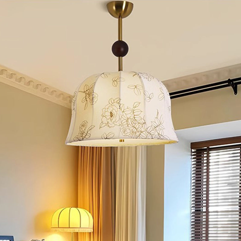 Modern Mid-Century Pumpkin-shaped Dome Iron Ash Wood Fabric 1-Light Pendant Light For Bedroom